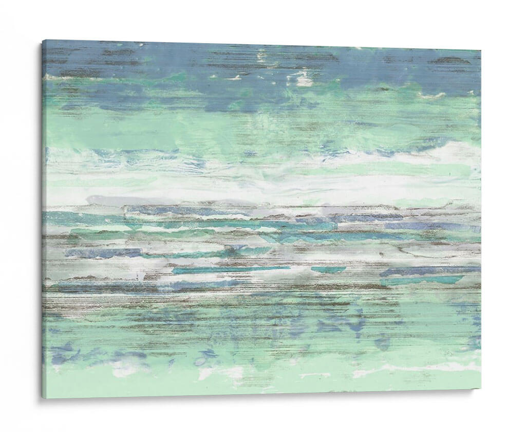 Sumérgete en la serenidad de "Seascape Striations II", una obra de arte contemporáneo que evoca la tranquilidad del mar con sus sutiles gradaciones de color y texturas lineales. Jennifer Goldberger, la artista, ha creado una pieza que, a pesar de su título, trasciende la representación literal para capturar la esencia abstracta de las olas y el horizonte. La paleta de colores, dominada por tonos fríos de azul verdoso, verde menta y toques de gris y blanco, crea una atmósfera relajante y refrescante, ideal para espacios que buscan un oasis de calma. Las pinceladas horizontales, que dan nombre a la obra, sugieren movimiento y profundidad, invitando a la contemplación. Este cuadro decorativo es perfecto para añadir un toque de sofisticación moderna a salones, dormitorios o estudios, transformando cualquier pared en un lienzo de serenidad y belleza natural. Su estilo abstracto y contemporáneo lo convierte en un complemento versátil para diversas decoraciones, desde la minimalista hasta la bohemia chic, aportando una sensación de frescura y conexión con la naturaleza.