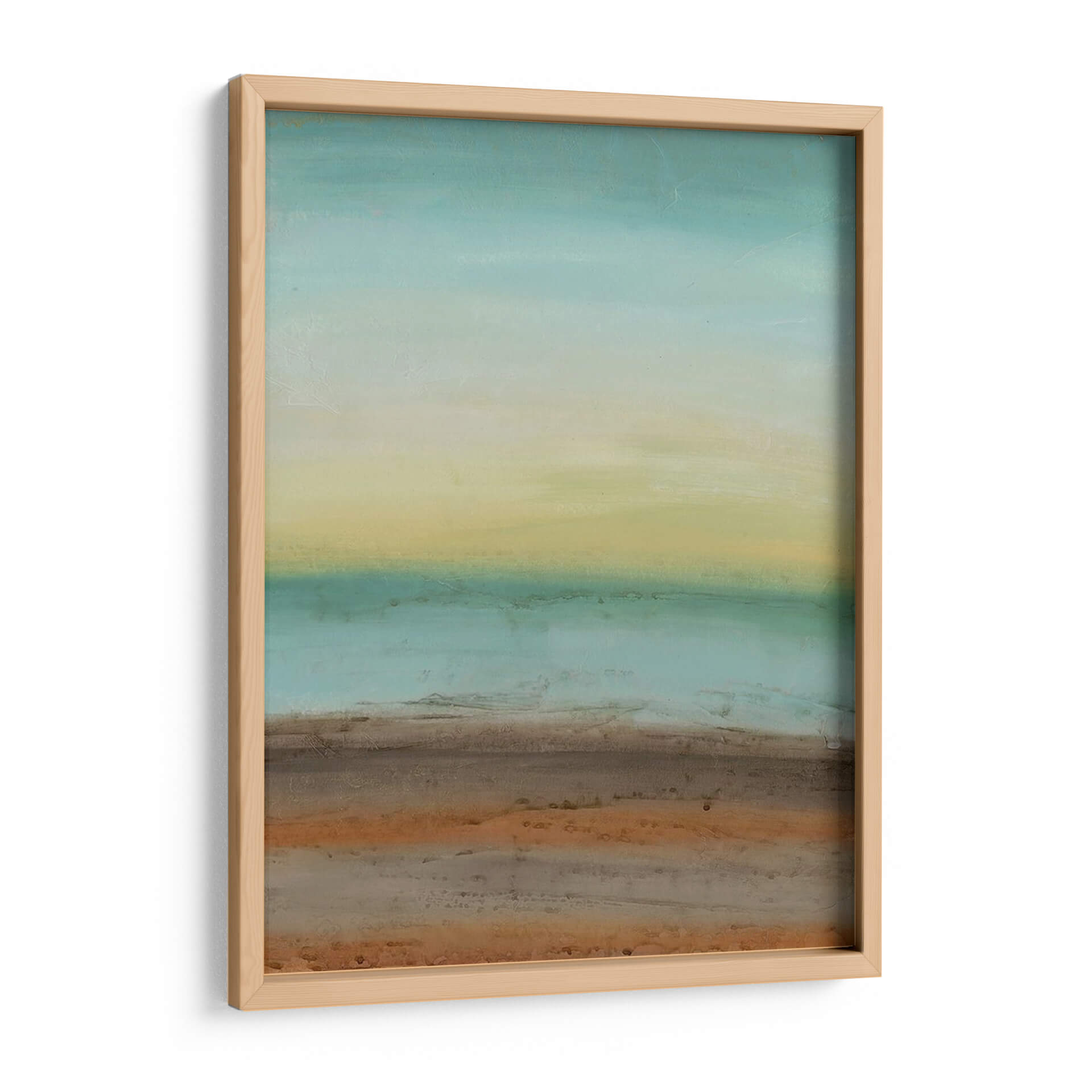 Sumérgete en la tranquilidad costera con "Seaside Serenity II" de June Erica Vess, una obra de arte abstracto que captura la esencia de la serenidad del mar. Esta pieza evoca la calma de un atardecer en la playa con sus delicadas capas de color. Los tonos celestes y amarillos pálidos se funden suavemente, simulando el cielo al anochecer, mientras que una banda de azul verdoso profundo representa las aguas serenas del océano. La parte inferior de la obra se adorna con texturas terrosas en tonos marrones y ocres, evocando la arena y las rocas bañadas por el mar. La composición, con sus horizontes suaves y la ausencia de formas definidas, invita a la contemplación y la relajación. "Seaside Serenity II" es ideal para añadir un toque de paz y sofisticación a cualquier espacio, ya sea un dormitorio, un estudio o una sala de estar. Este cuadro decorativo abstracto es perfecto para quienes buscan una conexión con la naturaleza y un refugio visual de la vida cotidiana. Su estilo contemporáneo y su paleta de colores armoniosa lo convierten en una adición versátil y elegante a tu decoración.