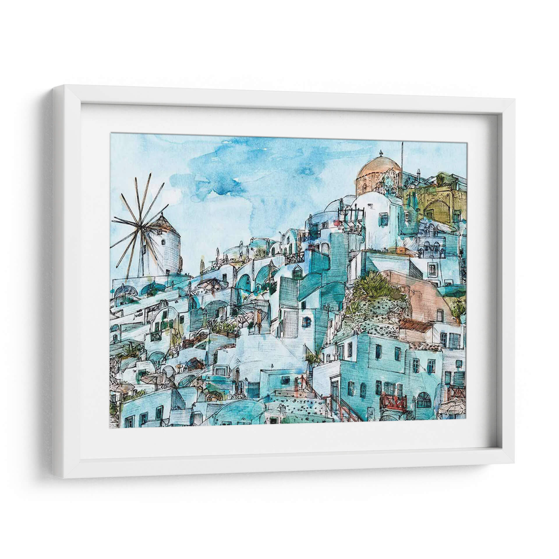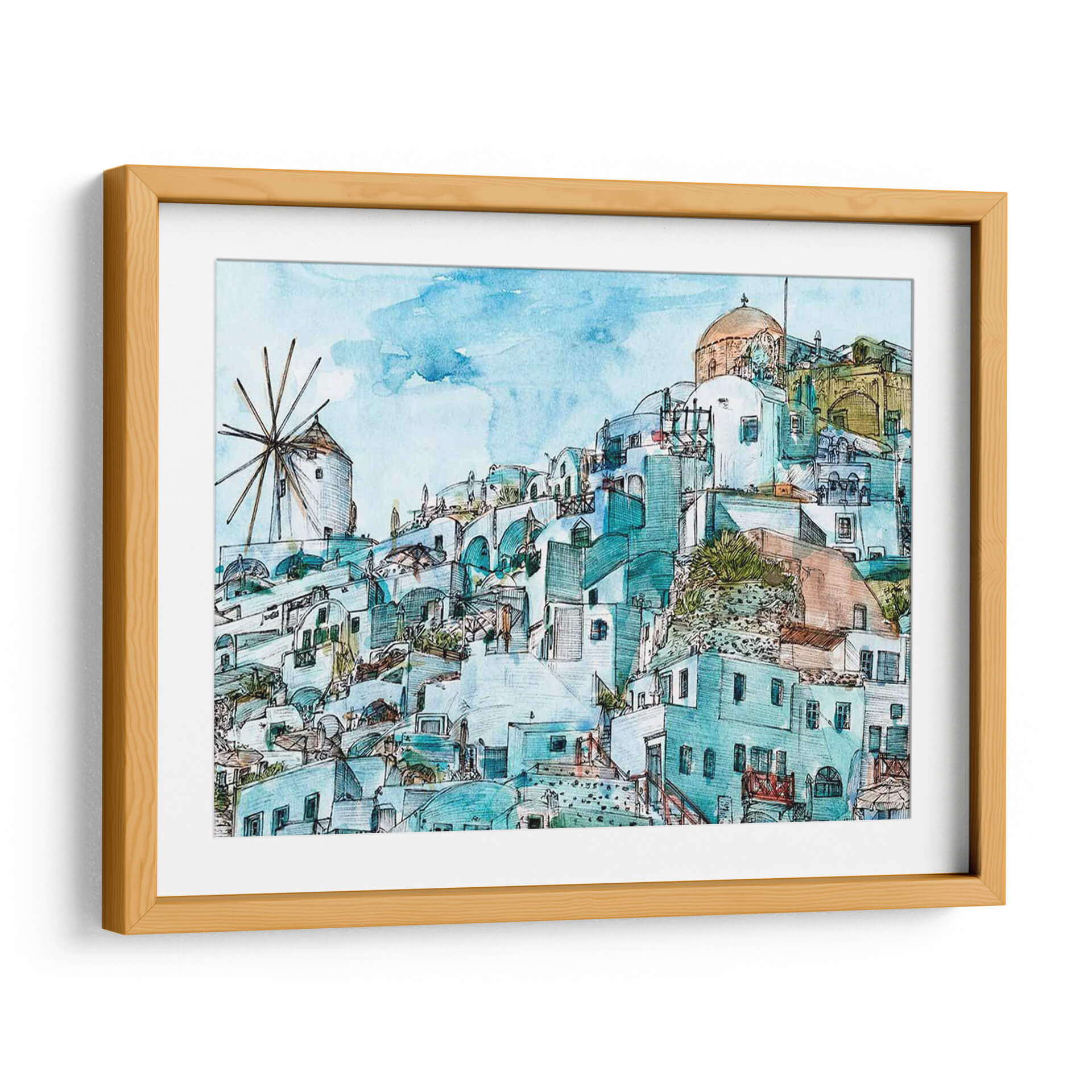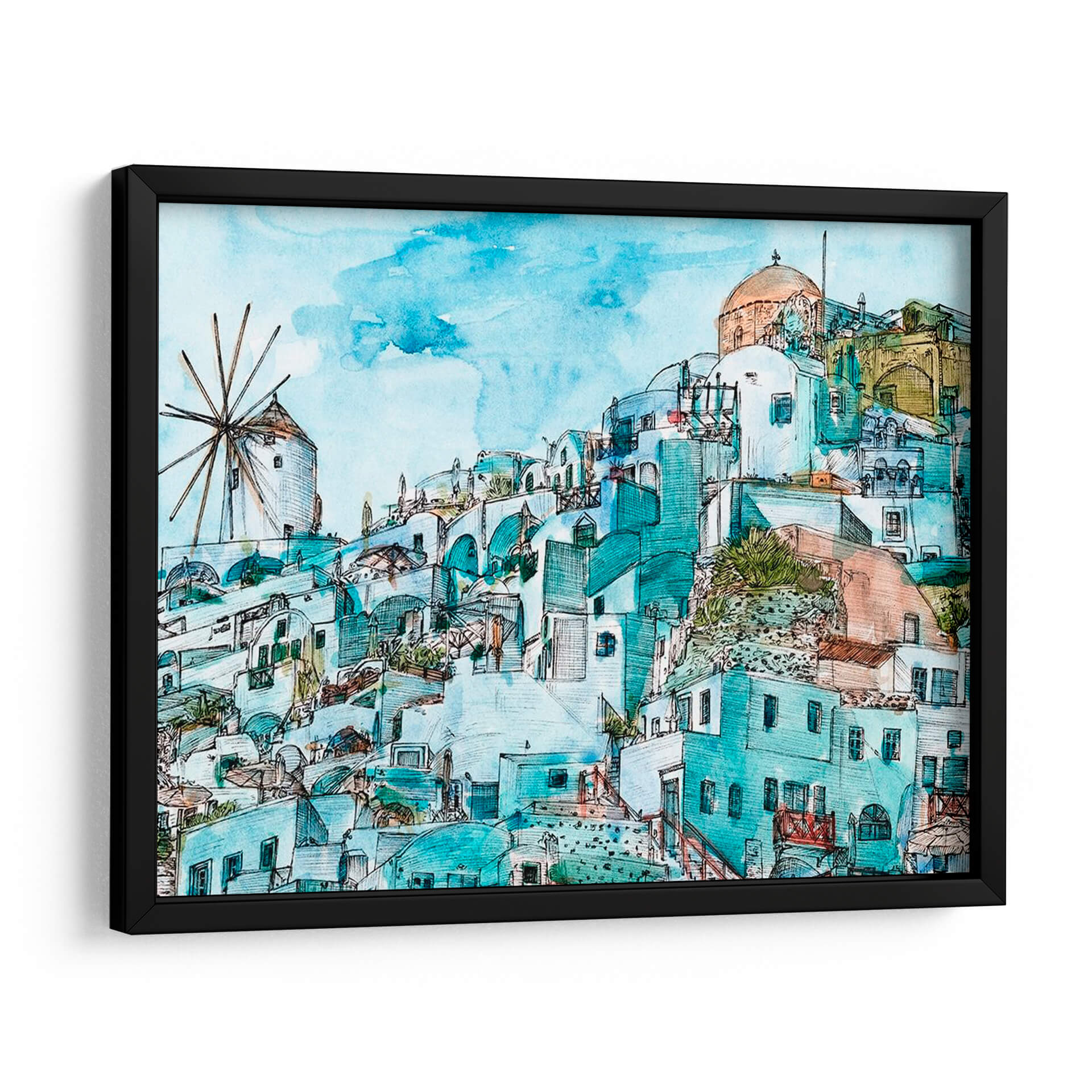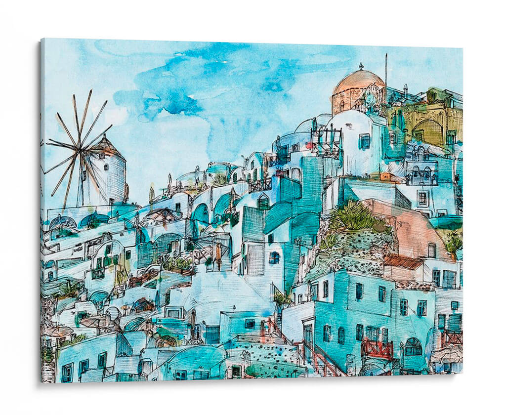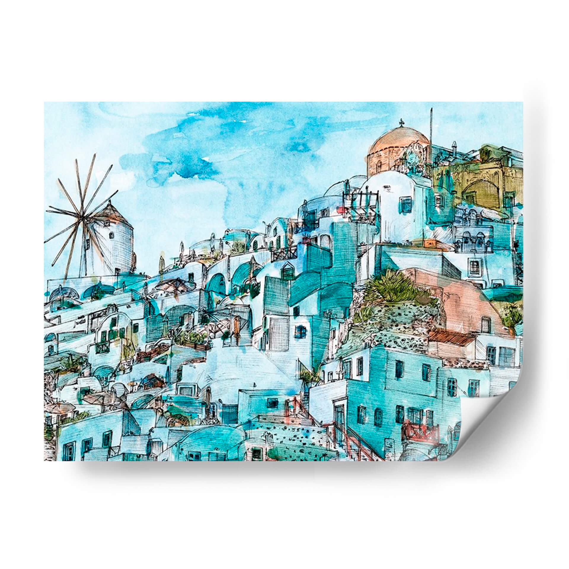 Sumérgete en la serena belleza de "Secreto Grecia II", una obra de arte cautivadora de Melissa Wang que evoca la esencia de las islas griegas. Este cuadro decorativo, con su distintiva paleta de azules vibrantes y blancos nítidos, captura la arquitectura icónica de un pueblo costero mediterráneo, coronado por un molino de viento tradicional y cúpulas distintivas. La técnica de acuarela, combinada con trazos de boceto a lápiz, añade una textura y profundidad únicas, creando una atmósfera de tranquilidad y encanto histórico. La composición intrincada de casas encaladas que se aferran a la ladera, junto con los detalles de balcones y ventanas, invita a la contemplación y al anhelo de un viaje. "Secreto Grecia II" es la pieza perfecta para infundir calma y un toque de sofisticación vacacional en cualquier hogar u oficina. Imagina esta obra como un punto focal en tu sala de estar, un recordatorio diario de la belleza atemporal del Egeo, o como un elemento sereno en tu dormitorio. Su estilo descriptivo pero artístico la hace versátil para una variedad de decoraciones interiores, desde la bohemia hasta la moderna costera. Transforma tu espacio con la magia de Grecia.