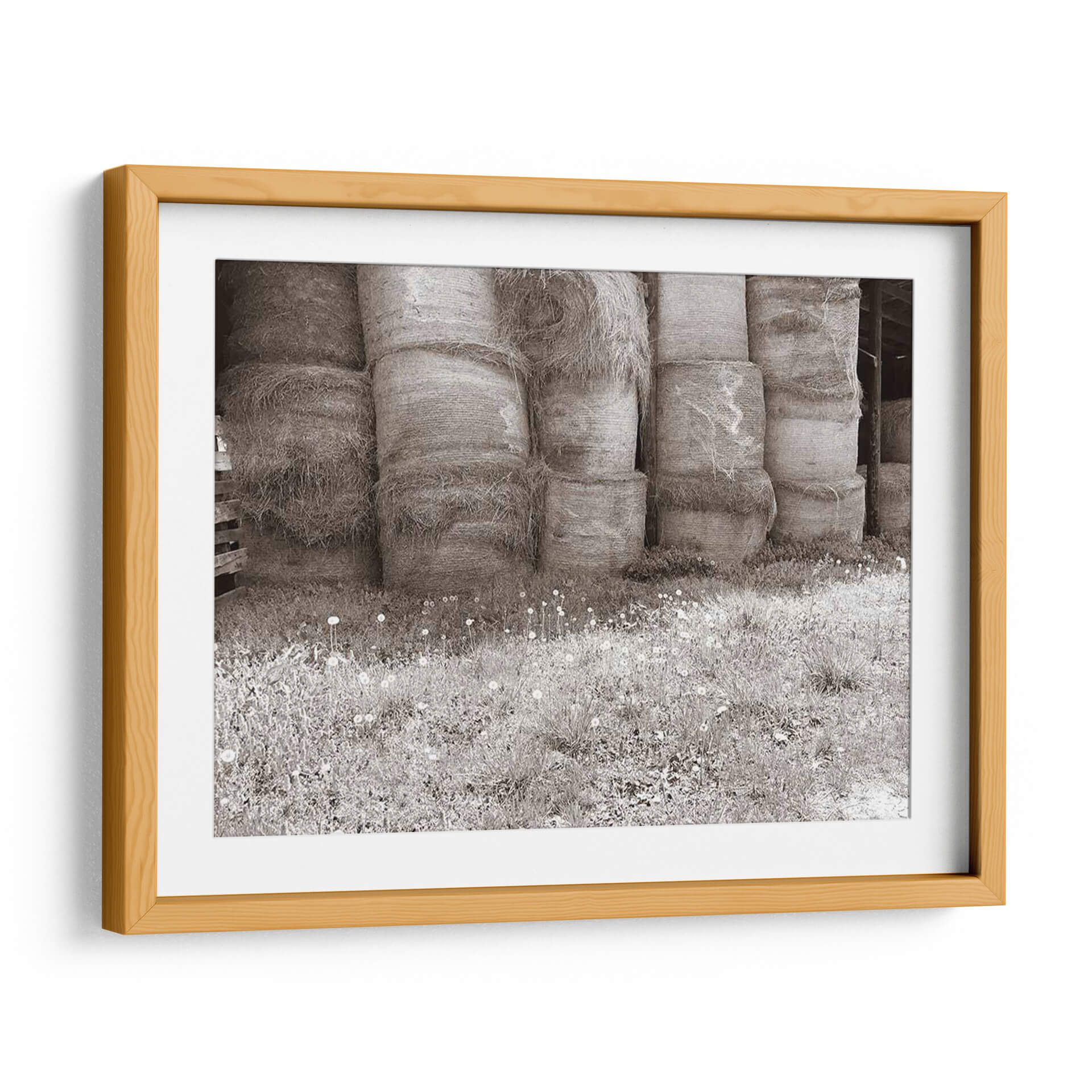 Captura la esencia de la vida rural con este evocador cuadro decorativo de "Sepia Granja Estudio V", una obra maestra de Alicia Ludwig. La pieza presenta una imponente pila de alpacas de heno, apiladas en un estilo rústico y orgánico, que transmiten una sensación de abundancia y trabajo arduo. La paleta de colores sepia, con sus ricos tonos tierra y marrones, crea una atmósfera nostálgica y serena, transportando al espectador a un momento de tranquilidad campestre. La textura detallada del heno y la delicada hierba salpicada de pequeñas flores blancas en primer plano añaden profundidad y realismo a la composición. Este cuadro decorativo es ideal para espacios que buscan un toque de calidez y autenticidad, como una sala de estar rústica, un comedor acogedor o incluso un estudio que aspire a la calma. Su estilo fotográfico y realista, con una composición sólida y equilibrada, lo convierte en una adición atemporal a cualquier hogar que aprecie la belleza de lo simple y lo natural. Añade un toque de encanto rústico y serenidad a tu decoración con esta pieza única.