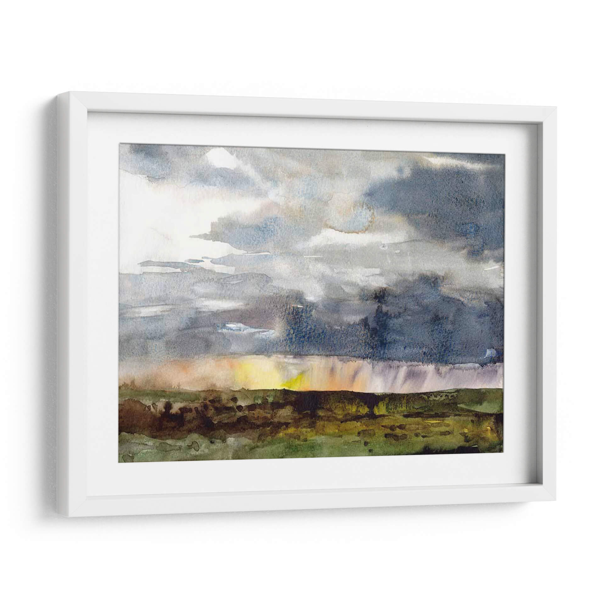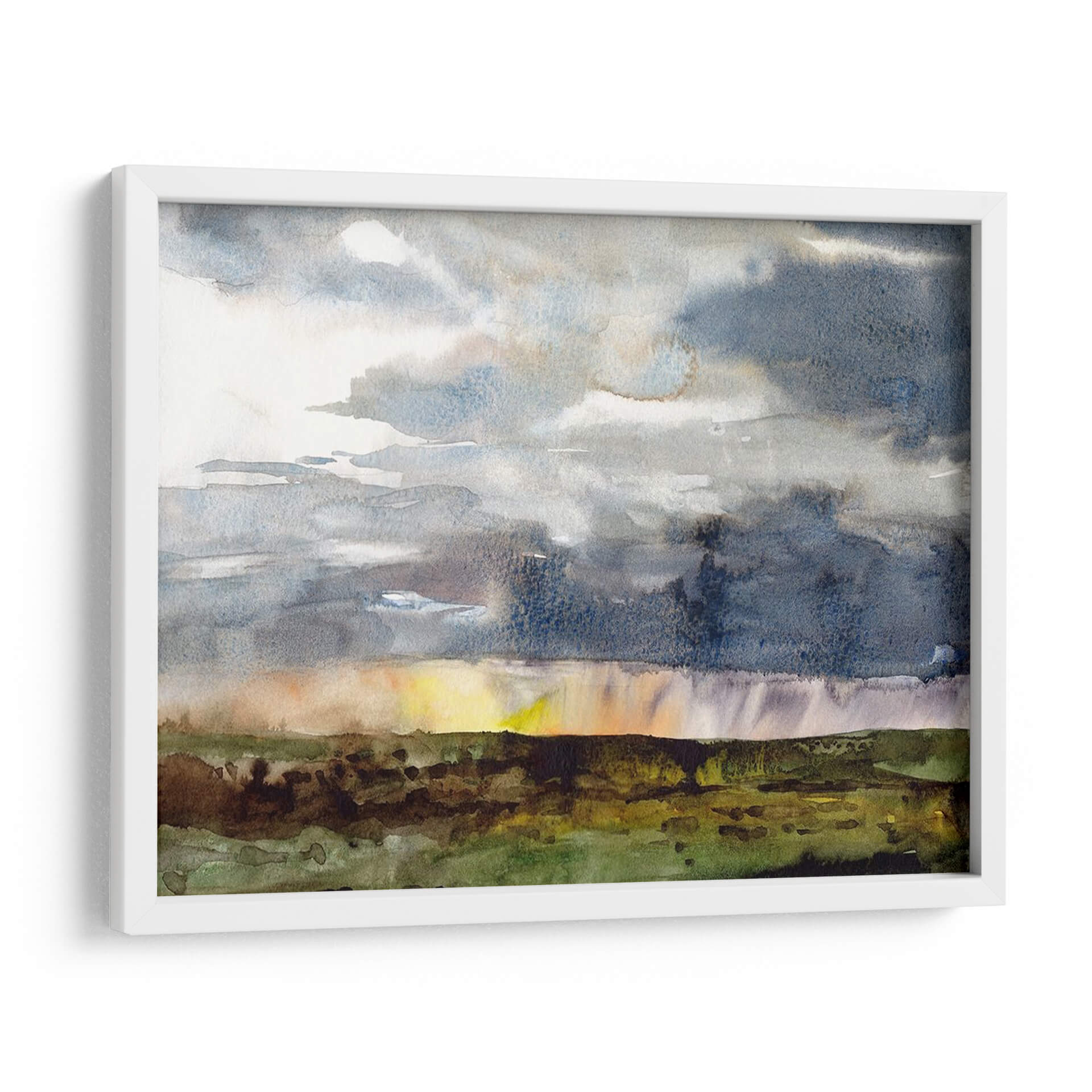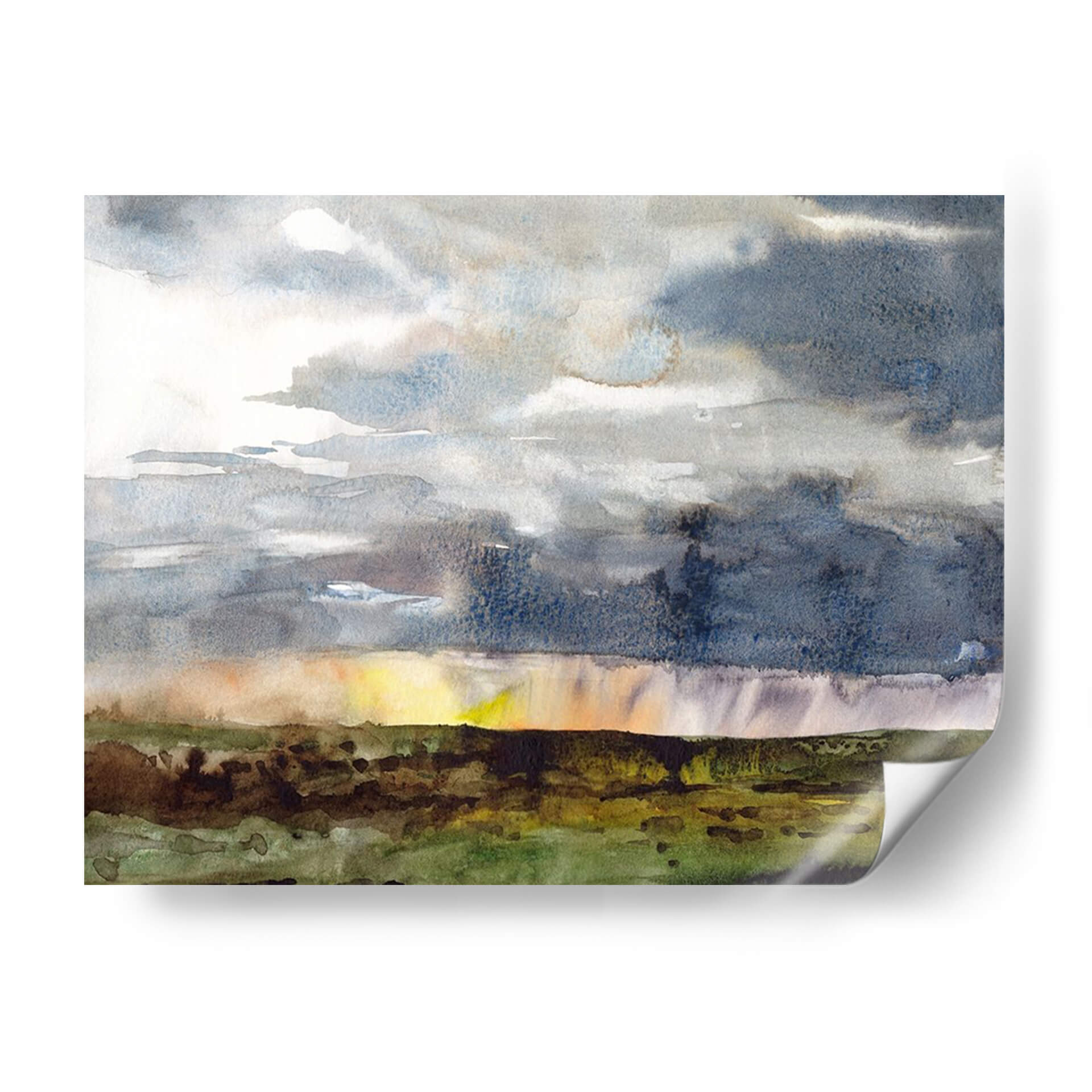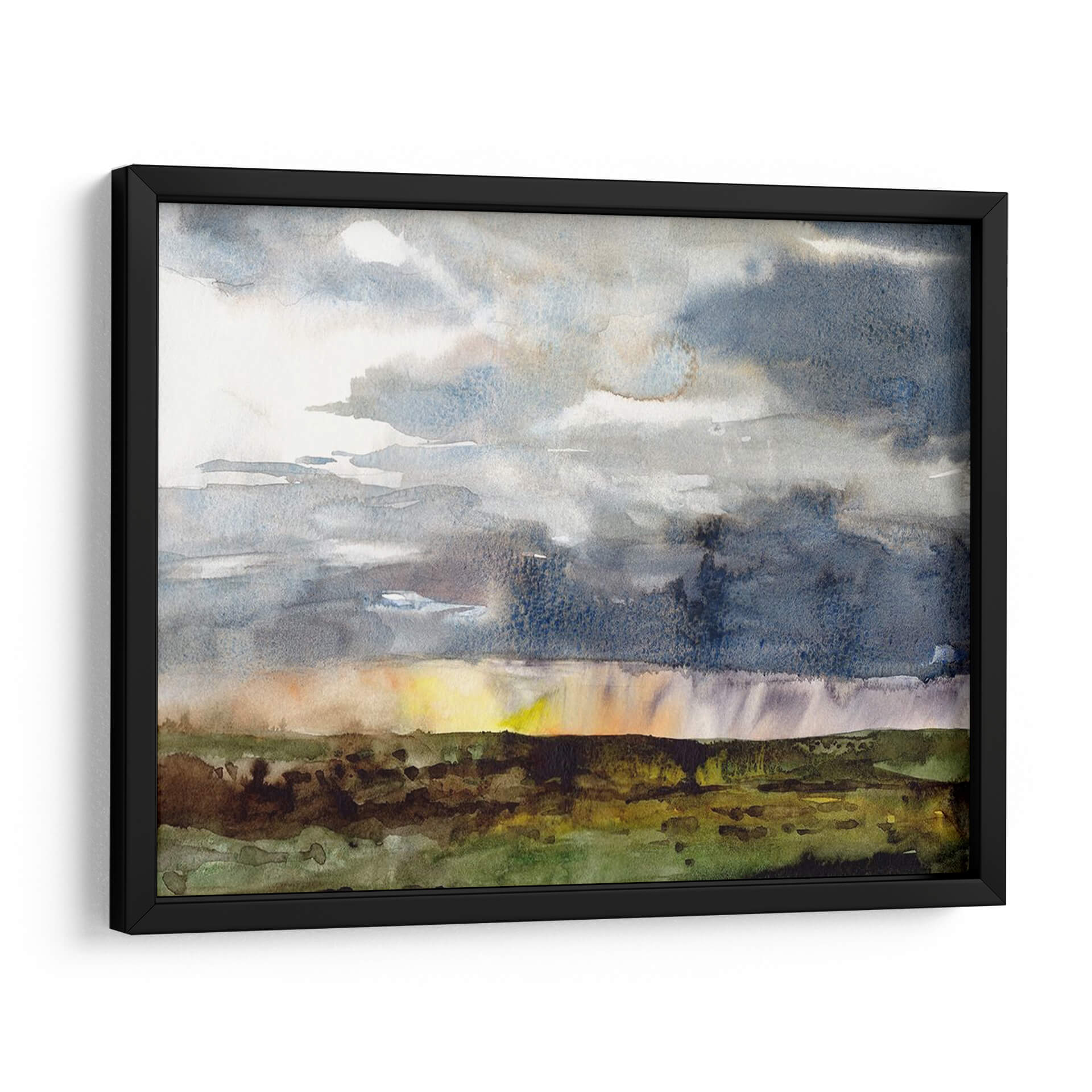 Sumérgete en la atmósfera evocadora de "Septiembre Sky Studies Iv" de Scherrer Finch, una obra maestra que captura la belleza efímera de un cielo tormentoso al amanecer o atardecer. Este cuadro decorativo presenta una paleta de colores rica y cambiante, dominada por profundos azules y grises que contrastan con destellos de amarillo y naranja, creando una sensación de drama y esperanza. La técnica de acuarela aporta una fluidez y ligereza únicas a las nubes y al paisaje terroso que se extiende en la base. Cada pincelada evoca la textura y la profundidad, transportándote a un momento de contemplación serena. Ideal para añadir un toque de naturaleza y emoción a tu sala de estar, dormitorio o estudio, este arte de pared abstracto invita a la reflexión y la admiración. Su composición, que divide el espacio entre el cielo imponente y la tierra firme, crea un equilibrio visual cautivador. Transforma tu hogar en una galería personal con esta pieza inspiradora que captura la esencia de un momento fugaz pero poderoso en el cielo.