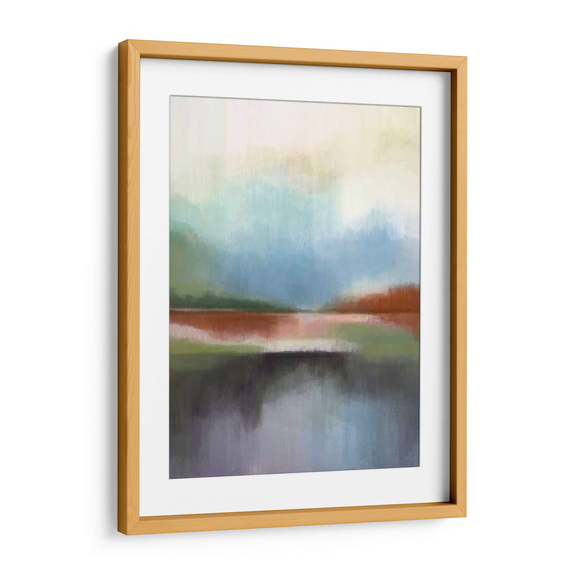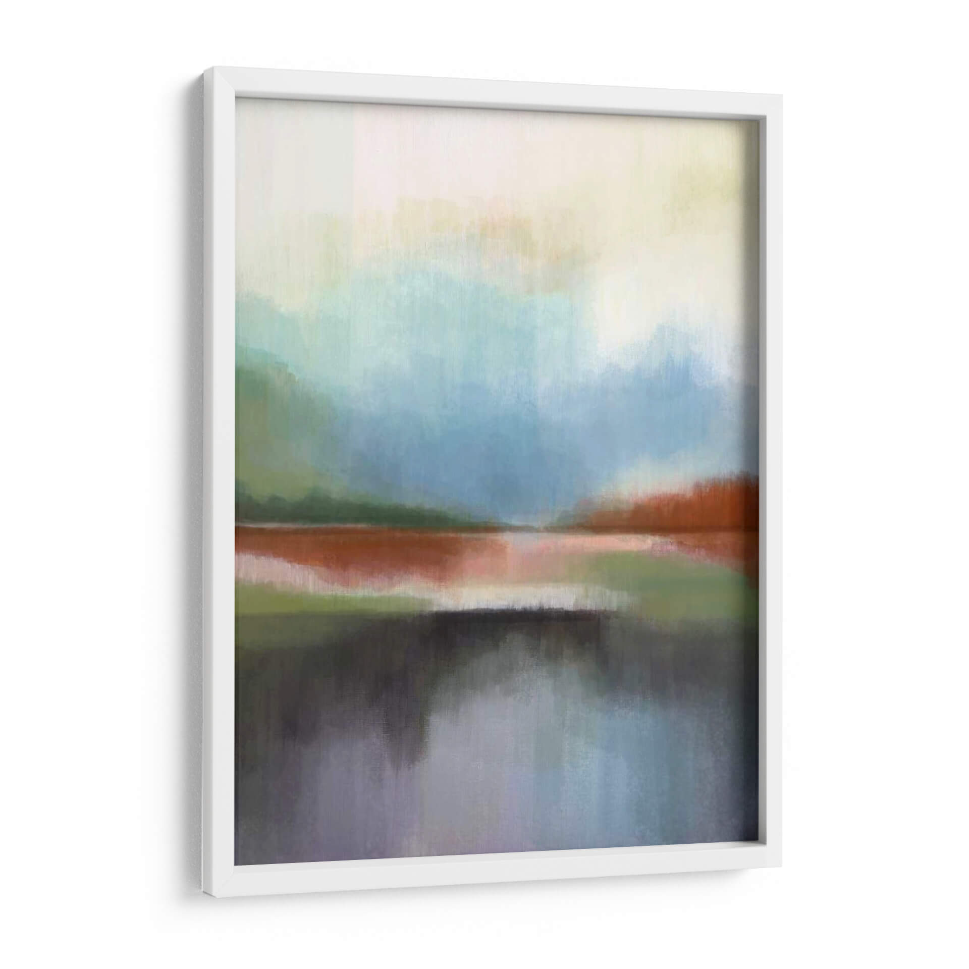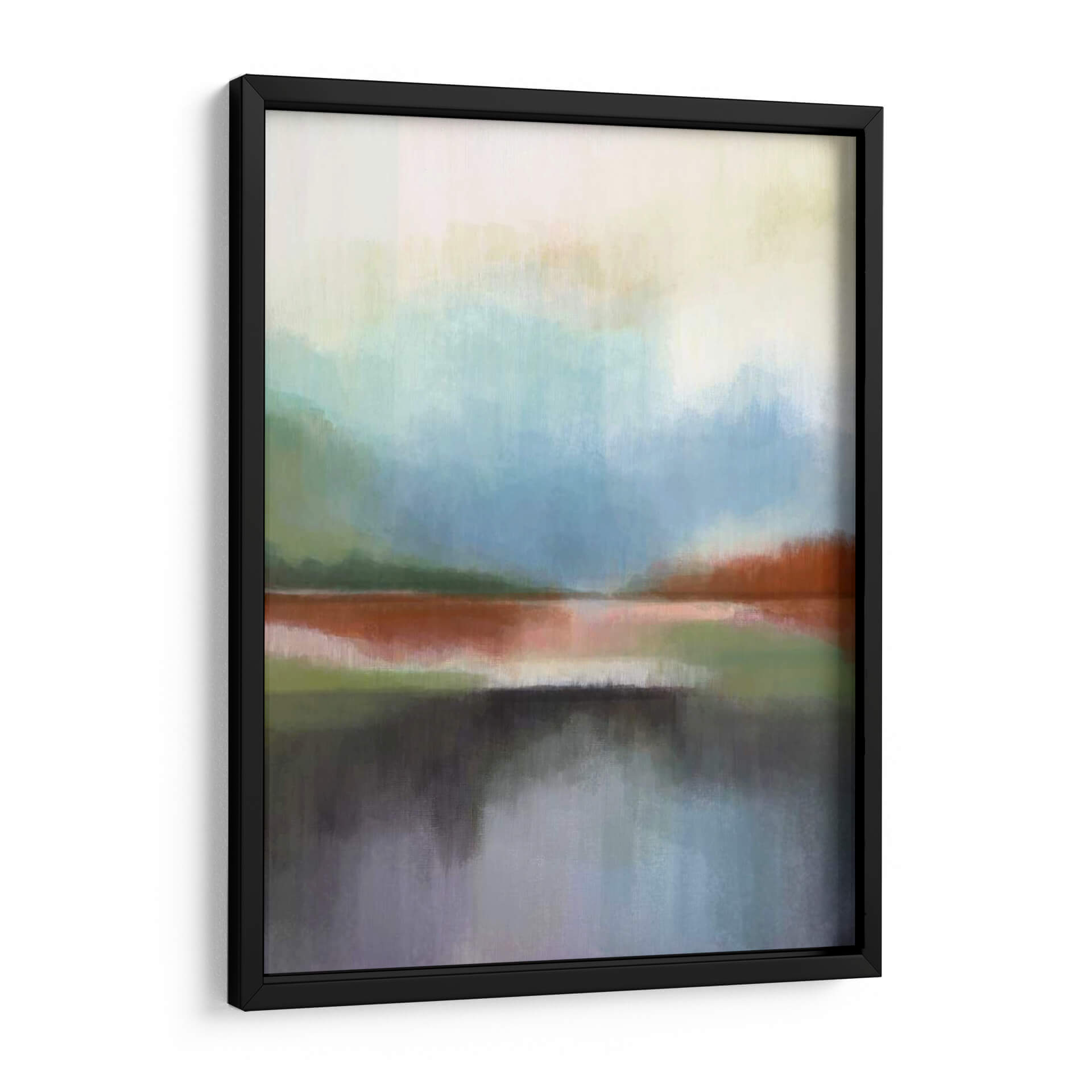 Sumérgete en la serena belleza de "Spring Lake II", una obra de arte abstracta de Alison Jerry que evoca la tranquilidad de un paisaje acuático al amanecer o al atardecer. Las pinceladas sueltas y etéreas crean capas de color que sugieren la neblina sobre el agua y la vegetación circundante. La paleta de colores, dominada por suaves tonos azules, verdes, naranjas quemados y grises profundos, transmite una atmósfera de calma y contemplación. Los reflejos en el agua, representados con un realismo impresionista, añaden profundidad y un toque de misterio a la composición. Este cuadro decorativo abstracto es ideal para infundir serenidad en tu dormitorio, aportar un toque de naturaleza a tu oficina o convertirse en el punto focal de un salón moderno. Su estilo versátil se adapta a una variedad de decoraciones, desde la contemporánea hasta la escandinava, invitando a la reflexión y la paz interior. "Spring Lake II" no es solo una pieza decorativa, sino una invitación a encontrar la calma en tu propio espacio vital.