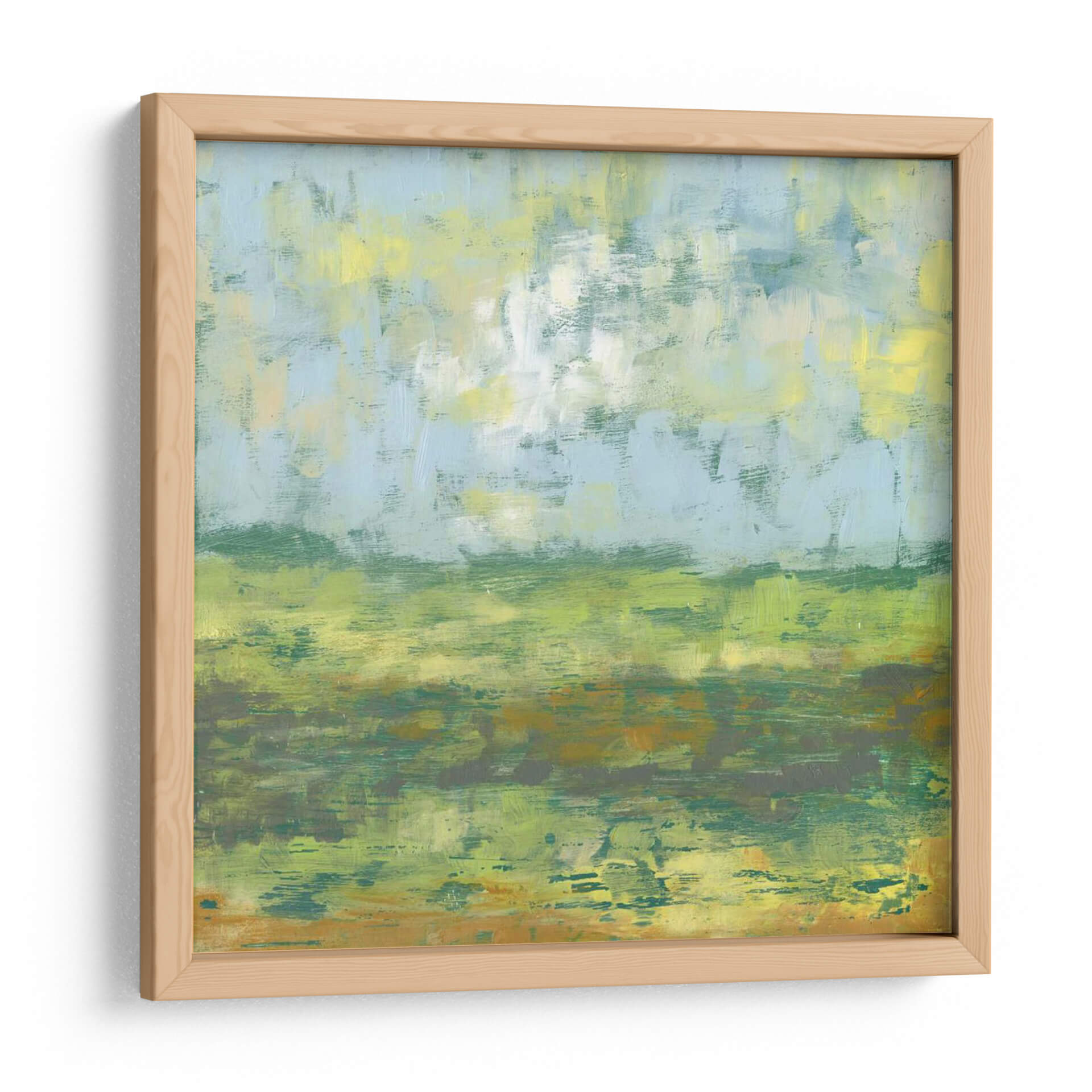 Embellece tu hogar con "Sunfield II", una cautivadora obra de arte abstracto de Jennifer Goldberger. Este cuadro decorativo evoca la serenidad de un paisaje campestre bañado por la luz del sol, interpretado a través de pinceladas expresivas y una paleta de colores vibrantes pero armoniosos. Predominan los tonos verdes, azules celestes y amarillos dorados, que se entrelazan para crear una atmósfera de paz y vitalidad. La composición, dividida en capas horizontales, sugiere la profundidad de un campo abierto bajo un cielo luminoso, con texturas ricas que invitan a la contemplación. "Sunfield II" es perfecto para añadir un toque de naturaleza y arte contemporáneo a tu sala de estar, dormitorio u oficina. Su estilo abstracto lo hace versátil, complementando tanto decoraciones modernas como rústicas, y aportando un punto focal que estimula la conversación y la relajación. Descubre la belleza del arte abstracto y transforma tus espacios con esta pieza única que captura la esencia de un día soleado en el campo.