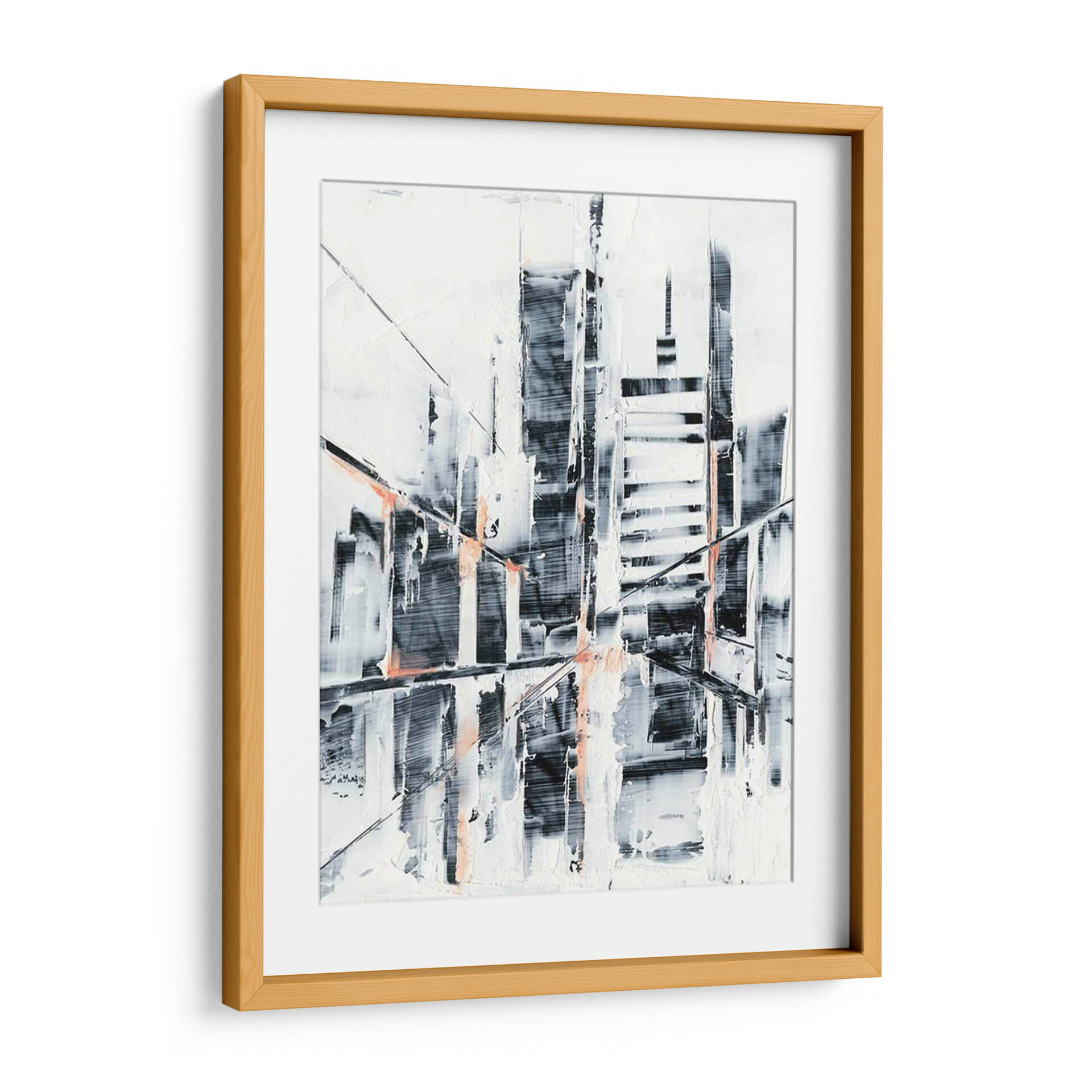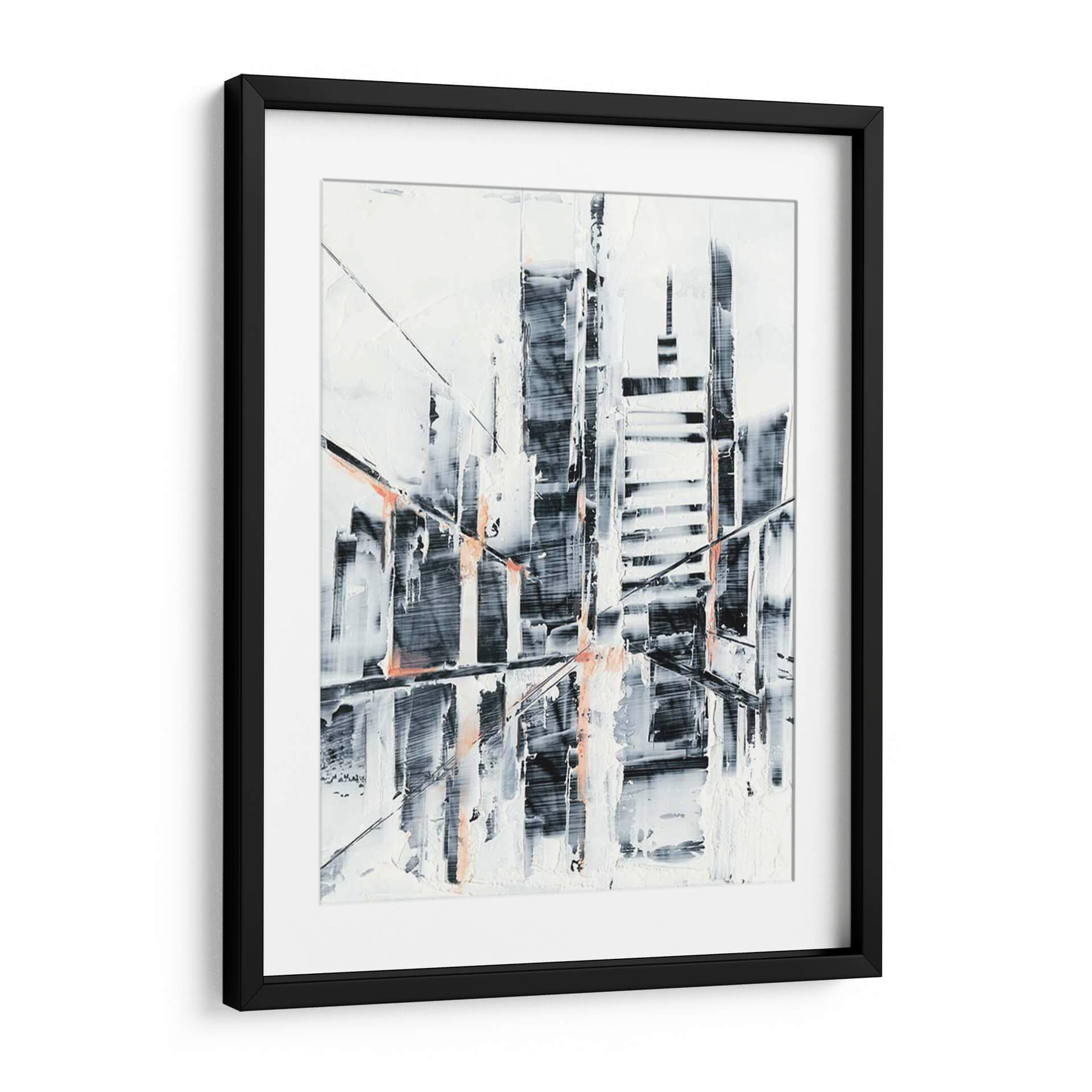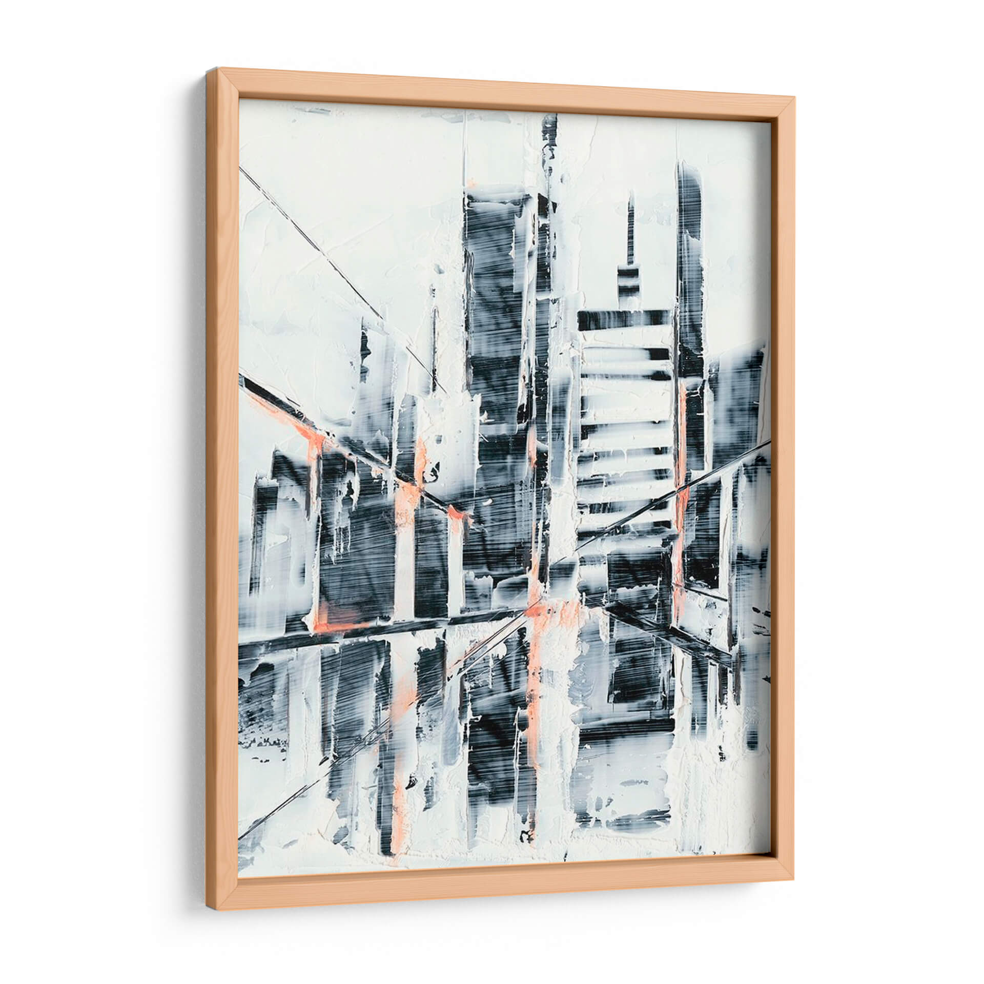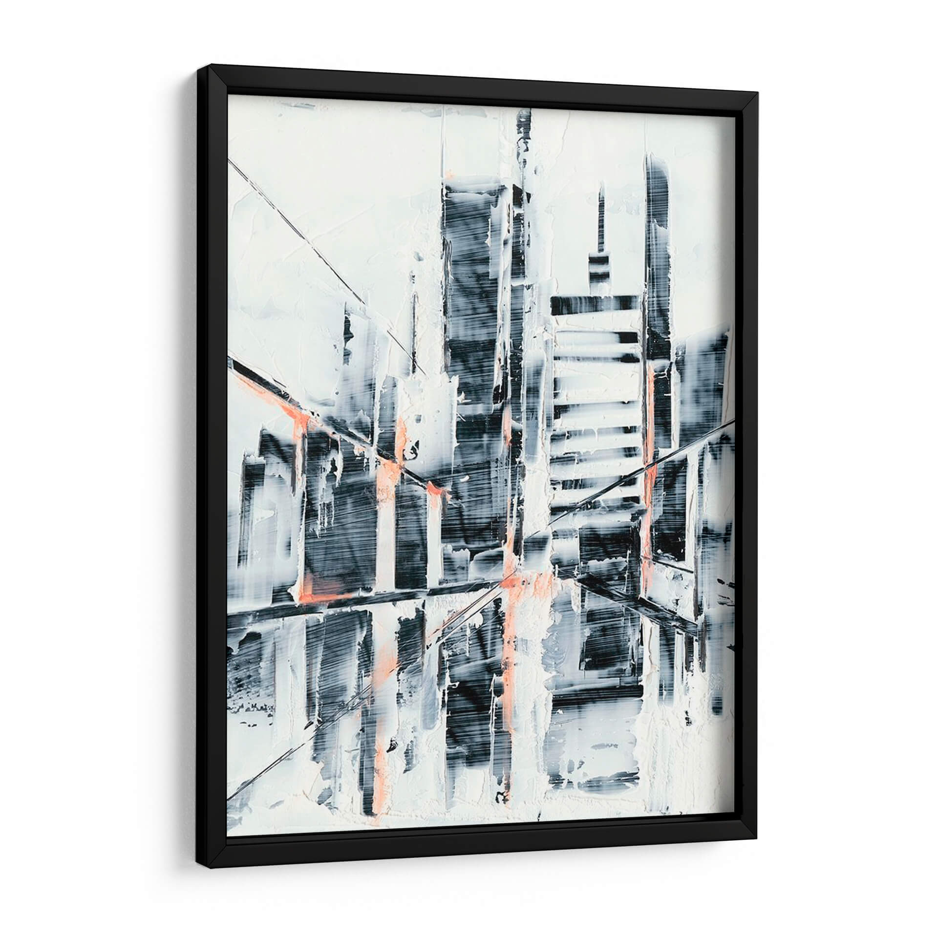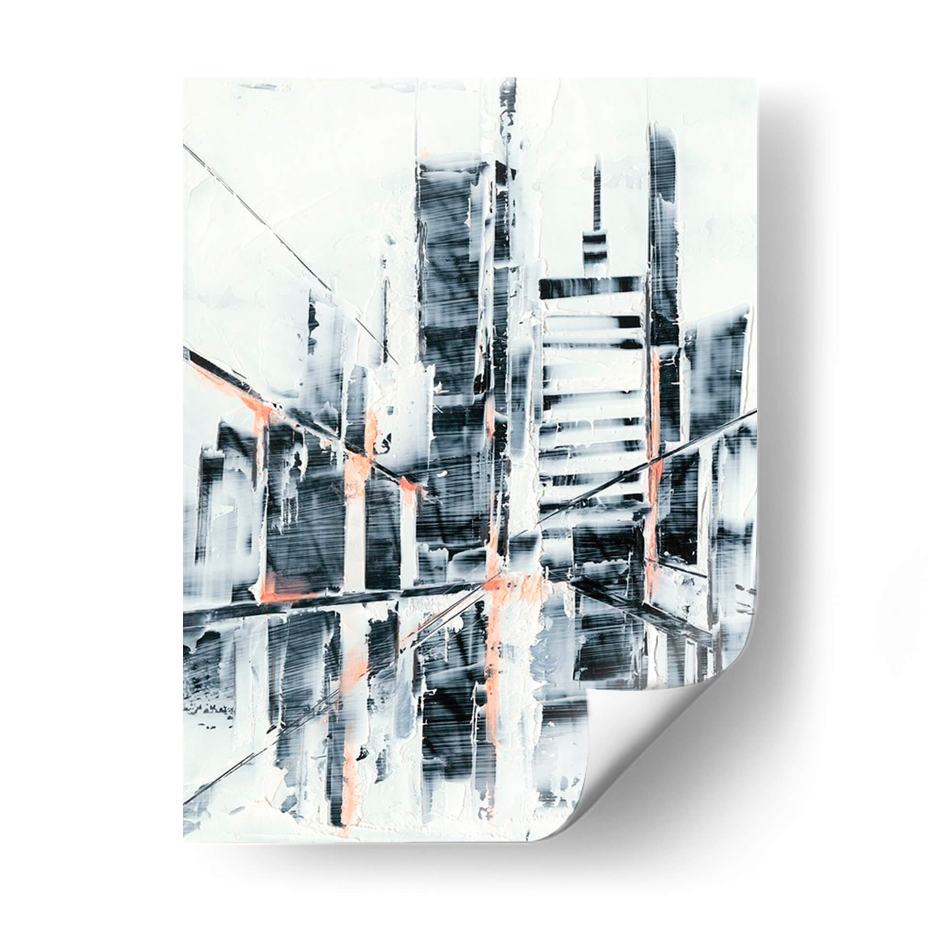 Captura la esencia de la modernidad urbana con 'Sunset Refraction I', una obra de arte abstracta que evoca la silueta de una ciudad al atardecer. Las pinceladas enérgicas y texturizadas crean un juego dinámico de luces y sombras, donde las formas arquitectónicas se disuelven en una cautivadora abstracción. La paleta de colores, dominada por blancos nítidos, grises profundos y toques vibrantes de coral, genera un contraste visual impactante que aporta profundidad y sofisticación. Esta pieza es ideal para espacios que buscan un aire contemporáneo y audaz, como salas de estar modernas, oficinas de diseño o vestíbulos. Su composición abstracta permite una interpretación personal, invitando a la contemplación y añadiendo un punto focal intrigante a cualquier decoración. 'Sunset Refraction I' no es solo una imagen, es una declaración de estilo, perfecta para quienes aprecian el arte que desafía las convenciones y celebra la belleza de lo abstracto en el entorno urbano.