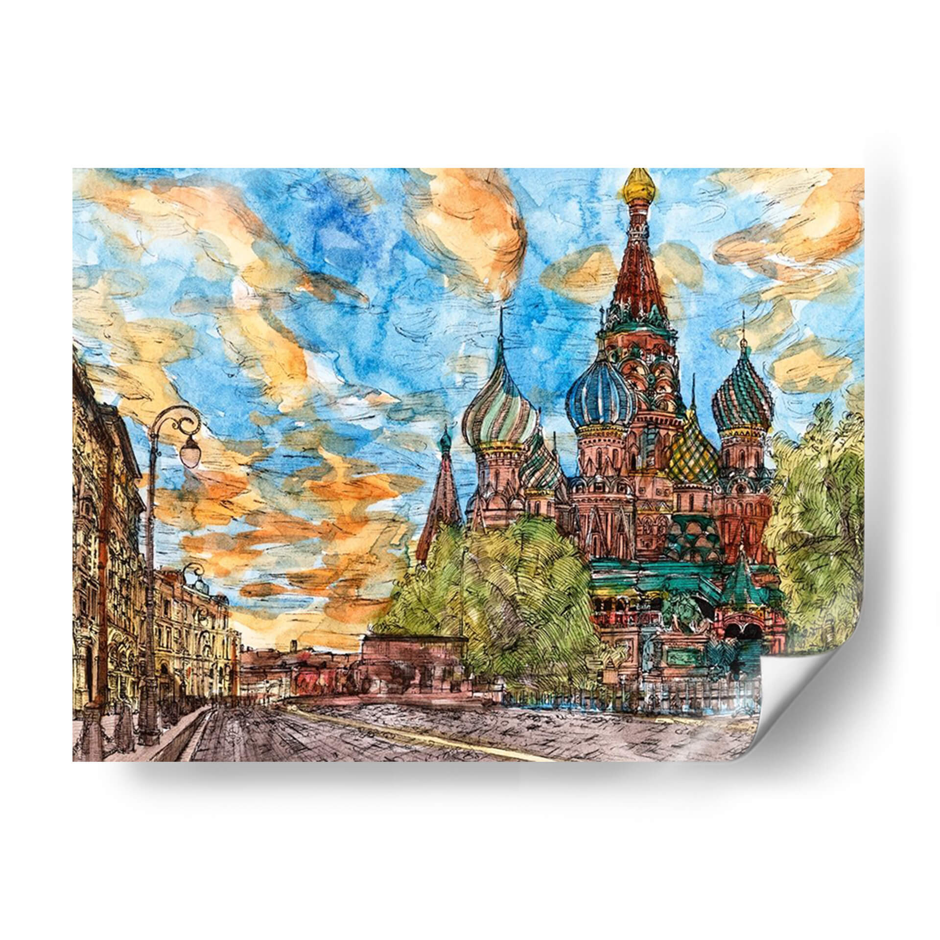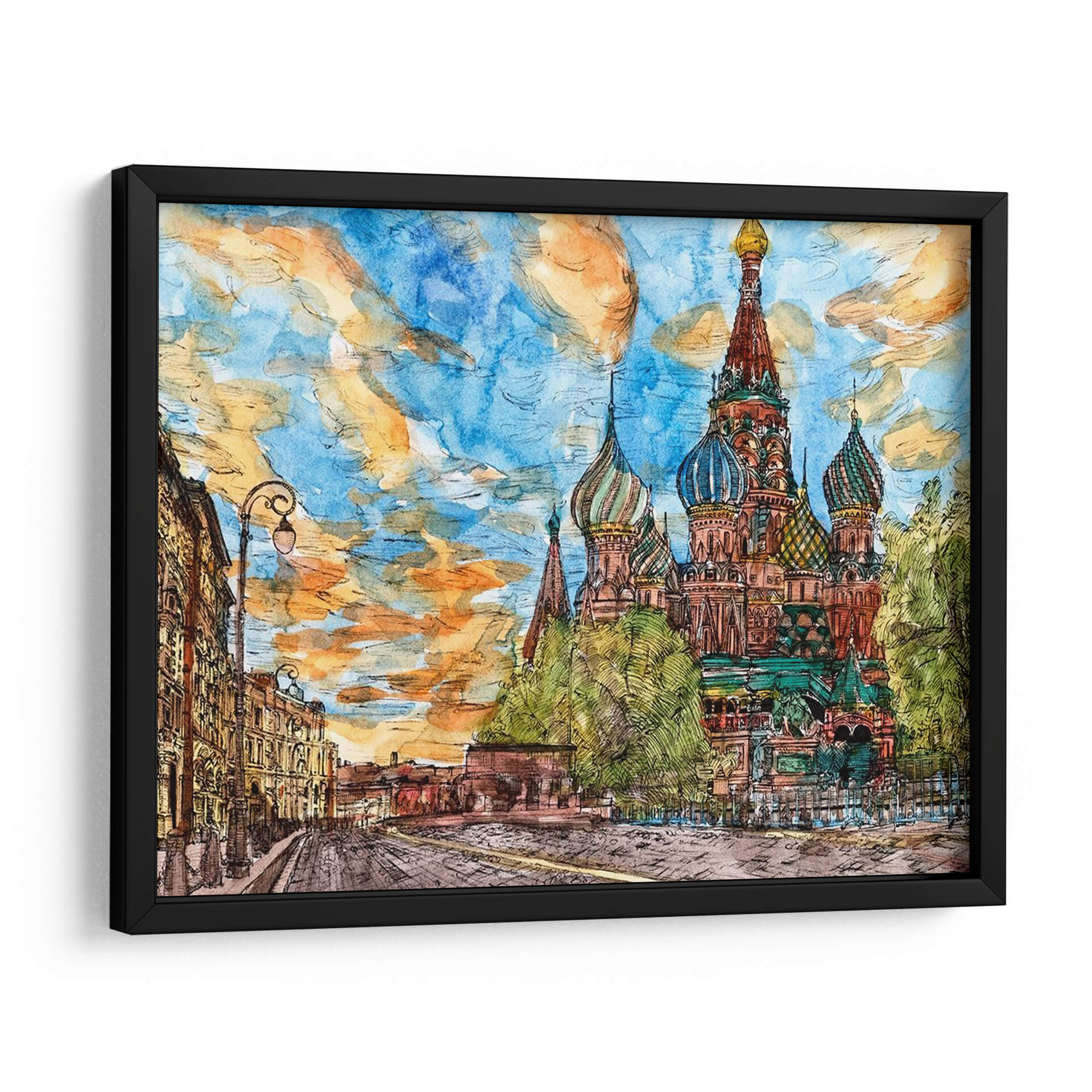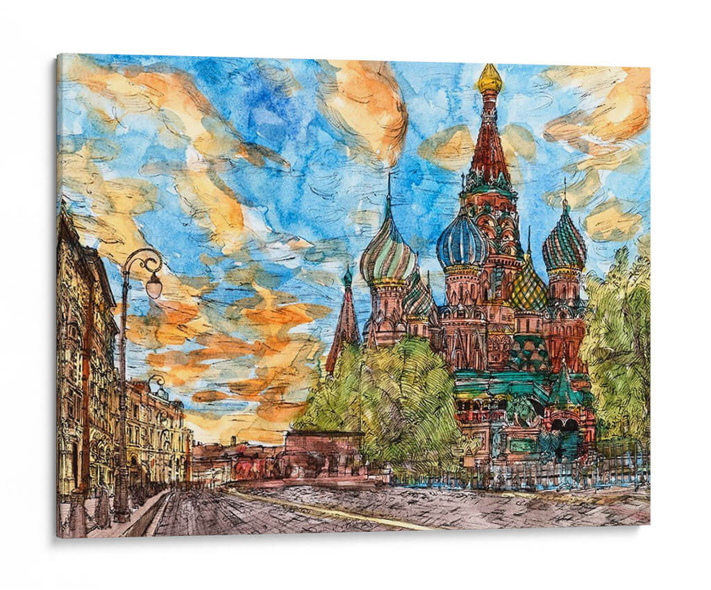 Embárquese en un viaje visual a través de "Templo Rusia I", una cautivadora obra de Melissa Wang que captura la majestuosidad icónica de la Plaza Roja. Esta pintura, ejecutada con una técnica que evoca acuarelas vibrantes y detalles a tinta, transporta al espectador a un momento de luz dorada al atardecer. Las cúpulas coloridas y las estructuras intrincadas de la Catedral de San Basilio se alzan con un esplendor digno de admiración, enmarcado por un cielo dinámico de tonos azules intensos y naranjas ardientes. La perspectiva de la calle a la izquierda, con sus edificios de arquitectura clásica y una farola antigua, añade profundidad y un sentido de lugar, invitando a pasear por este emblemático paisaje urbano. La obra irradia una atmósfera de asombro y la riqueza cultural de Rusia. "Templo Rusia I" es más que una simple representación; es una invitación a experimentar la belleza arquitectónica y la energía vibrante de uno de los lugares más reconocidos del mundo, ideal para añadir un toque de historia y color a cualquier salón, estudio u oficina, creando un punto focal que inspira conversación y admiración.