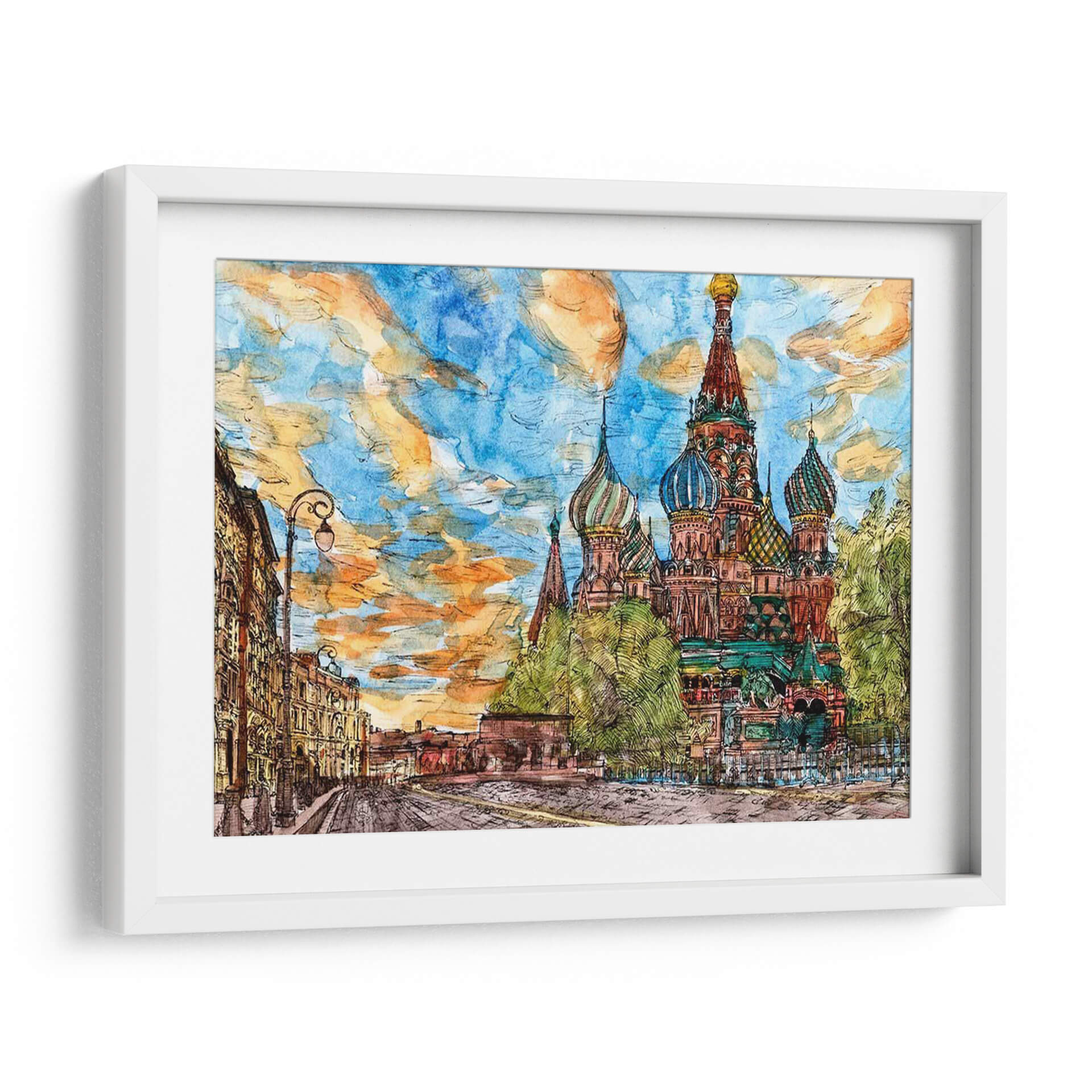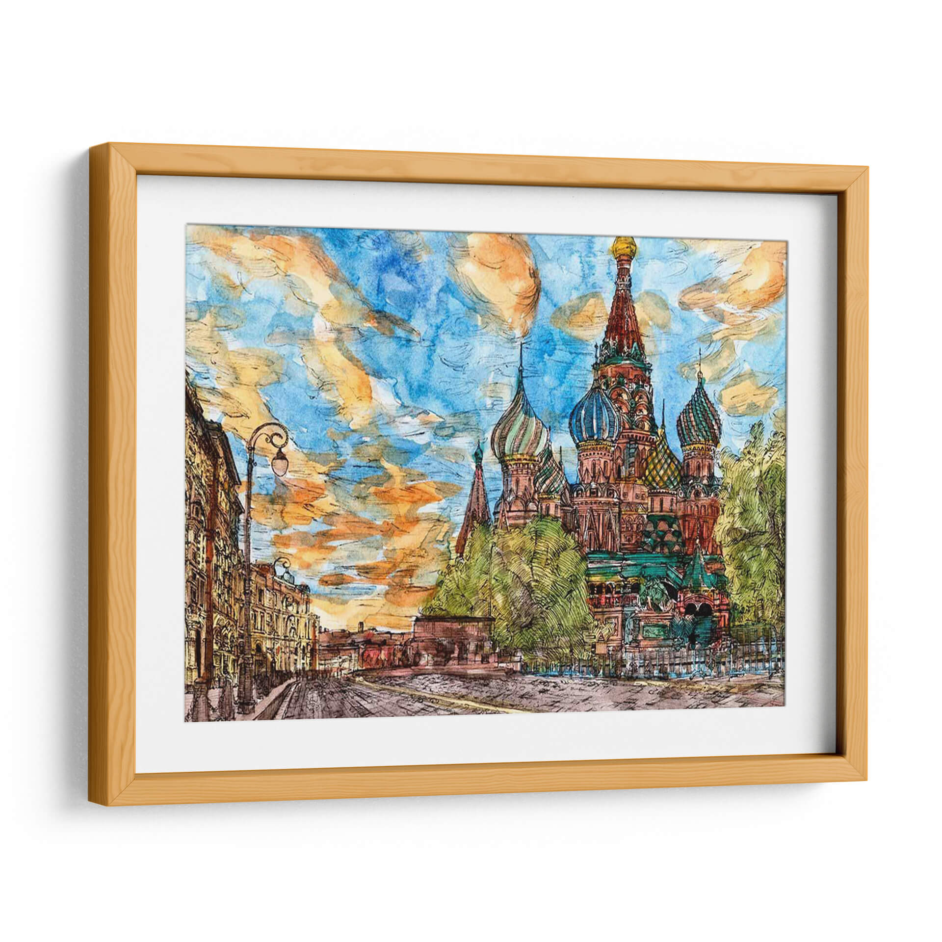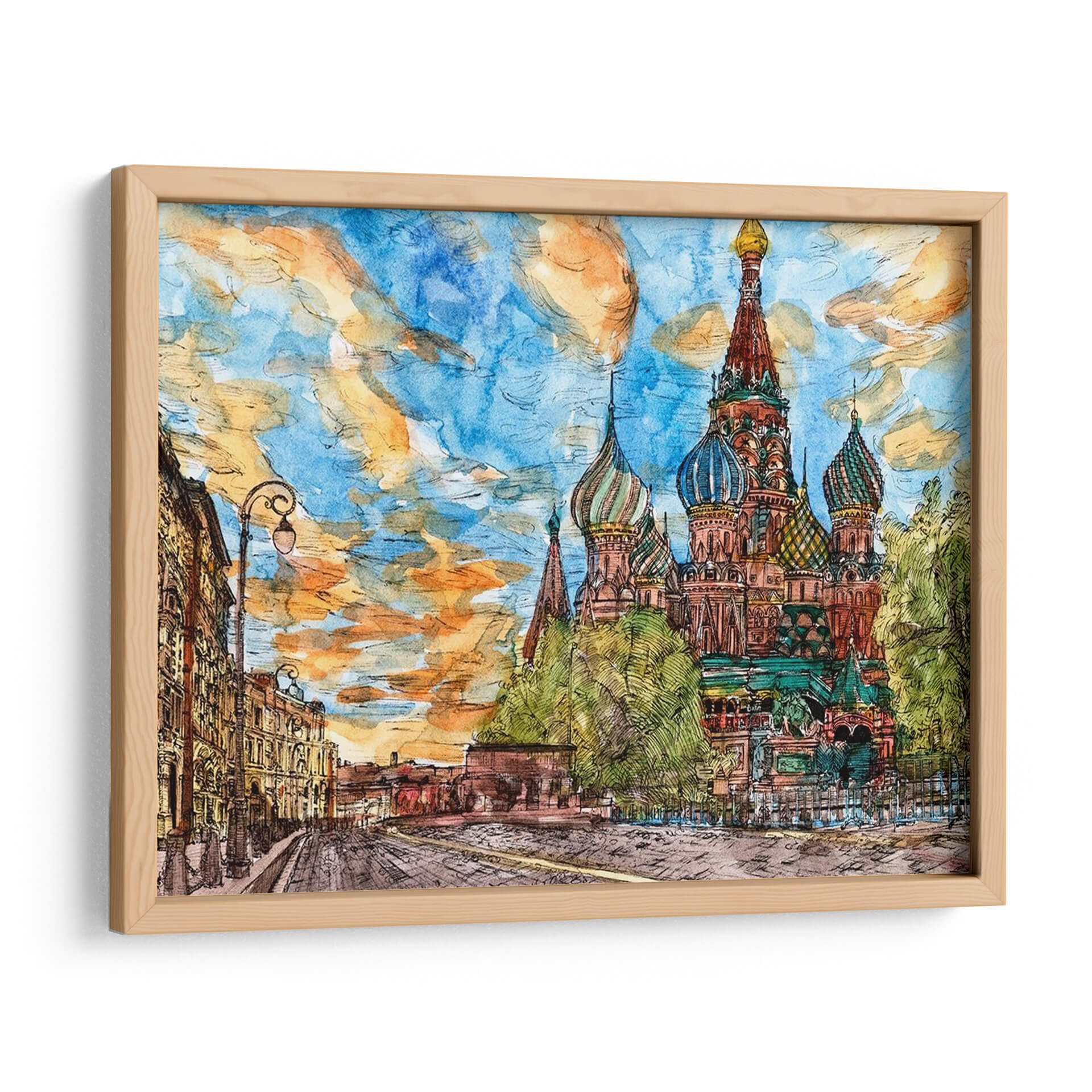Embárquese en un viaje visual a través de "Templo Rusia I", una cautivadora obra de Melissa Wang que captura la majestuosidad icónica de la Plaza Roja. Esta pintura, ejecutada con una técnica que evoca acuarelas vibrantes y detalles a tinta, transporta al espectador a un momento de luz dorada al atardecer. Las cúpulas coloridas y las estructuras intrincadas de la Catedral de San Basilio se alzan con un esplendor digno de admiración, enmarcado por un cielo dinámico de tonos azules intensos y naranjas ardientes. La perspectiva de la calle a la izquierda, con sus edificios de arquitectura clásica y una farola antigua, añade profundidad y un sentido de lugar, invitando a pasear por este emblemático paisaje urbano. La obra irradia una atmósfera de asombro y la riqueza cultural de Rusia. "Templo Rusia I" es más que una simple representación; es una invitación a experimentar la belleza arquitectónica y la energía vibrante de uno de los lugares más reconocidos del mundo, ideal para añadir un toque de historia y color a cualquier salón, estudio u oficina, creando un punto focal que inspira conversación y admiración.