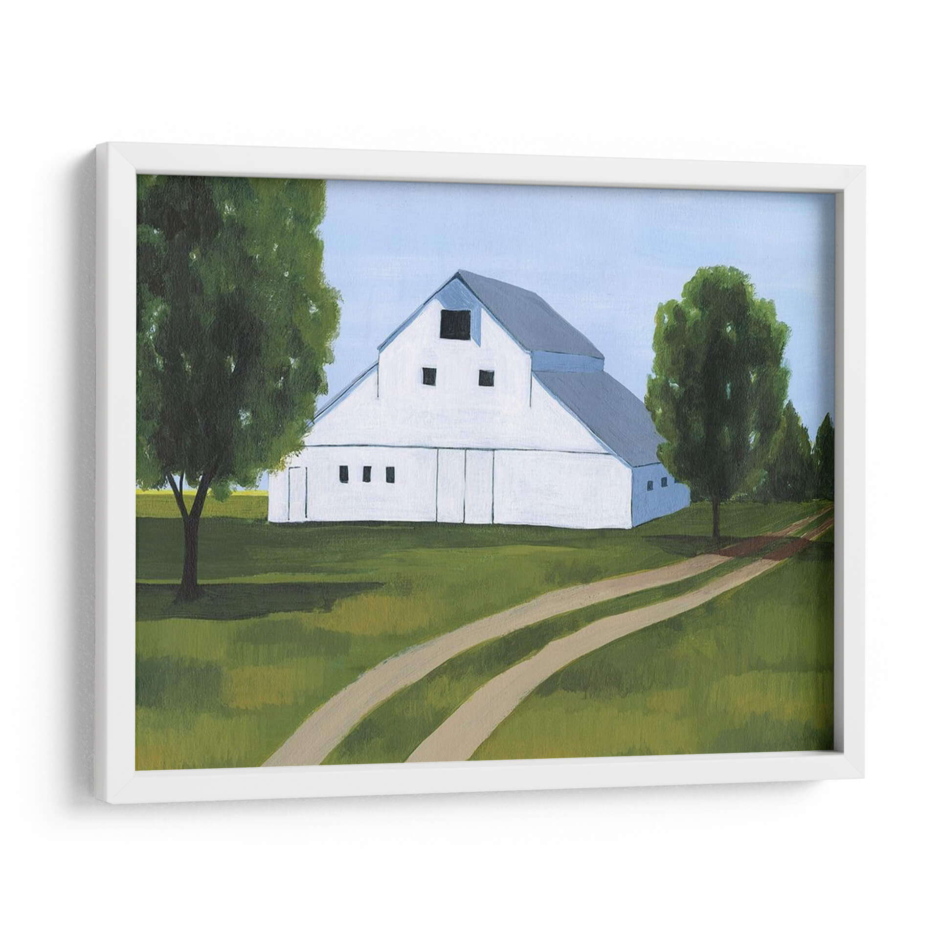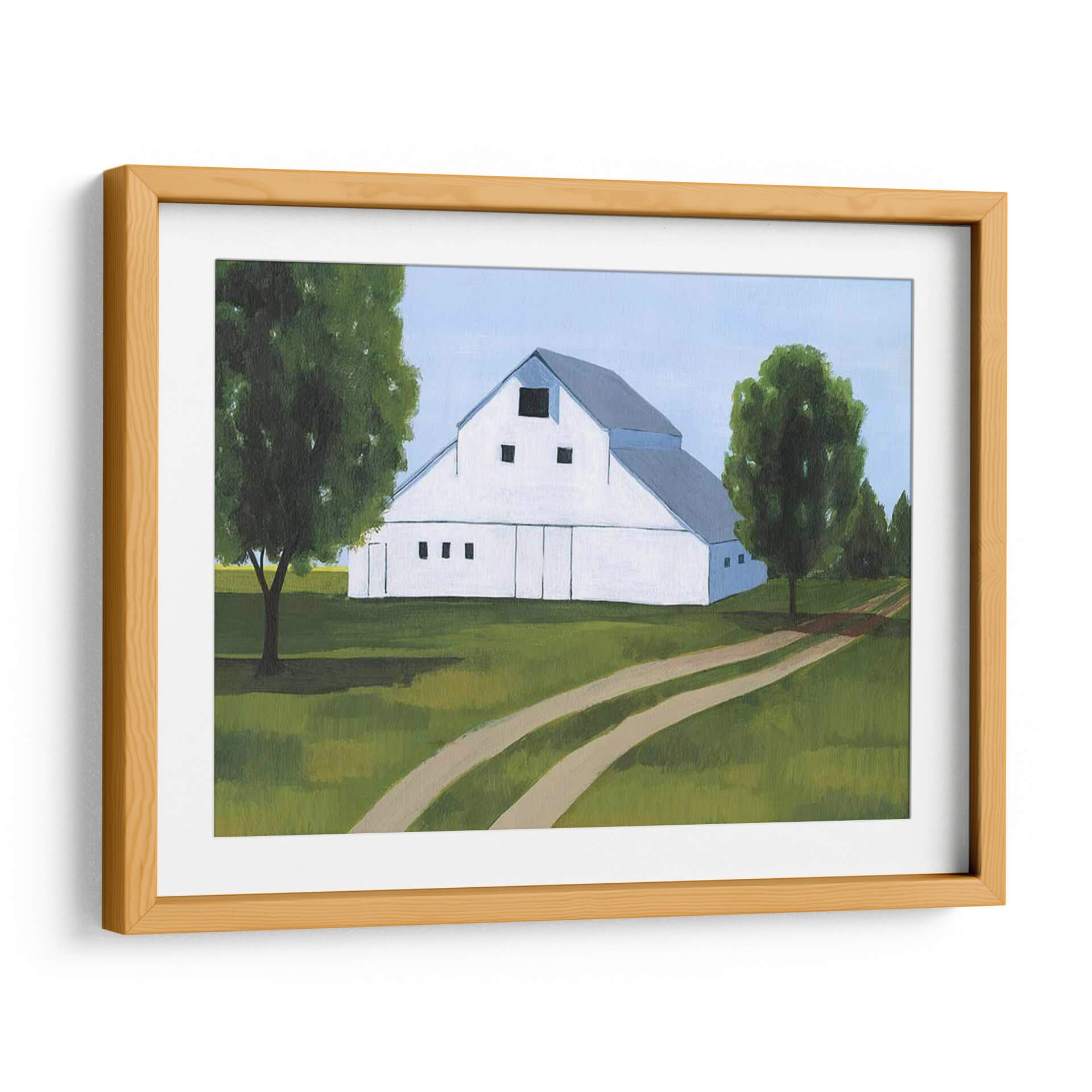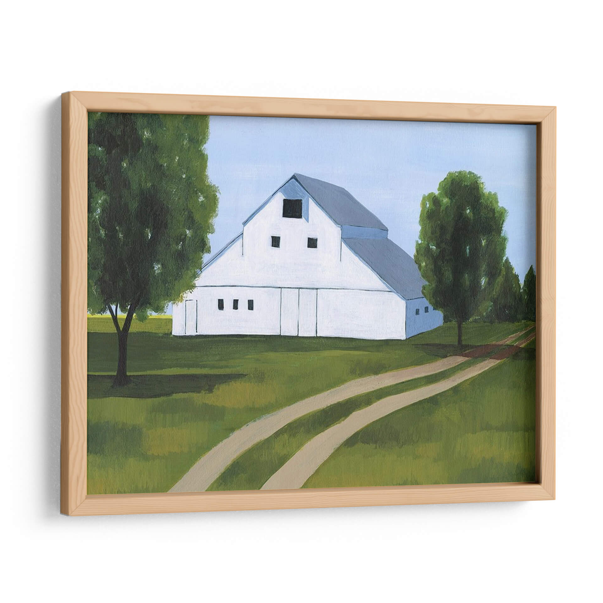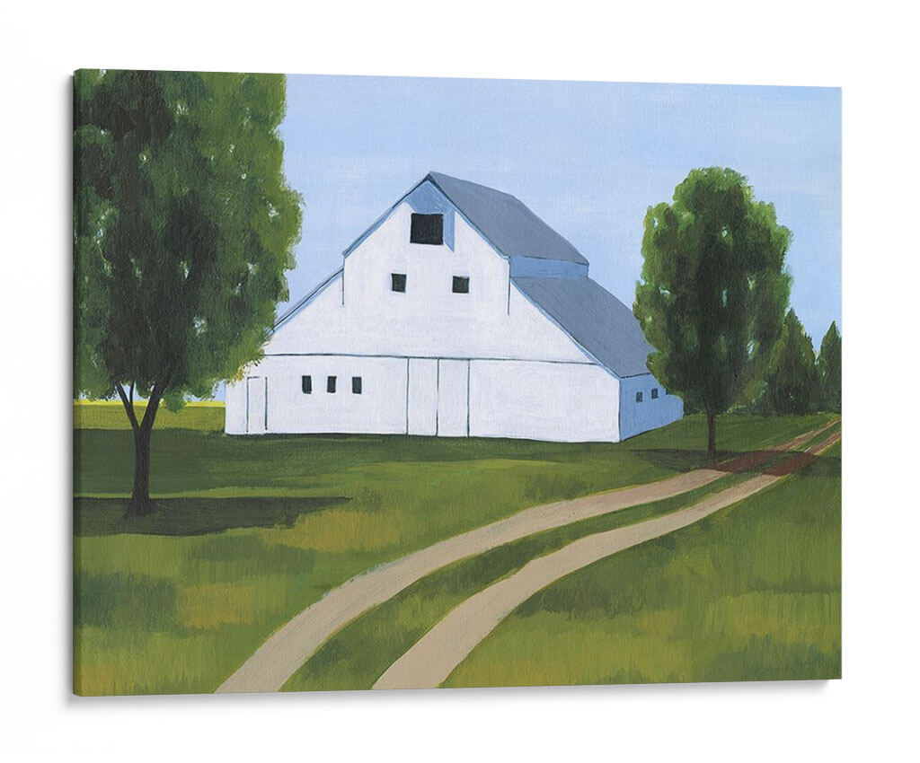 Adéntrate en la serenidad del campo con "Tomado Del Sol Stead Ii", una cautivadora obra de arte que evoca la tranquilidad de un día soleado en la granja. Esta pieza, creada por la talentosa Grace Popp, presenta una icónica construcción de granero blanco con un tejado azul distintivo, rodeada de exuberantes campos verdes y árboles frondosos. La composición simétrica y la paleta de colores limitada, dominada por blancos puros, verdes naturales y un cielo azul claro, crean una atmósfera de calma y simplicidad pastoral. Las líneas limpias del granero y el camino de entrada serpenteante invitan a la contemplación, transportando al espectador a un lugar de paz y nostalgia. "Tomado Del Sol Stead Ii" es más que un simple cuadro decorativo; es una ventana a la vida rural, ideal para añadir un toque de sosiego y encanto rústico a cualquier hogar u oficina. Su estilo distintivo, que combina elementos de realismo y una ligera abstracción en la representación de la vegetación, lo convierte en una pieza versátil que complementa diversos estilos de decoración, desde el rústico y campestre hasta el moderno y minimalista. Descubre la belleza atemporal de la naturaleza y la arquitectura tradicional con esta obra maestra.