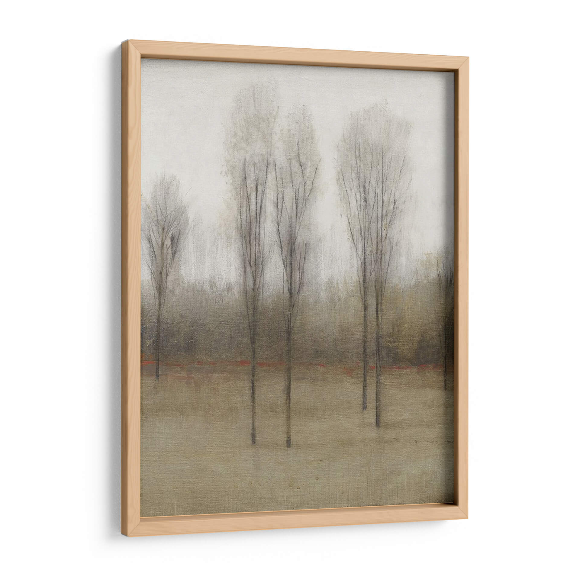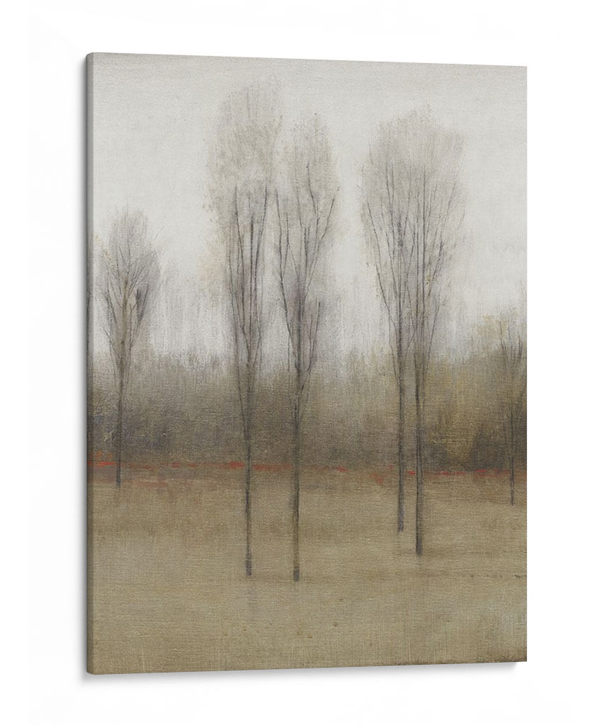 Sumérgete en la melancólica belleza del "Último Día De Otoño I" de Tim O'Toole, una obra de arte que captura la esencia etérea de la estación con una paleta de colores sutil y evocadora. Este cuadro decorativo presenta un paisaje sereno dominado por árboles esbeltos y desnudos, cuyas siluetas se alzan contra un cielo brumoso y tonos tierra que evocan la transición hacia el invierno. La delicada línea roja que cruza la composición añade un toque inesperado de color, rompiendo la monotonía y sugiriendo los últimos vestigios de vida y calidez. El estilo impresionista y la técnica de aplicación de pintura crean una atmósfera de ensueño, casi como un recuerdo fugaz, ideal para quienes buscan infundir calma y sofisticación en sus hogares u oficinas. Este lienzo es perfecto para crear un rincón de contemplación en tu sala de estar, aportar serenidad a un dormitorio o añadir un punto de interés introspectivo a un estudio. Deja que "Último Día De Otoño I" te transporte a un momento de quietud y reflexión, añadiendo una dimensión de profundidad emocional a tu decoración.