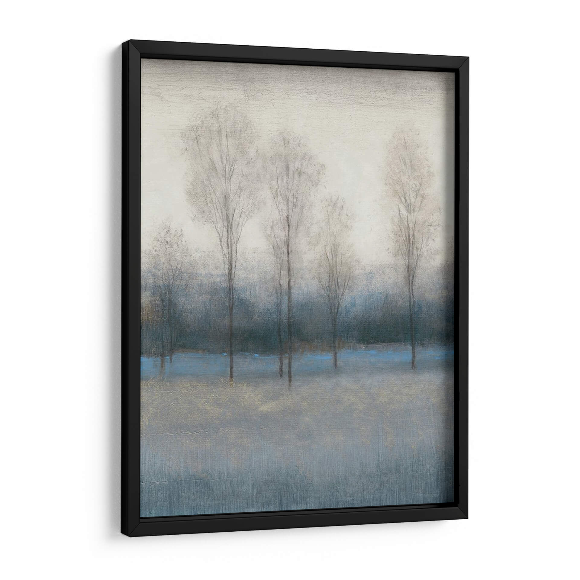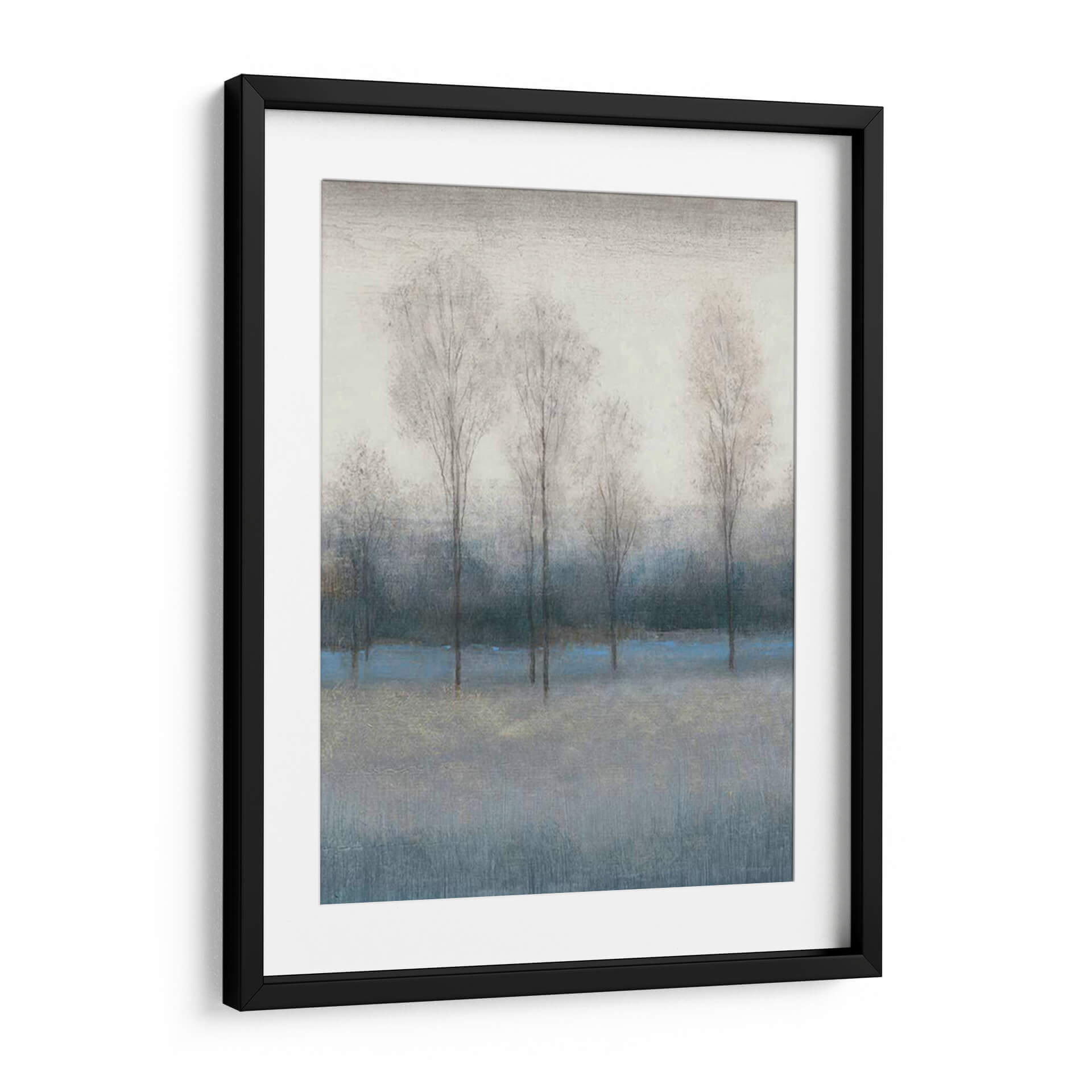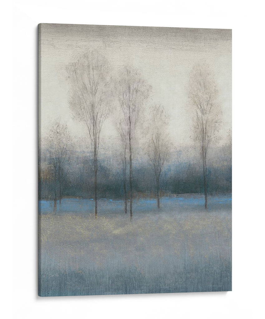 Captura la esencia melancólica y serena del otoño con 'Último Día De Otoño III', una obra de arte que invita a la contemplación. Los árboles esbeltos y deshojados, representados con trazos delicados y etéreos, se alzan contra un fondo de tonos grises y azules profundos, evocando la quietud de una tarde invernal incipiente. Una pincelada de azul vibrante atraviesa la composición, añadiendo un sutil toque de color y vitalidad a la paleta predominantemente apagada, mientras que finos detalles dorados aportan un brillo inesperado. El estilo abstracto y atmosférico de Tim O'Toole crea una sensación de profundidad y misterio, transportando al espectador a un paisaje onírico. Este cuadro decorativo es ideal para infundir calma y sofisticación en cualquier espacio, ya sea una sala de estar moderna, un estudio tranquilo o un dormitorio acogedor. Su atmósfera introspectiva lo convierte en una pieza versátil que complementa decoraciones contemporáneas y minimalistas, ofreciendo un respiro visual y un punto de conexión emocional. Añade esta pieza única a tu colección y experimenta la belleza efímera del final de la estación.