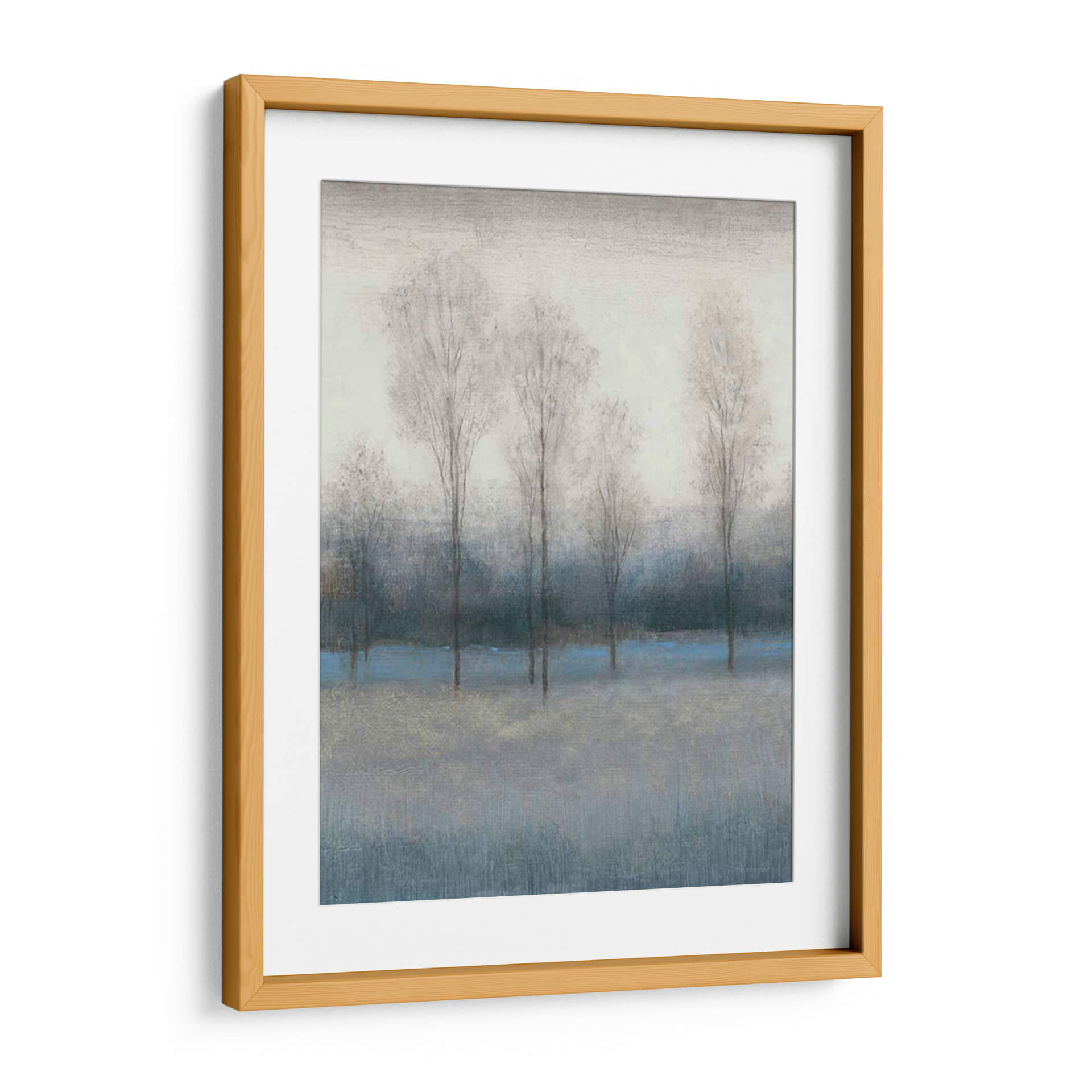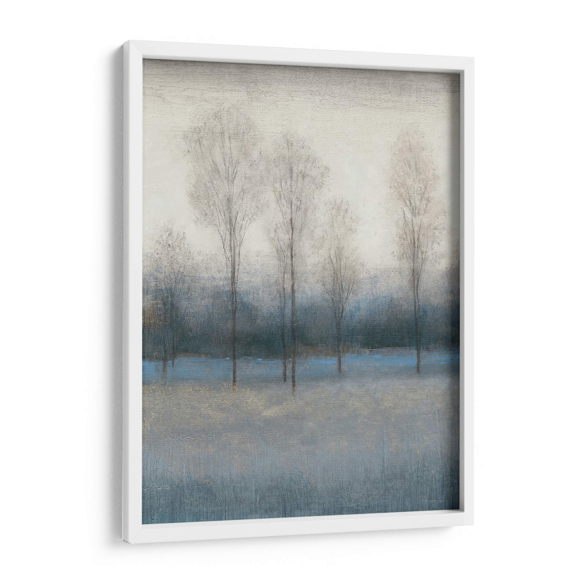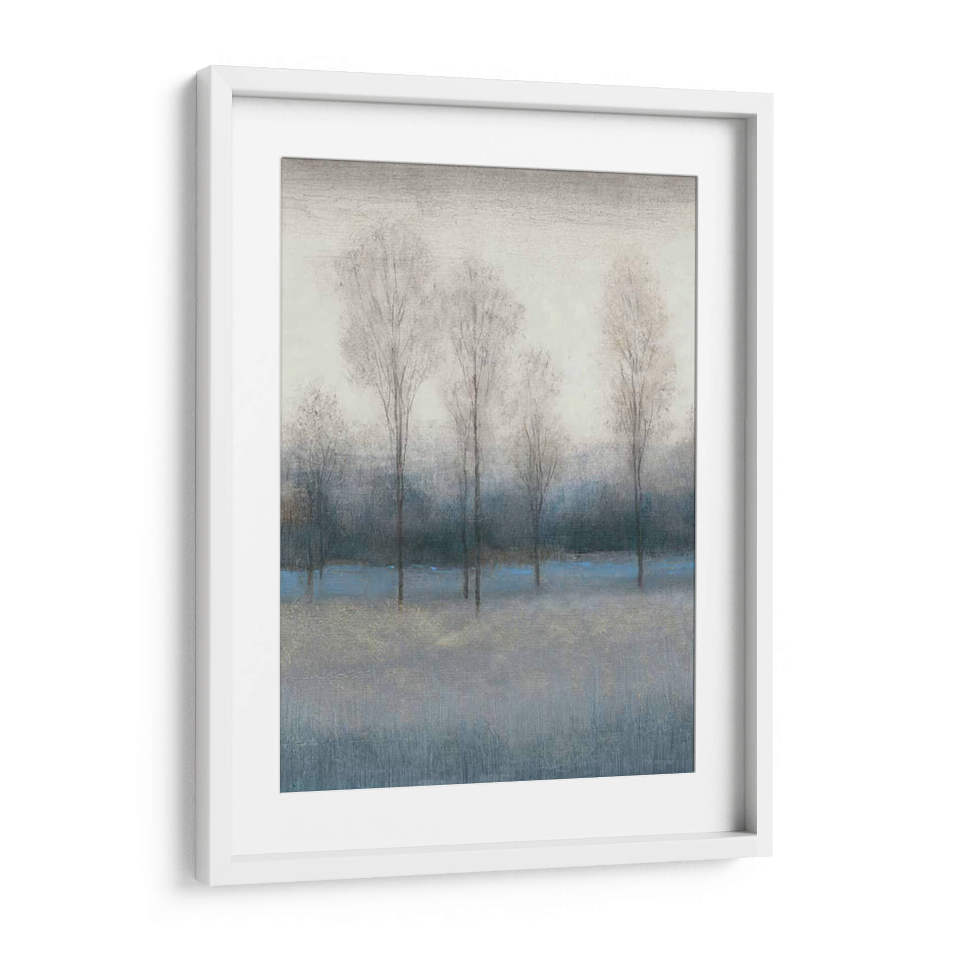 Captura la esencia melancólica y serena del otoño con 'Último Día De Otoño III', una obra de arte que invita a la contemplación. Los árboles esbeltos y deshojados, representados con trazos delicados y etéreos, se alzan contra un fondo de tonos grises y azules profundos, evocando la quietud de una tarde invernal incipiente. Una pincelada de azul vibrante atraviesa la composición, añadiendo un sutil toque de color y vitalidad a la paleta predominantemente apagada, mientras que finos detalles dorados aportan un brillo inesperado. El estilo abstracto y atmosférico de Tim O'Toole crea una sensación de profundidad y misterio, transportando al espectador a un paisaje onírico. Este cuadro decorativo es ideal para infundir calma y sofisticación en cualquier espacio, ya sea una sala de estar moderna, un estudio tranquilo o un dormitorio acogedor. Su atmósfera introspectiva lo convierte en una pieza versátil que complementa decoraciones contemporáneas y minimalistas, ofreciendo un respiro visual y un punto de conexión emocional. Añade esta pieza única a tu colección y experimenta la belleza efímera del final de la estación.
