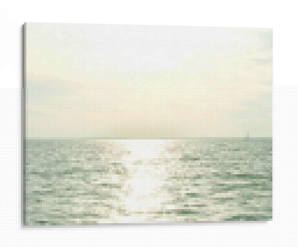 Sumérgete en la serenidad y la inmensidad del océano con "Uncharted II", una obra de arte evocadora de Sharon Chandler. Este cuadro decorativo captura la esencia de una travesía solitaria en alta mar, donde un velero solitario navega hacia el horizonte bajo un cielo luminoso y tranquilo. La paleta de colores, dominada por tonos suaves de verde azulado y amarillos pálidos, crea una atmósfera de calma y reflexión, invitando a la paz interior. La composición minimalista, con la línea del horizonte dividiendo el lienzo en tercios, enfatiza la vastedad del mar y la pequeñez del ser humano frente a la naturaleza. Los sutiles reflejos del sol sobre el agua añaden un toque de magia y optimismo, sugiriendo un nuevo comienzo o un viaje prometedor. "Uncharted II" es ideal para espacios que buscan transmitir tranquilidad y sofisticación, como un dormitorio, un estudio o una sala de estar donde se desee un punto de conexión con la naturaleza y la aventura interior. Este cuadro de paisaje marino moderno es perfecto para quienes aprecian la belleza serena de los viajes y la introspección, aportando una sensación de escape y descubrimiento a cualquier decoración.