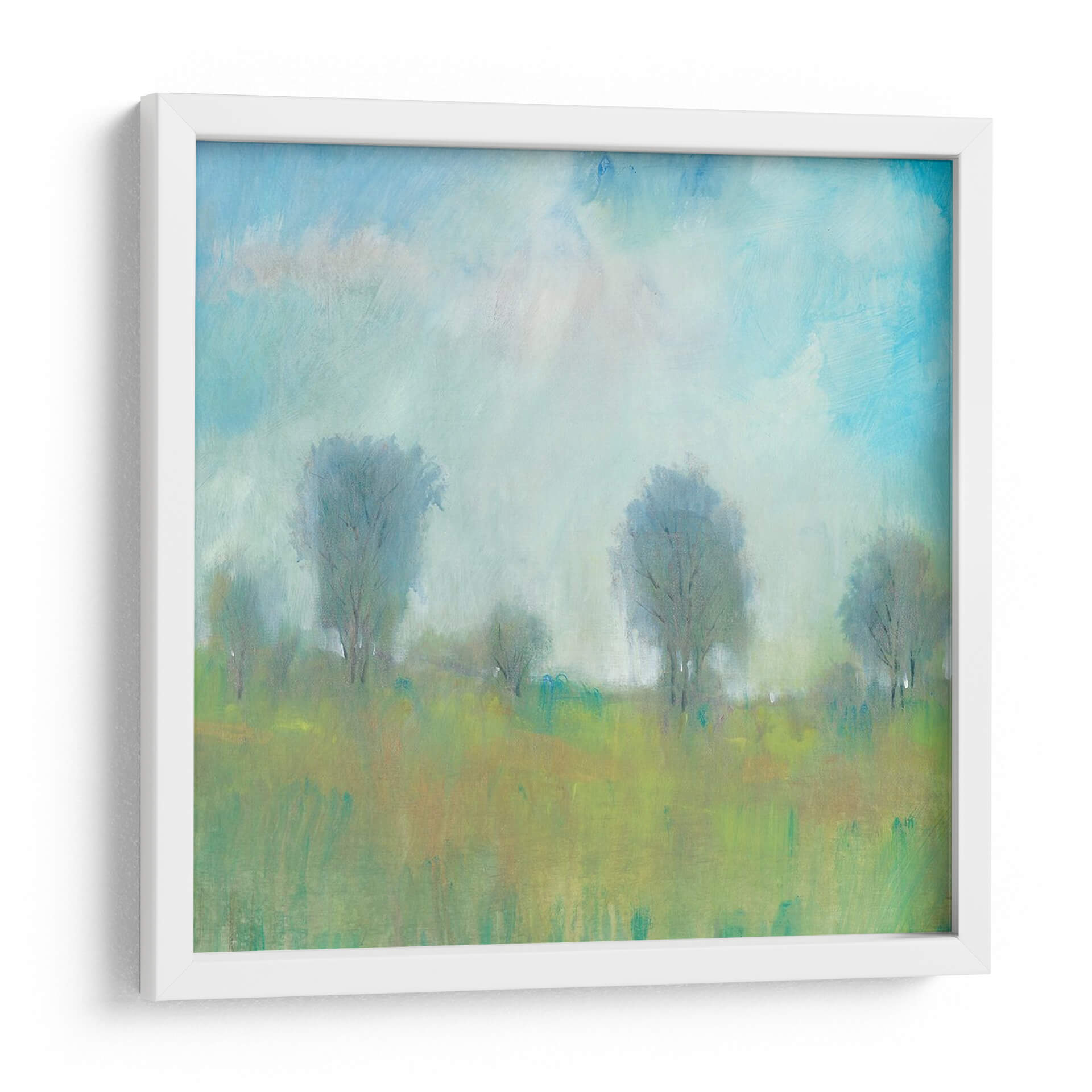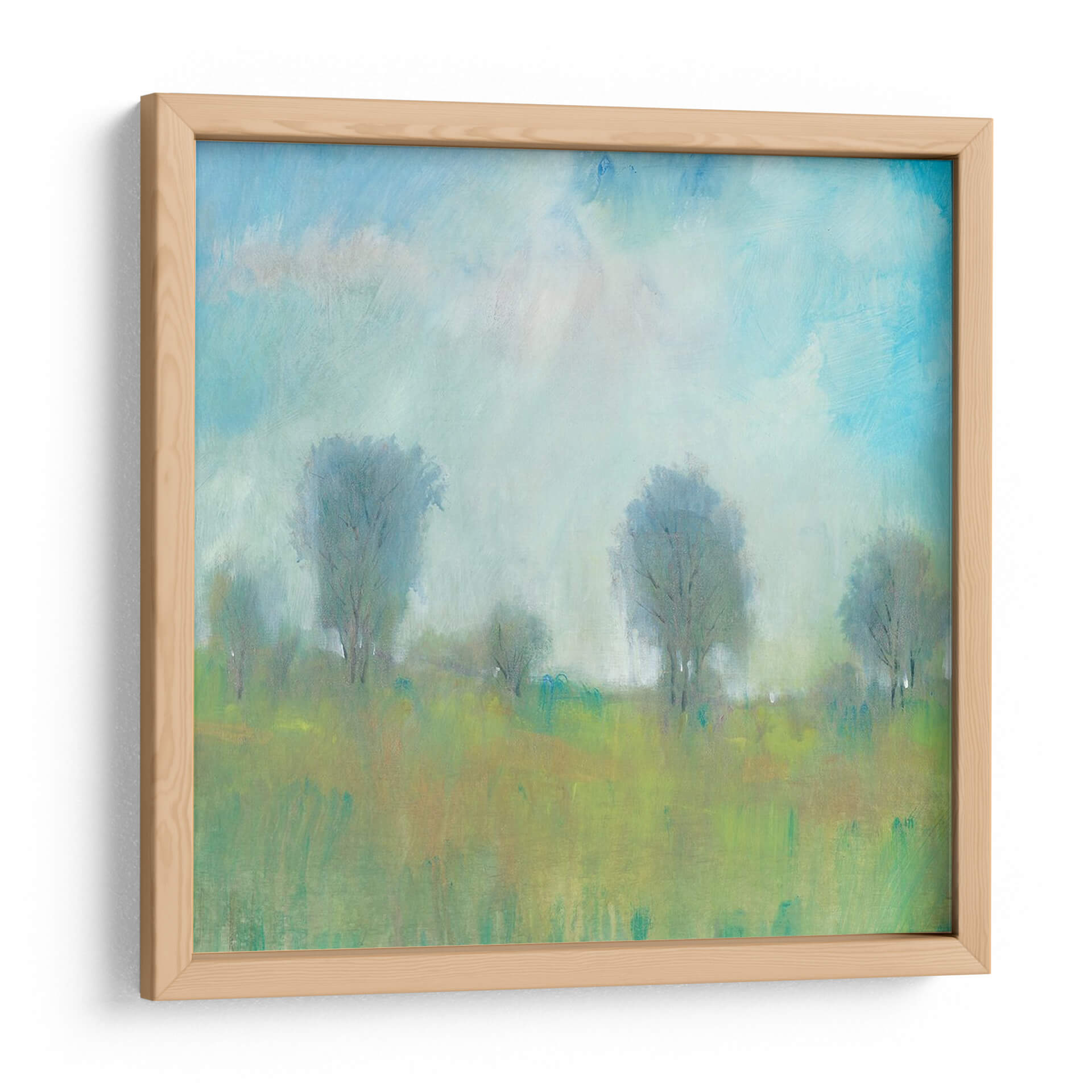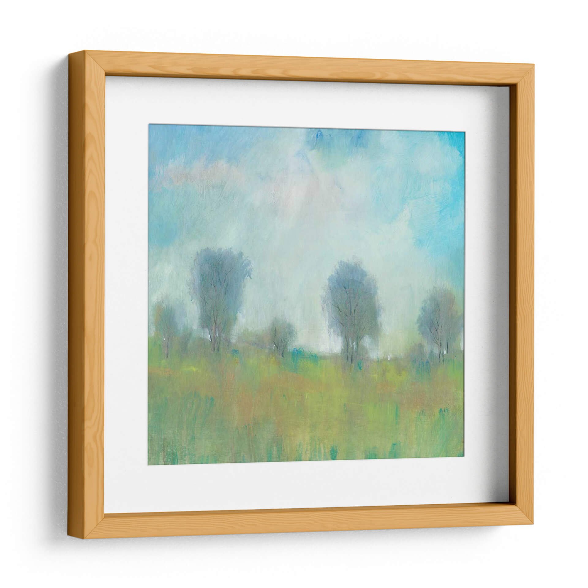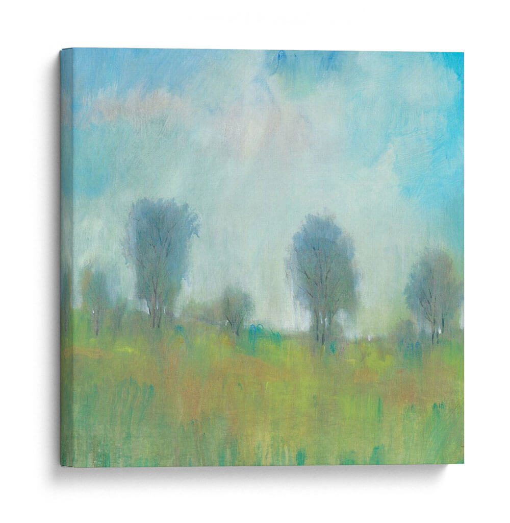 Sumérgete en la serenidad del "Verano I" de Tim O'Toole, una obra de arte que captura la esencia etérea de un paisaje bañado por la luz. Los trazos suaves y la paleta de colores, dominada por verdes vibrantes, ocres cálidos y azules celestes, crean una atmósfera de paz y tranquilidad. Los árboles estilizados se alzan como siluetas amables contra un cielo nublado y luminoso, evocando una sensación de calma y contemplación. Este cuadro decorativo es una invitación a la introspección, ideal para transformar cualquier espacio en un refugio de serenidad. Su estilo, que recuerda al impresionismo con un toque contemporáneo, lo hace versátil para complementar tanto ambientes modernos como rústicos. Imagina esta pieza aportando una brisa fresca y natural a tu sala de estar, dormitorio o estudio, recordándote la belleza serena de un día de verano. "Verano I" no es solo una decoración, es una ventana a un momento de paz y belleza natural, un diálogo silencioso entre el arte y tu alma, diseñado para inspirar y calmar.