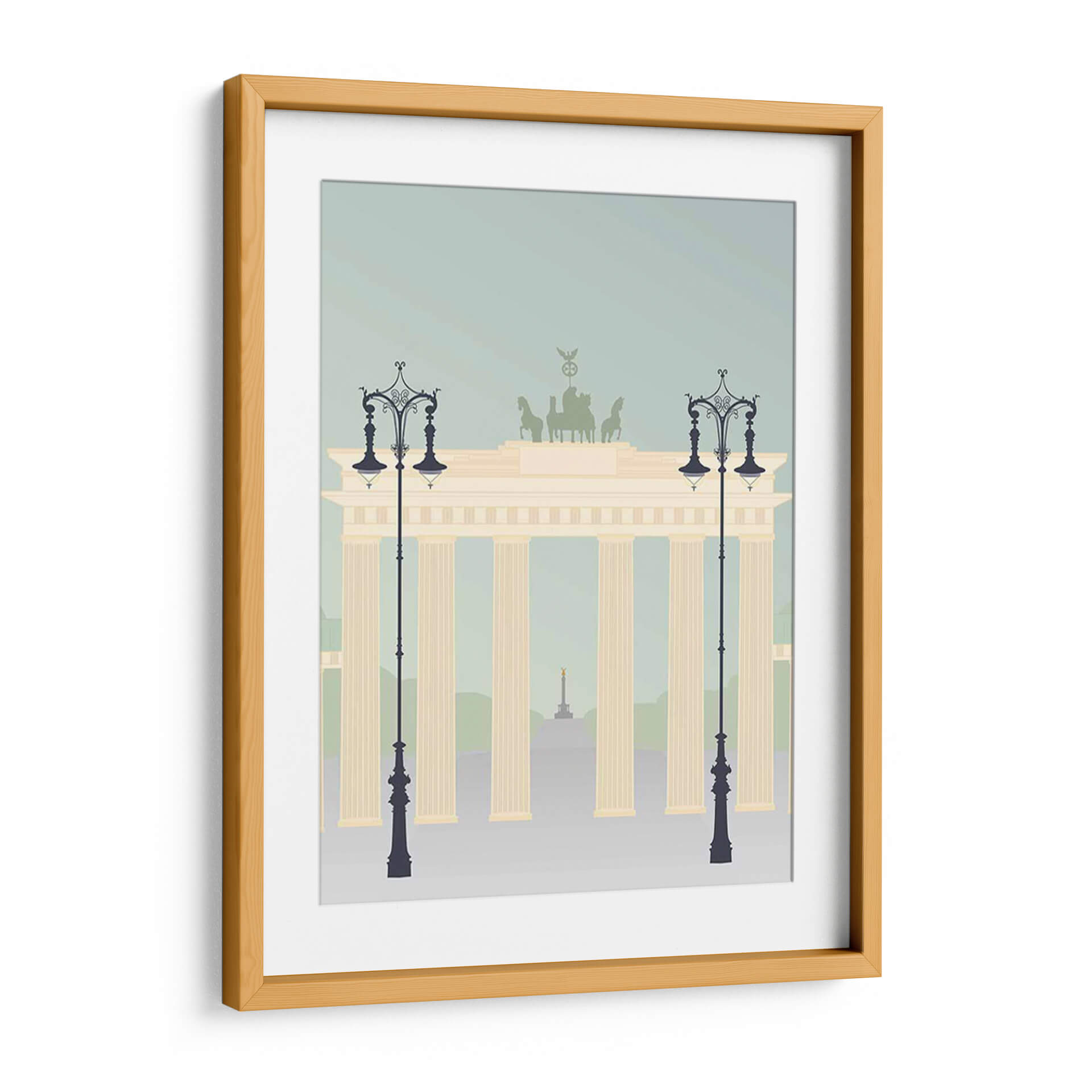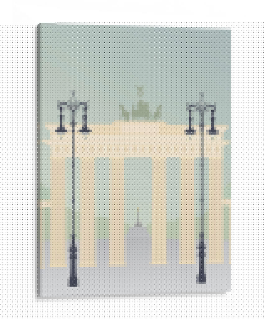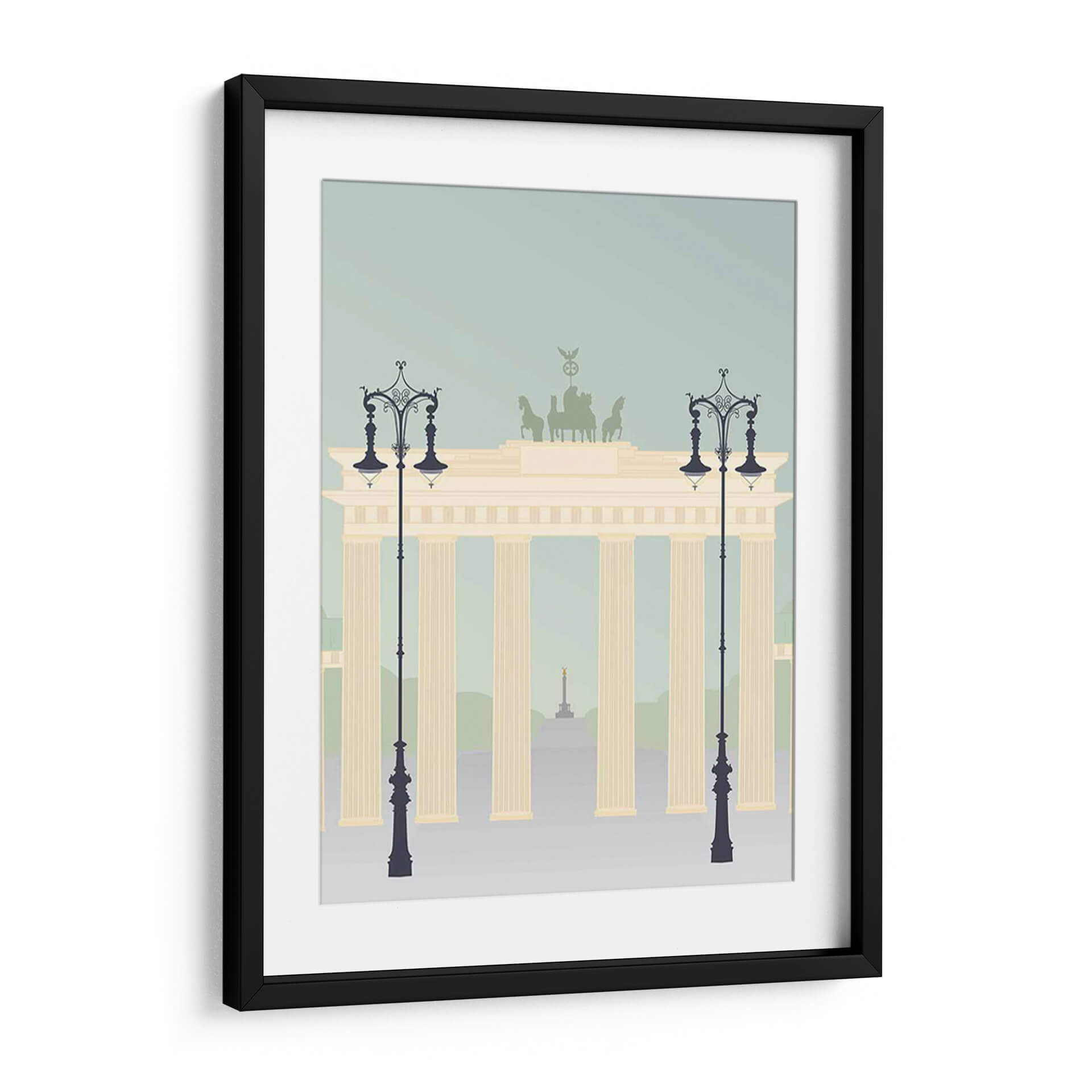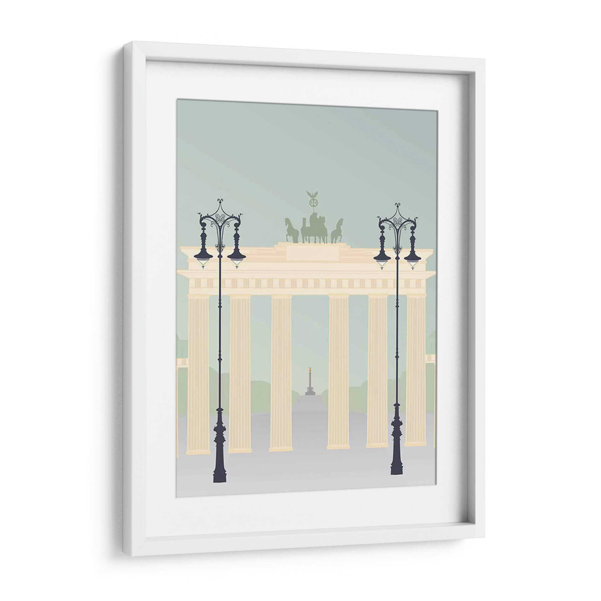 Evoca la majestuosidad arquitectónica y el espíritu viajero con "Viajes Europa - Brandenburger", una obra de arte digital que captura la icónica Puerta de Brandeburgo en un estilo gráfico moderno y estilizado. Los suaves tonos pastel, que van desde un azul cielo tenue hasta el cálido beige de la estructura principal y los acentos verdes tenues del fondo, crean una atmósfera serena y contemplativa. Las siluetas de farolas ornamentadas flanquean la imponente puerta, añadiendo un toque de elegancia clásica a la composición. En la distancia, se vislumbra un obelisco dorado, sugiriendo un paisaje urbano lleno de historia y monumentos. Este cuadro decorativo es ideal para aquellos que desean infundir en sus hogares u oficinas una sensación de sofisticación europea y recuerdos de viajes. Su diseño limpio y la paleta de colores armoniosa lo convierten en una pieza versátil, perfecta para salones modernos, estudios o recibidores, aportando un toque de distinción sin abrumar el espacio. "Viajes Europa - Brandenburger" no es solo una representación, es una invitación a la exploración y la apreciación de la belleza arquitectónica.