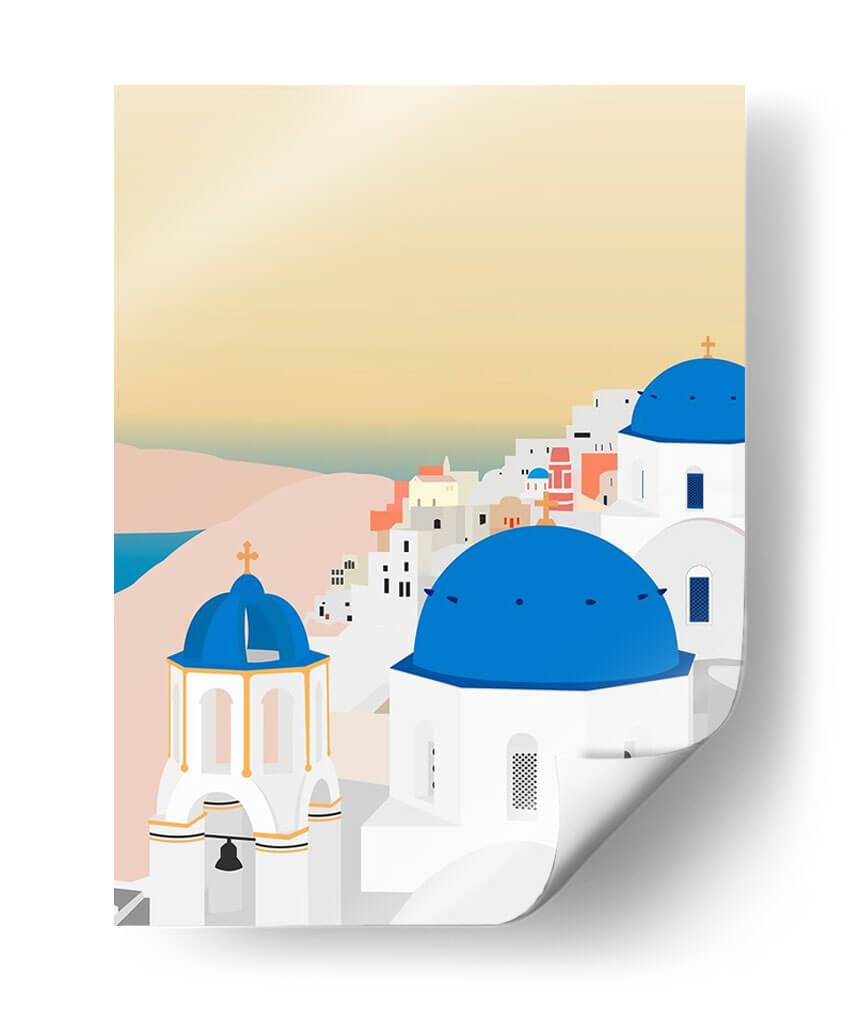 Embárcate en un viaje visual a través del mar Egeo con este cautivador cuadro decorativo "Viajes Europa - Santorini" de Gurli Soerensen. La obra captura la icónica arquitectura de las islas griegas, dominada por las emblemáticas cúpulas azules que contrastan maravillosamente con el blanco resplandeciente de los edificios. Los suaves tonos pastel del cielo y las colinas circundantes crean una atmósfera de serenidad y calidez, invitando a la contemplación y la relajación. La composición, de estilo minimalista y geométrico, simplifica las formas para resaltar la belleza escénica y la luz única de la región. Este cuadro es perfecto para añadir un toque de encanto mediterráneo y tranquilidad a tu hogar u oficina, evocando la sensación de unas vacaciones idílicas. Ideal para quienes buscan una pieza de arte que transmita paz y belleza, este diseño contemporáneo se integra fácilmente en diversos estilos decorativos, desde el moderno hasta el bohemio, convirtiéndose en un punto focal que transporta a paisajes de ensueño.