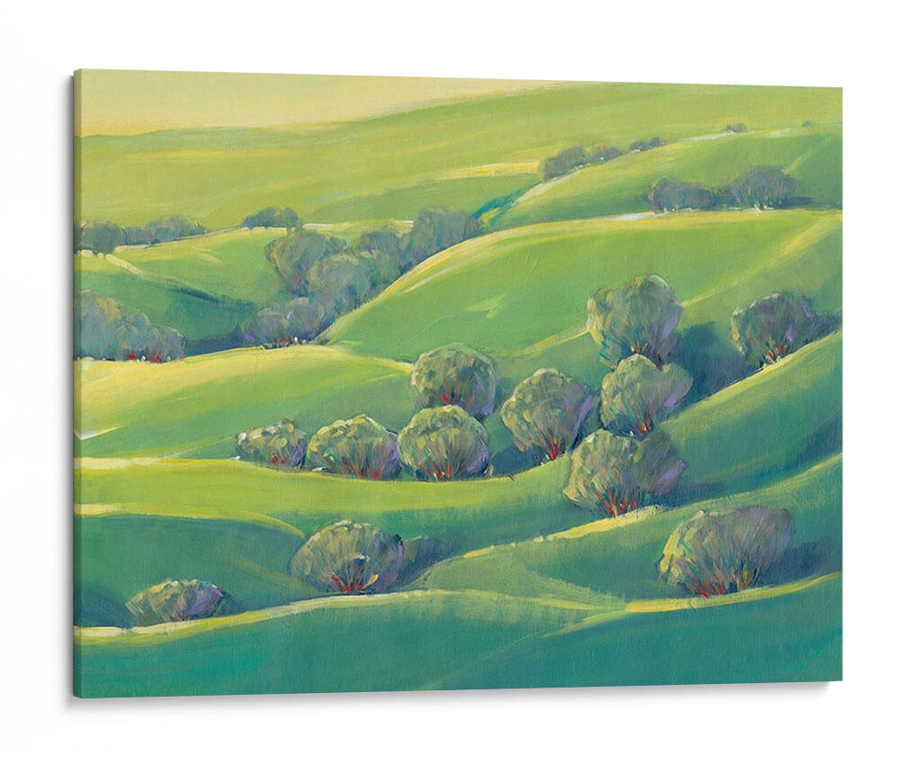 Sumérgete en la serena belleza de "Vista De Ladera I", una obra de arte que captura la esencia de un paisaje ondulado bañado por la luz dorada del atardecer. Las suaves colinas se despliegan en una sinfonía de verdes vibrantes y tonos tierra, salpicadas por la presencia pintoresca de árboles solitarios. La técnica pictórica evoca una sensación de movimiento y profundidad, invitando al espectador a perderse en la atmósfera pacífica y atemporal de la escena. Este cuadro decorativo, con su composición armoniosa y su paleta de colores cálidos y refrescantes, es ideal para transformar cualquier espacio en un santuario de tranquilidad. Ya sea en una sala de estar, un dormitorio o una oficina, "Vista De Ladera I" aporta una conexión con la naturaleza y una elegancia sutil que realza la decoración. Déjate envolver por la calma y la inspiración que emana de esta pieza, perfecta para quienes buscan añadir un toque de naturaleza serena y arte contemporáneo a su hogar.