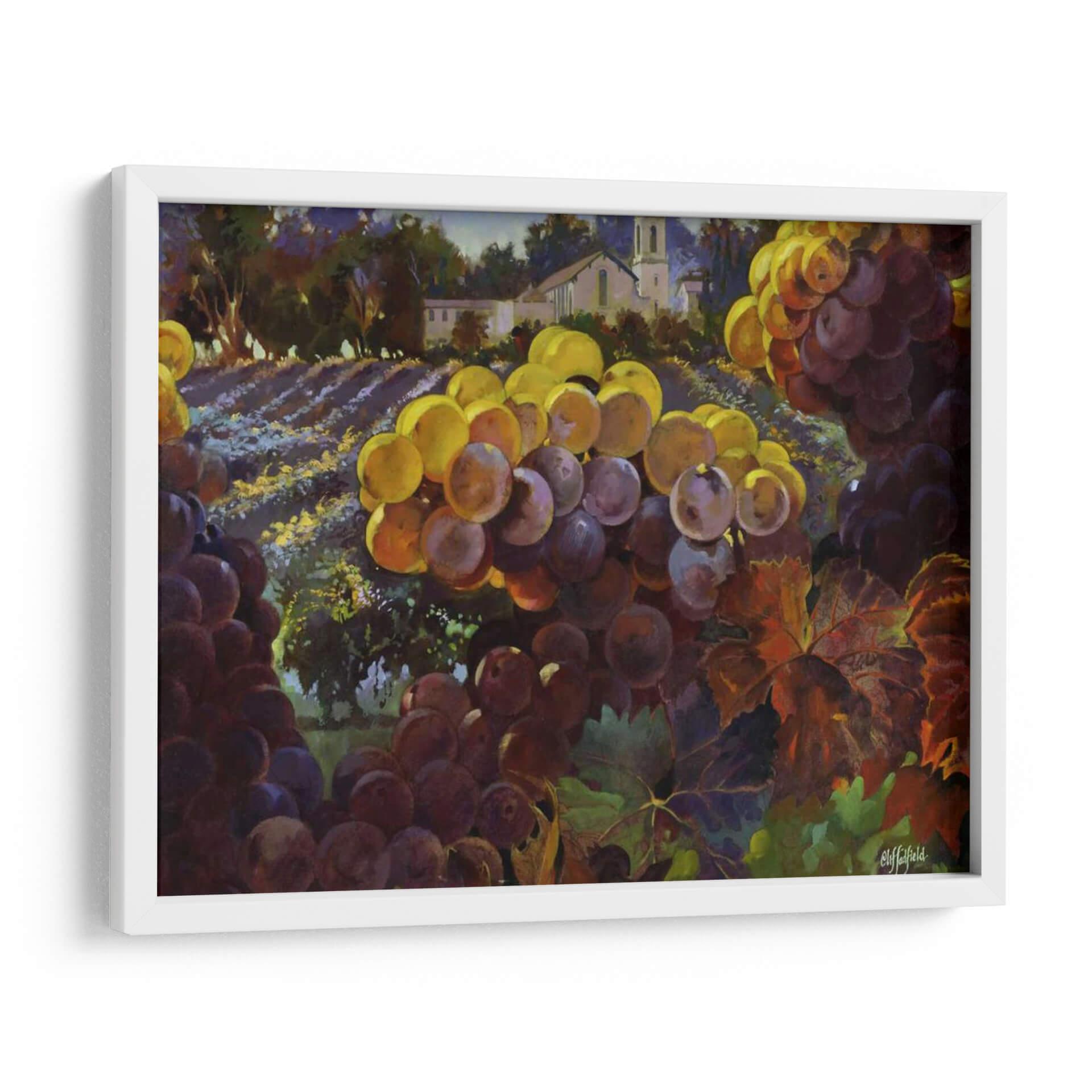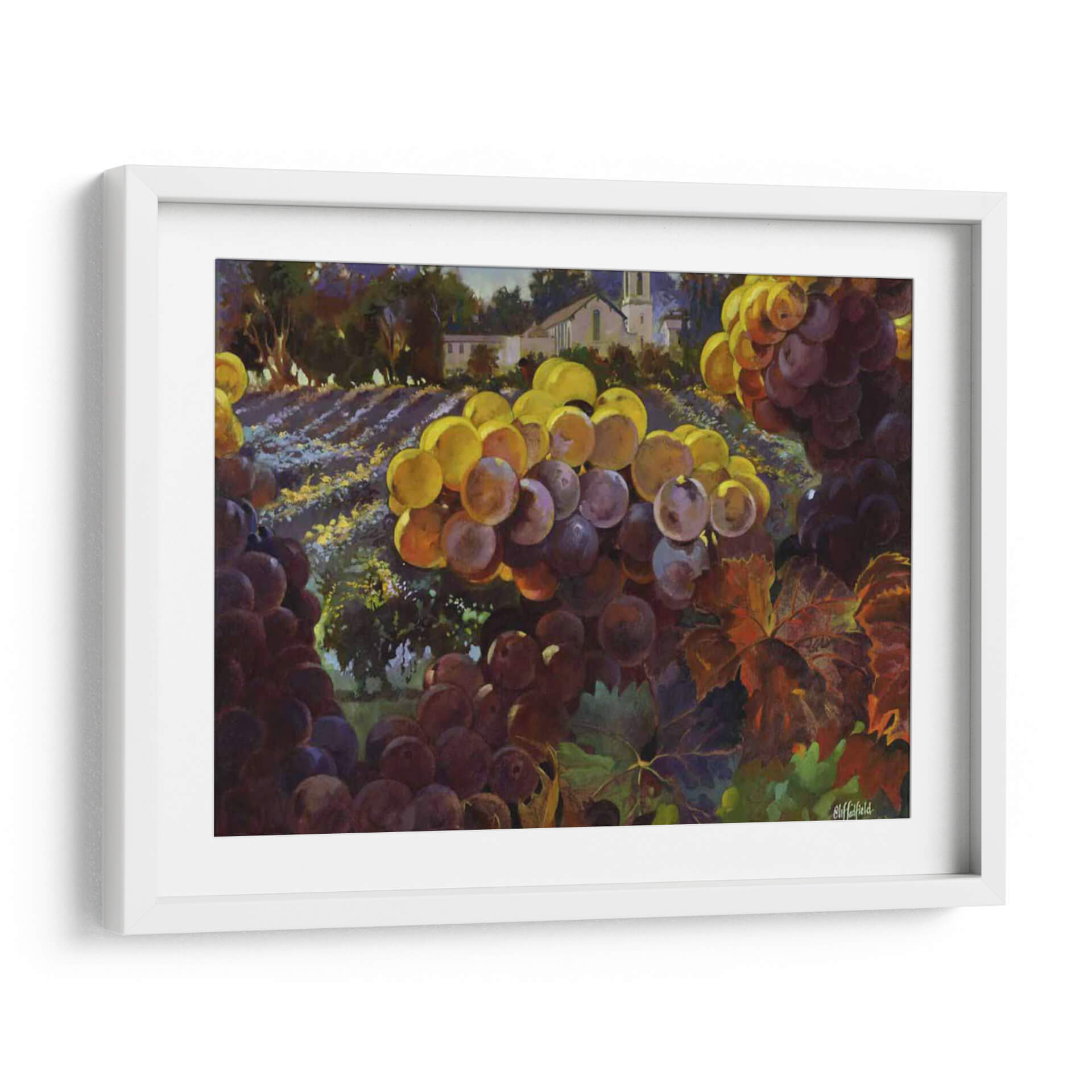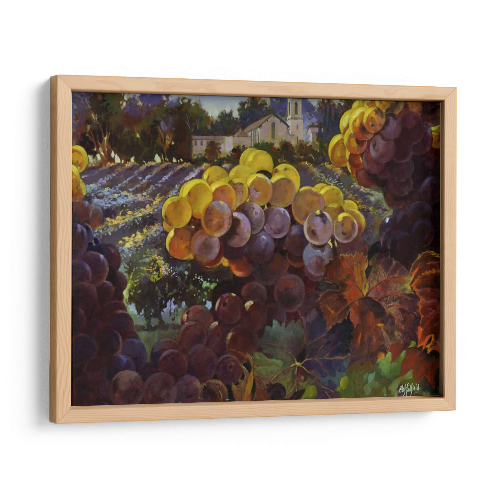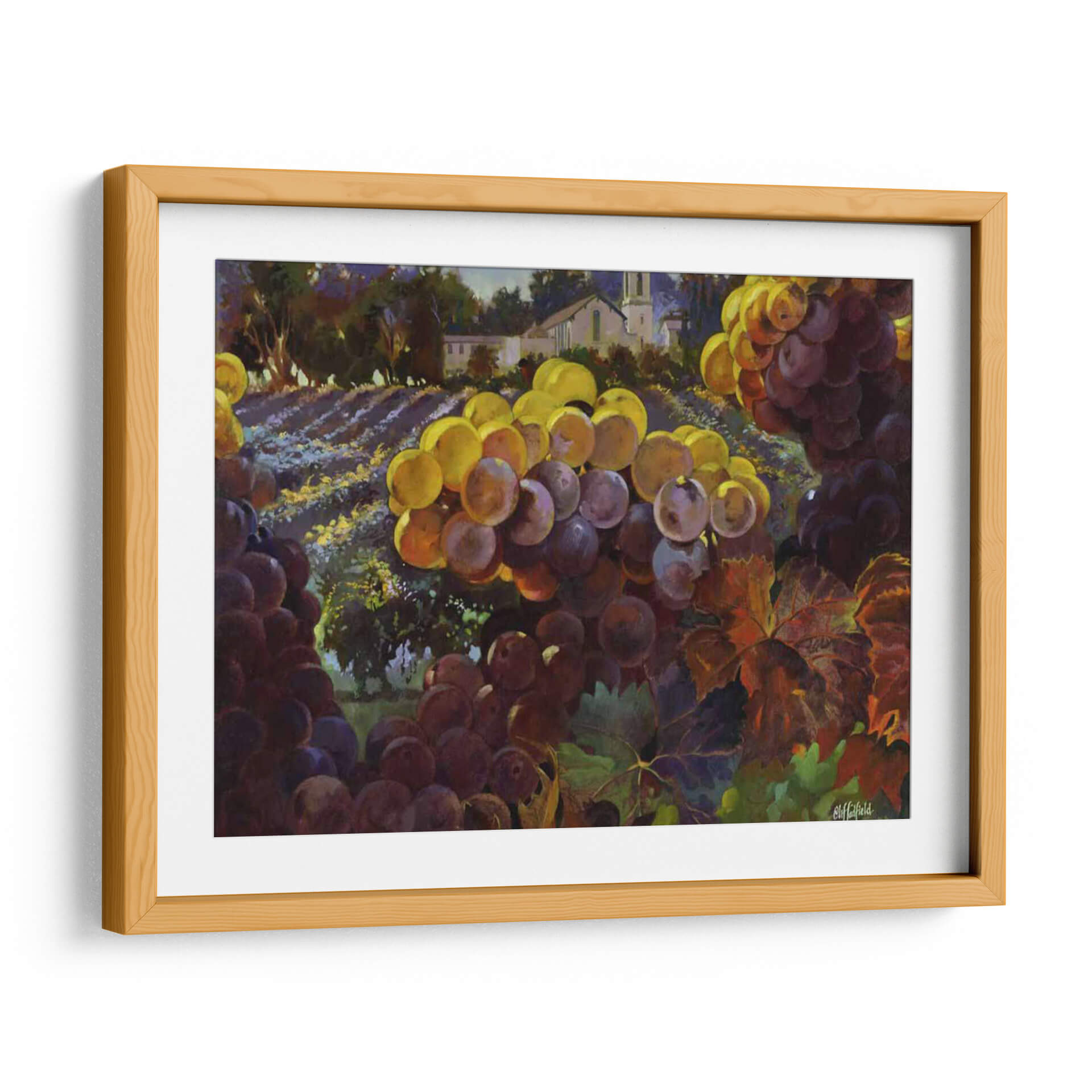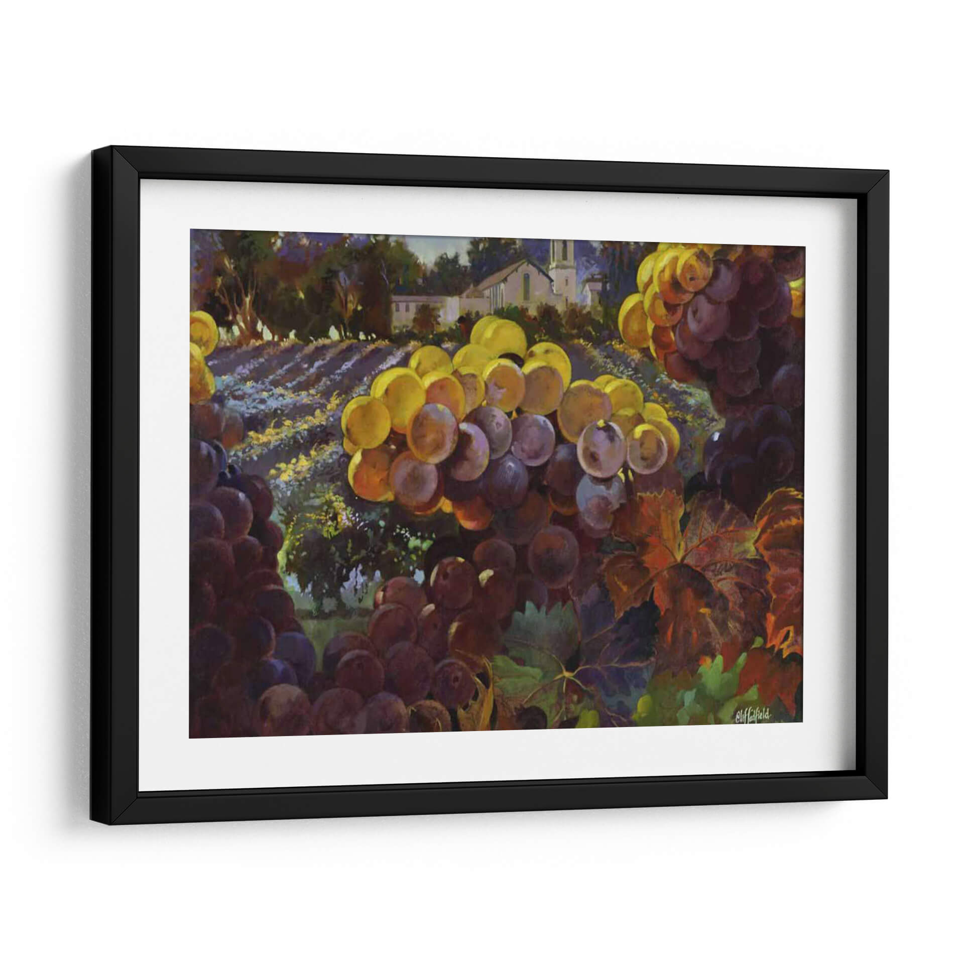 Sumérgete en la rica paleta de colores y la atmósfera idílica de "Vista Previa de Otoño", una obra de arte cautivadora del artista Clif Hadfield. Este cuadro decorativo transporta al espectador a un viñedo bañado por la luz dorada del atardecer, donde racimos de uvas maduras, en tonalidades que van desde el púrpura profundo hasta el amarillo vibrante, cuelgan con una opulencia palpable. El estilo pictórico, con pinceladas audaces y una apreciación por la luz y la sombra, evoca una sensación de calidez y abundancia. Al fondo, un pintoresco edificio, posiblemente una bodega o una iglesia, se alza entre la arboleda, añadiendo un toque de serenidad y tradición al paisaje. Las texturas ricas y los detalles de las hojas de parra y la tierra cultivada invitan a la contemplación, haciendo de esta pieza un elemento decorativo ideal para cualquier espacio que busque evocar la belleza de la naturaleza y la generosidad de la cosecha. "Vista Previa de Otoño" es más que una simple imagen; es una invitación a disfrutar de los placeres sencillos y la belleza rústica, perfecta para salones, comedores o bodegas que deseen un toque de sofisticación campestre.