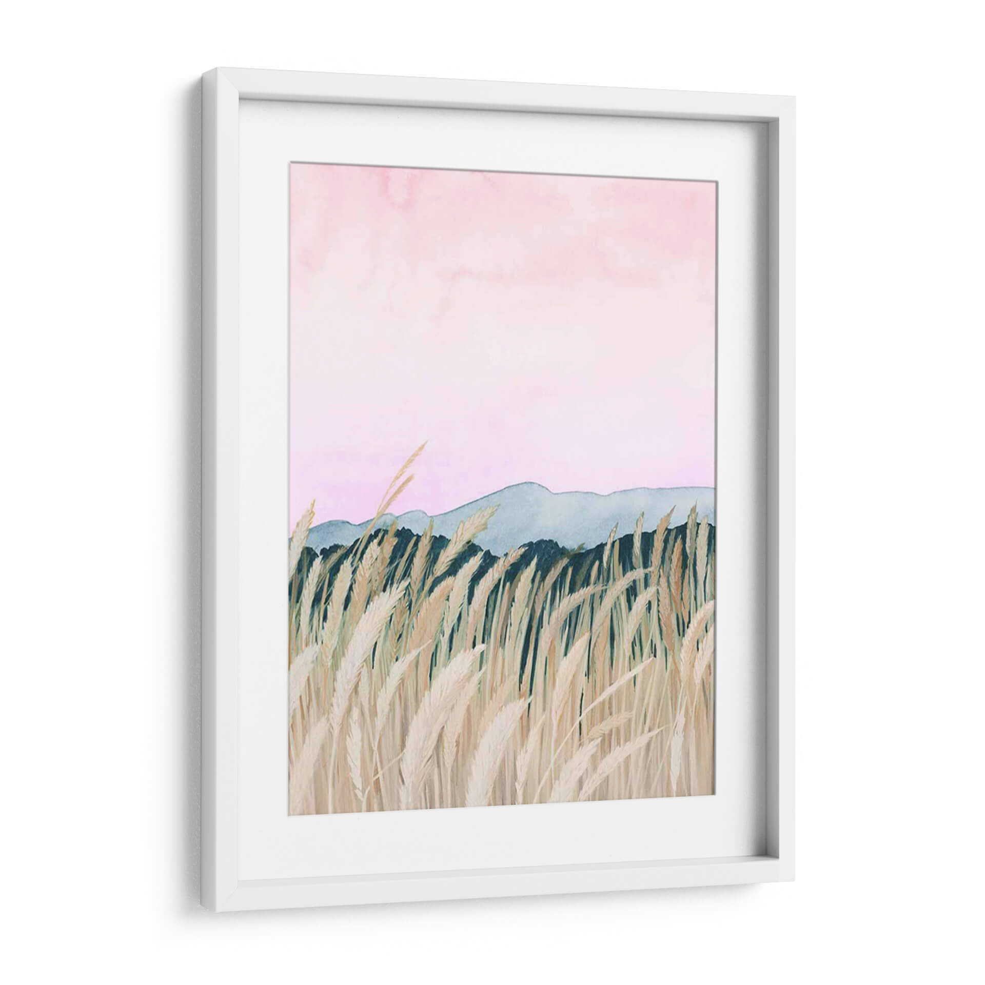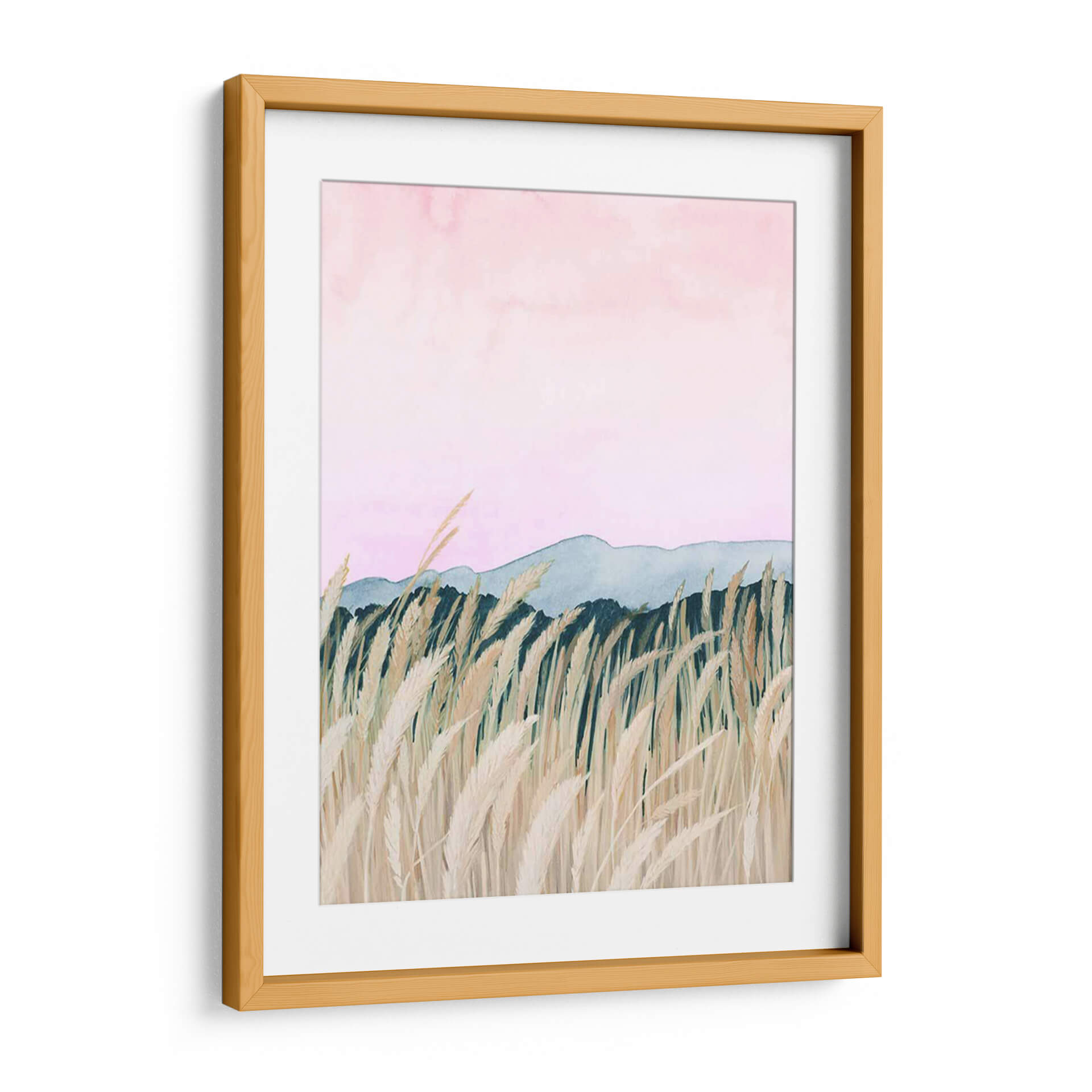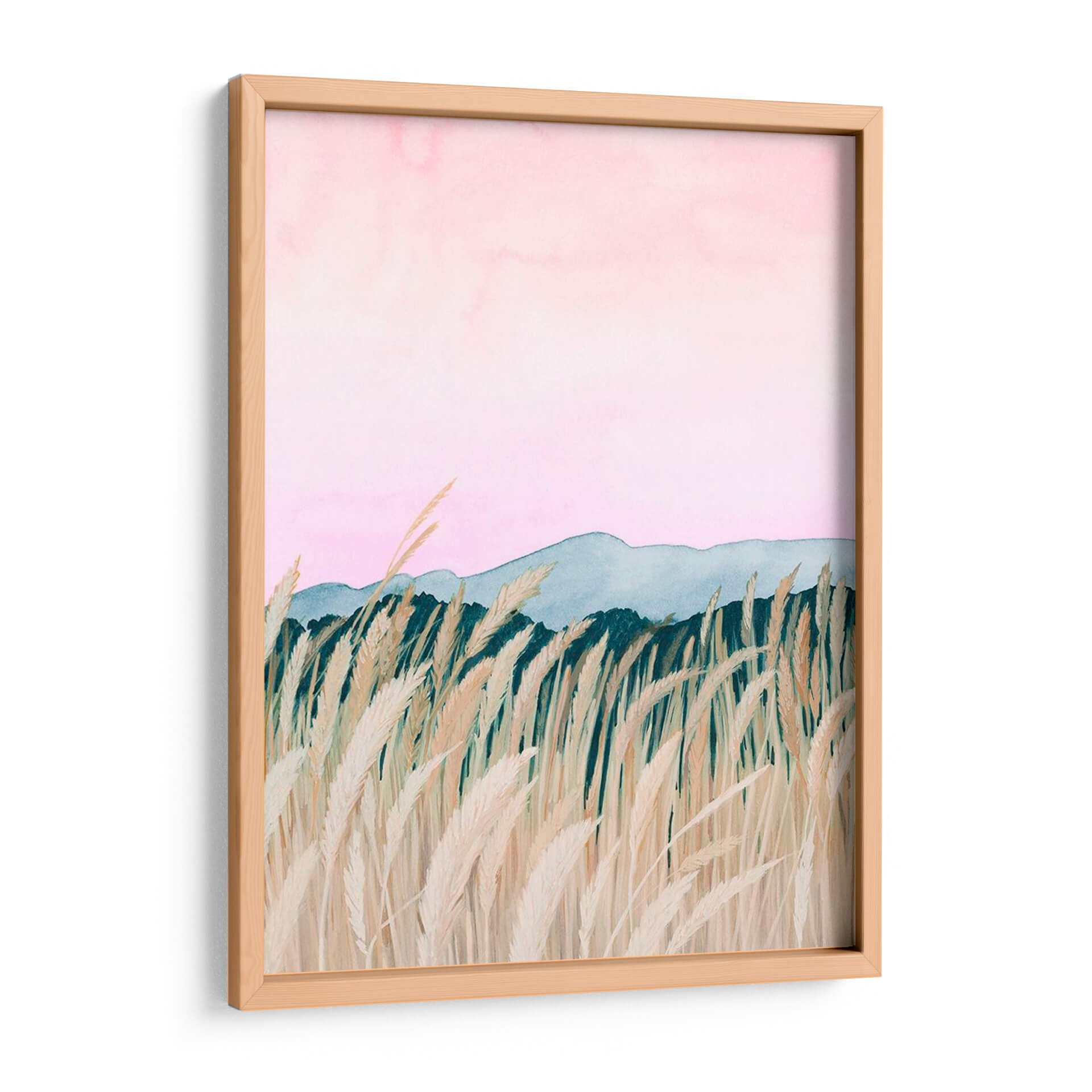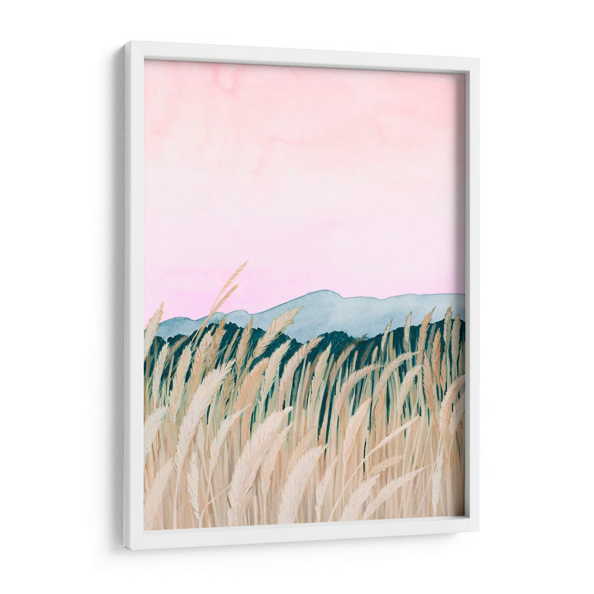 Sumérgete en la serena belleza de "Wheaten Dawn II" de Grace Popp, una obra de arte que captura la mágica transición del amanecer sobre un campo de trigo dorado. Esta pieza evoca una sensación de paz y tranquilidad, con su delicada paleta de colores que va desde suaves tonos rosados en el cielo hasta los tonos tierra y verdes profundos que delinean el horizonte. Las cañas de trigo, representadas con un detalle exquisito y un movimiento etéreo, se alzan majestuosamente en primer plano, sugiriendo la brisa suave de la mañana. Las montañas distantes, bañadas en una luz tenue, añaden profundidad y un toque de misterio a la composición. El estilo distintivo de Popp, que combina elementos del impresionismo con un toque contemporáneo, dota a esta obra de una atmósfera onírica y relajante. "Wheaten Dawn II" es el cuadro decorativo perfecto para infundir calma y sofisticación en tu hogar u oficina, ideal para crear un rincón de meditación o un punto focal inspirador en tu sala de estar. Deja que esta pieza te transporte a un momento de pura serenidad y renueve tu espacio con su belleza atemporal.