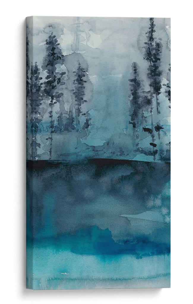 Sumérgete en la serenidad del invierno con "Winter Woods I", una obra de arte cautivadora de Chariklia Zarris. Este cuadro decorativo evoca la tranquilidad y la belleza etérea de un bosque nevado a través de pinceladas suaves y una paleta de colores enigmática. Los tonos profundos de azul, desde el índigo oscuro hasta el turquesa brillante, se fusionan para crear una atmósfera de paz y contemplación, capturando la esencia pura de un paisaje invernal bañado por la luz tenue. La técnica de acuarela, con sus transparencias y texturas fluidas, aporta una cualidad onírica a los árboles perennes, cuyas siluetas se alzan misteriosas entre la niebla. La composición, dividida sutilmente por una línea oscura que sugiere el suelo o un cuerpo de agua congelado, guía la mirada hacia la profundidad del bosque, invitando a la reflexión y al recogimiento. "Winter Woods I" es la pieza perfecta para añadir un toque de calma y sofisticación a tu hogar u oficina, transformando cualquier espacio en un santuario de tranquilidad y belleza natural. Ideal para salones, dormitorios o estudios que buscan una conexión con la naturaleza y una atmósfera de serenidad.