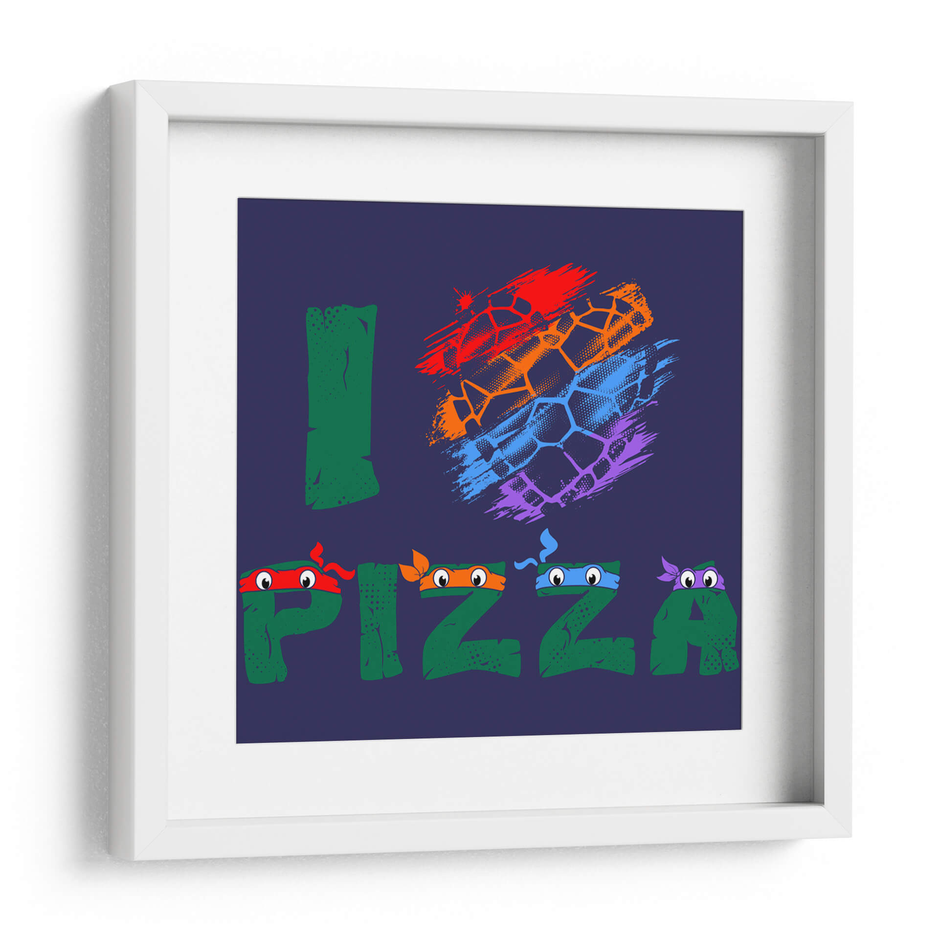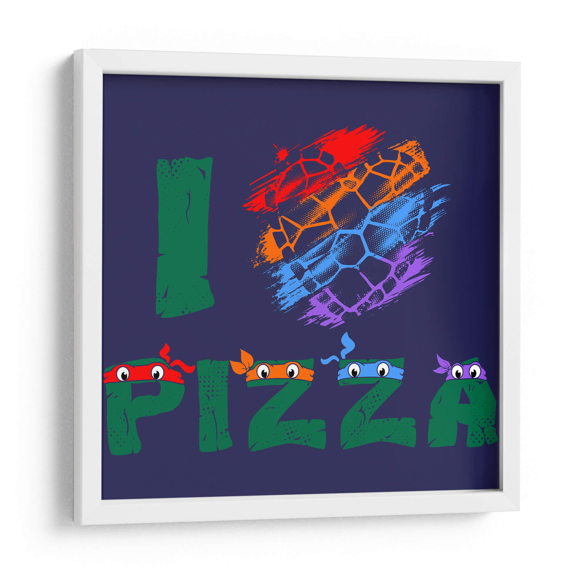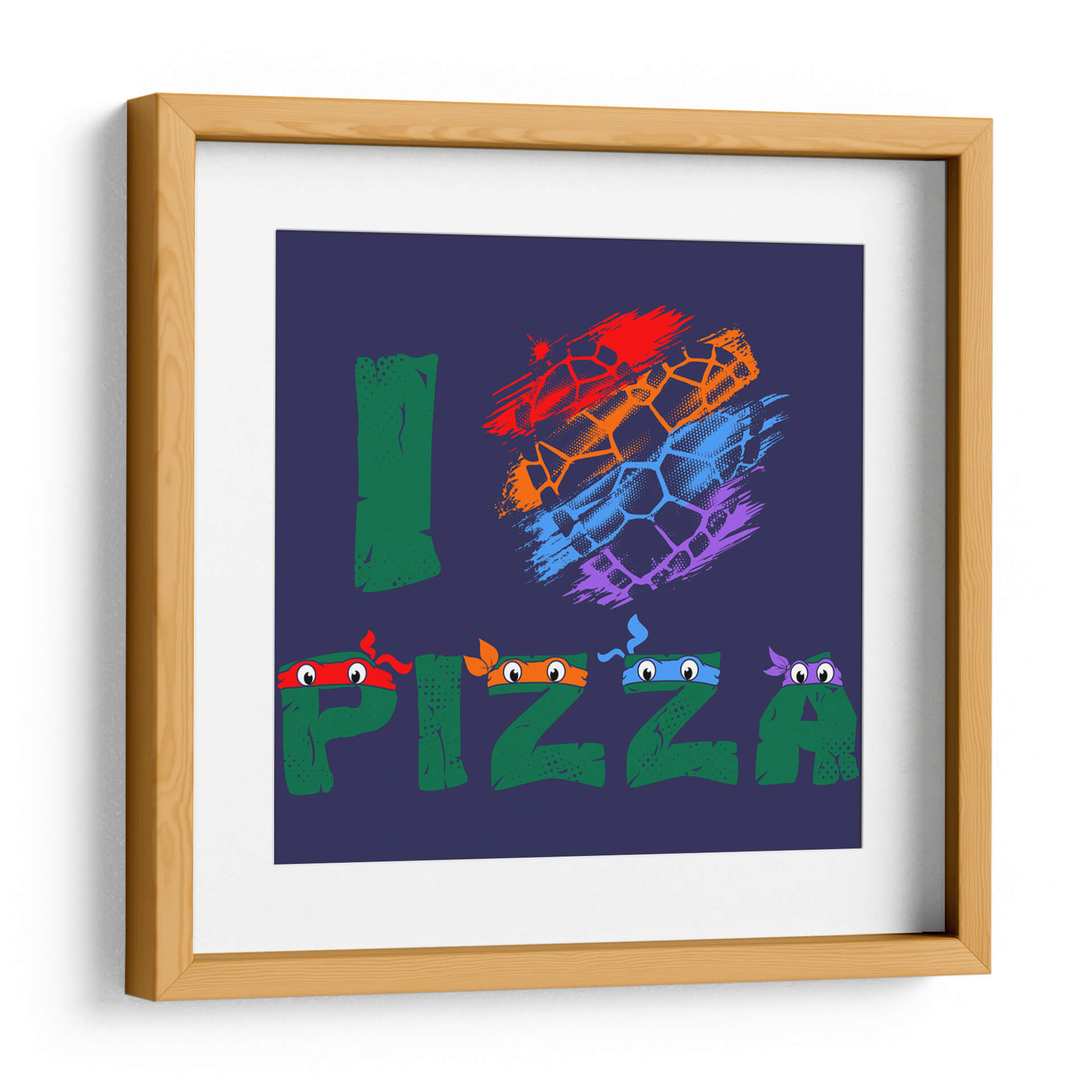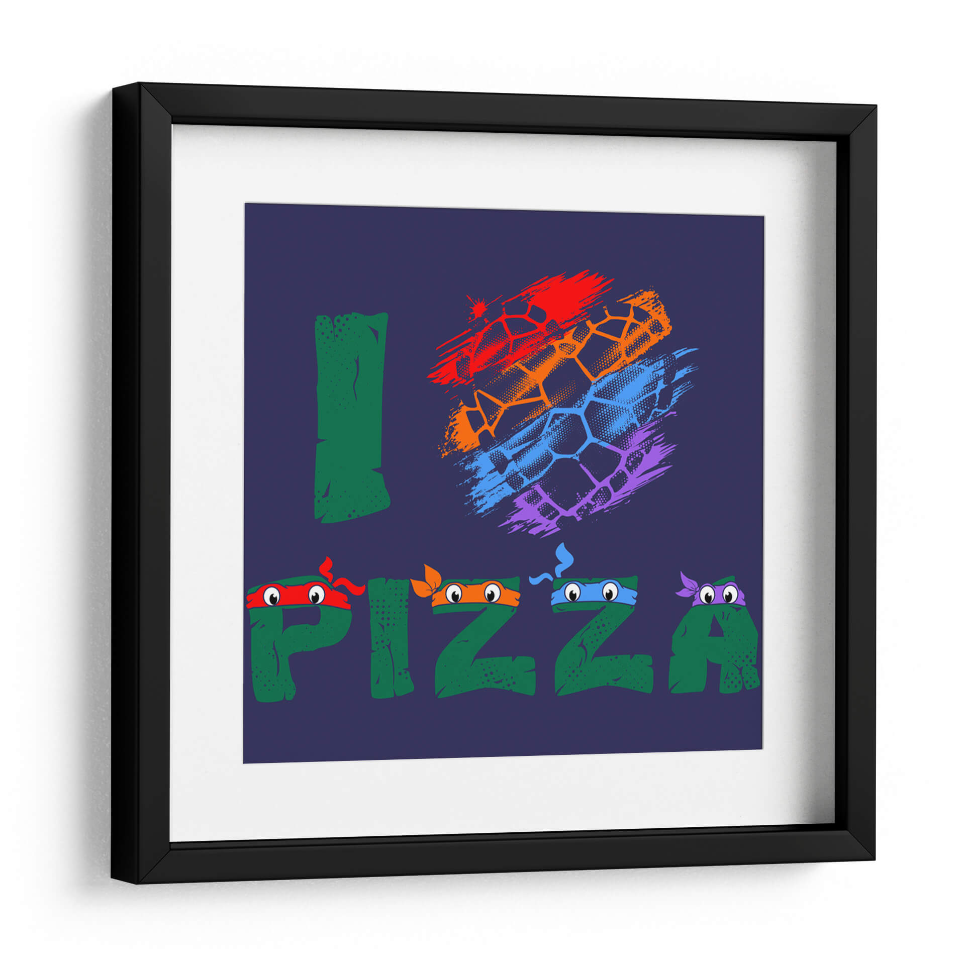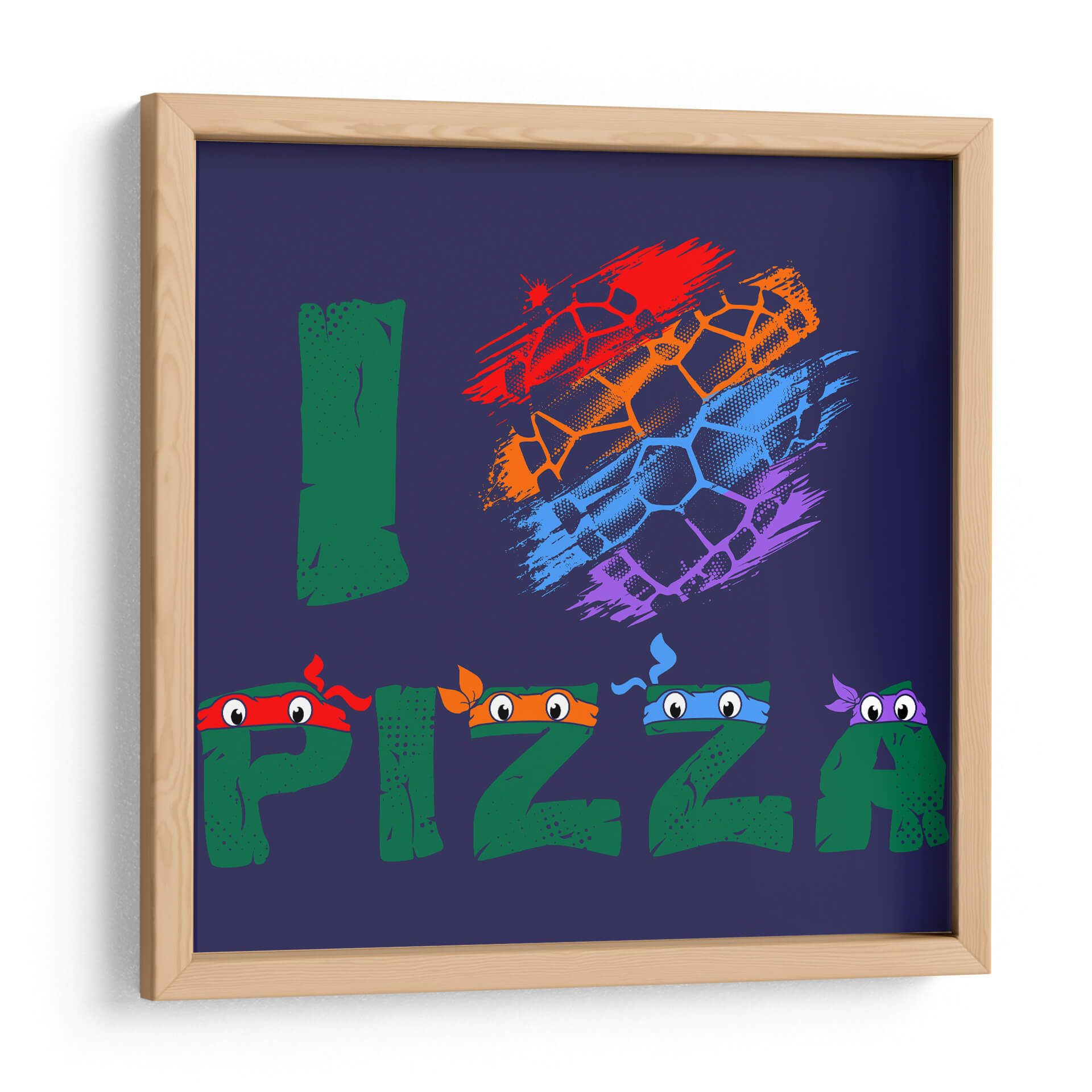 Celebra tu pasión por la pizza con esta vibrante y divertida obra de arte. Inspirada en la icónica frase "I Love Pizza", esta pieza fusiona elementos nostálgicos con un diseño contemporáneo. Las letras verdes, con una textura sutil y salpicaduras de puntos, forman la palabra "PIZZA", mientras que las cabezas de las Tortugas Ninja, cada una con su antifaz de color característico (rojo, naranja, azul y morado), se integran de manera ingeniosa en las vocales, añadiendo un toque de humor y aventura. El fondo azul marino profundo proporciona un contraste audaz que resalta los colores vivos de la obra. Sobre la palabra "PIZZA", una explosión de colores primarios y secundarios, con pinceladas enérgicas y un patrón de hexágonos estilizados, añade dinamismo y textura. Esta pieza es perfecta para cocinas, comedores o cualquier espacio donde se quiera inyectar personalidad y un espíritu lúdico. Ideal para los amantes de la cultura pop, los fanáticos de las Tortugas Ninja y cualquier persona que disfrute de una buena pizza, este cuadro decorativo es un punto focal que genera conversación y alegría. Añade un toque de color y diversión a tu decoración con este diseño único y lleno de energía.