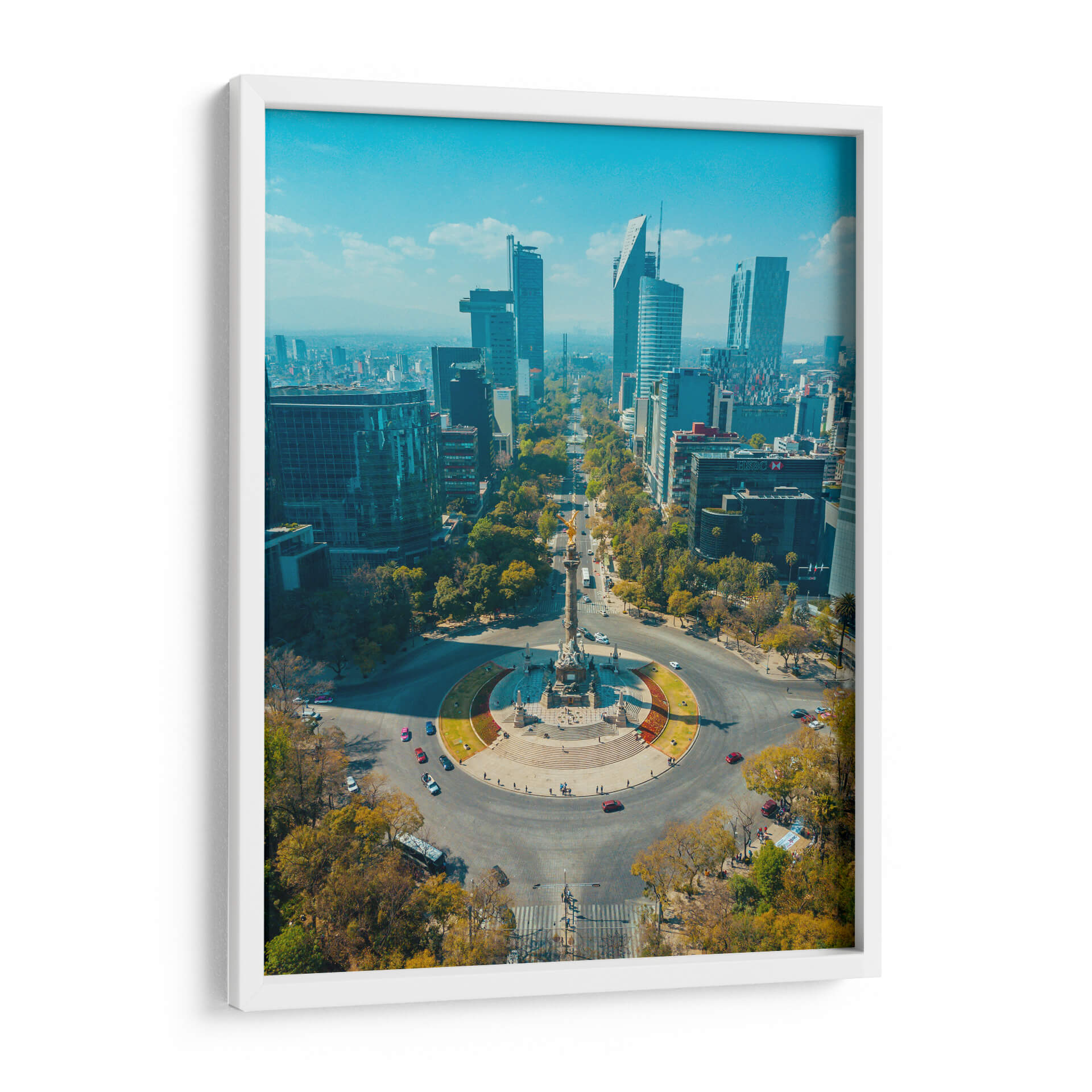 Capture la majestuosidad de la Ciudad de México con este impresionante cuadro decorativo del Ángel de la Independencia 2. Desde una perspectiva aérea, la obra revela la icónica glorieta con el majestuoso Ángel en su centro, rodeada por la vibrante energía de una metrópolis moderna. Los rascacielos se alzan imponentes contra un cielo azul claro, creando un contraste fascinante entre la arquitectura histórica y la contemporánea. La paleta de colores, dominada por tonos naturales y el azul cielo, evoca una sensación de amplitud y vitalidad, mientras que los detalles de los árboles y el tráfico fluyendo en la rotonda añaden un dinamismo palpable. Este cuadro es una oda a la cultura urbana y la historia, ideal para quienes buscan infundir a su hogar u oficina un toque de sofisticación y un recordatorio de la belleza arquitectónica de la capital mexicana. Añada un punto focal lleno de carácter y una narrativa visual cautivadora a cualquier espacio, desde una sala de estar moderna hasta un estudio profesional, celebrando el espíritu de la ciudad.