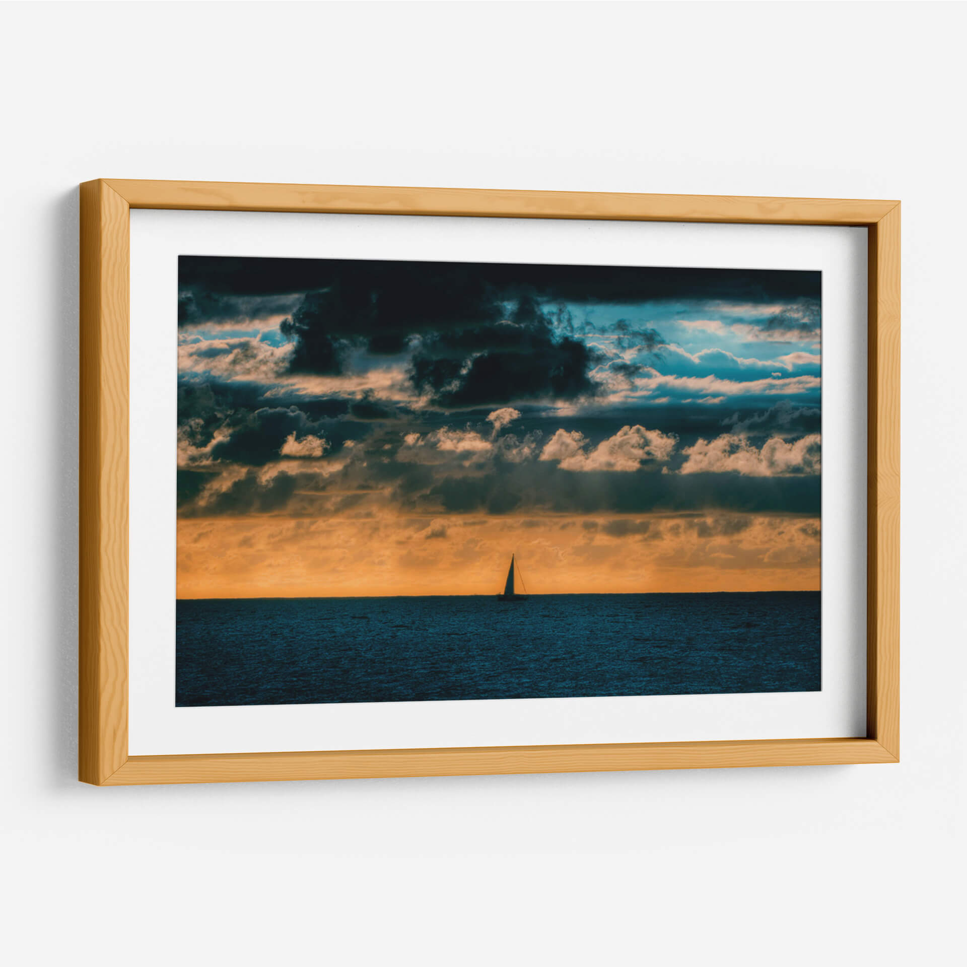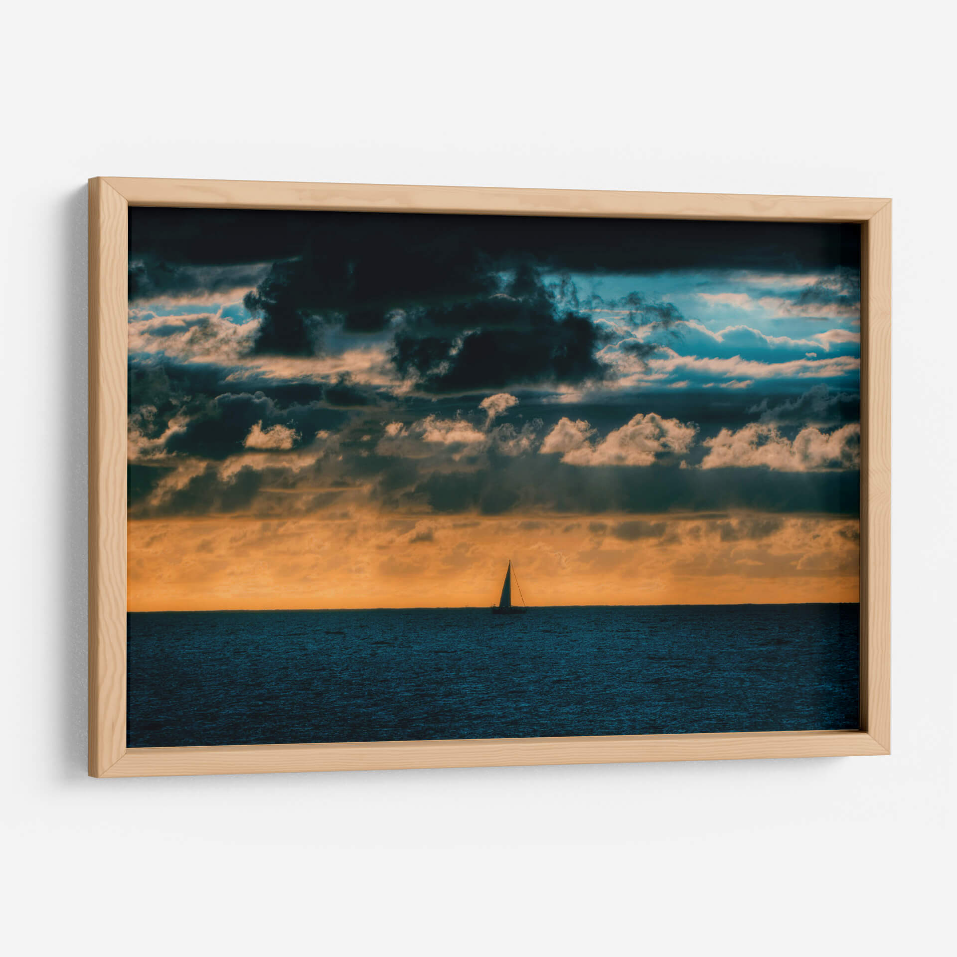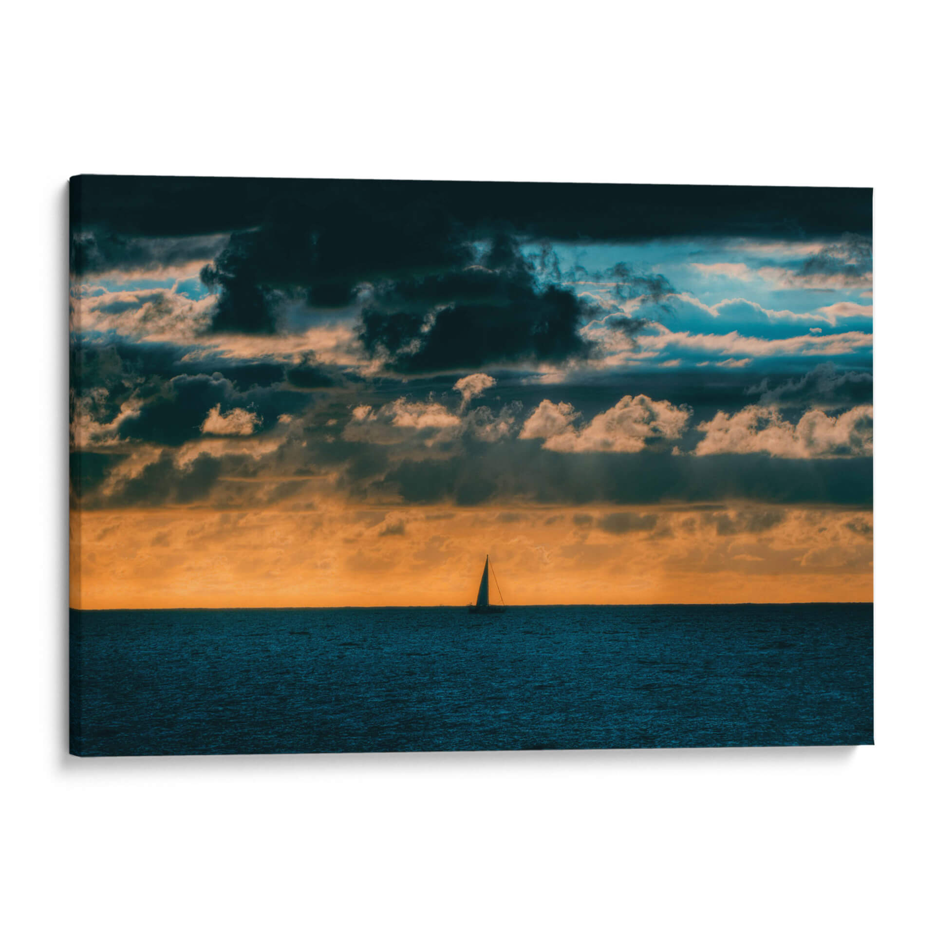 Adéntrate en la serenidad del océano con este evocador cuadro decorativo 'Barquito en el horizonte a color'. La obra presenta una vista panorámica de un mar profundo y oscuro, contrastando dramáticamente con un cielo teñido de cálidos tonos anaranjados y dorados, donde las nubes tamizan la luz de manera cautivadora. En el centro, un solitario velero navega hacia el horizonte, simbolizando la travesía, la esperanza y la paz interior. La composición minimalista, con la línea del horizonte dividiendo limpiamente el mar y el cielo, crea una sensación de amplitud y profundidad. La paleta de colores, rica en azules intensos y naranjas vibrantes, evoca una atmósfera de calma y reflexión, ideal para cualquier espacio que necesite un toque de sosiego y contemplación. Este cuadro es perfecto para transformar tu sala de estar en un oasis de tranquilidad, dar serenidad a tu dormitorio, o añadir un punto de interés inspirador a tu oficina. Su diseño atemporal y su mensaje sutil lo convierten en una adición versátil a cualquier estilo de decoración, desde la moderna hasta la costera.