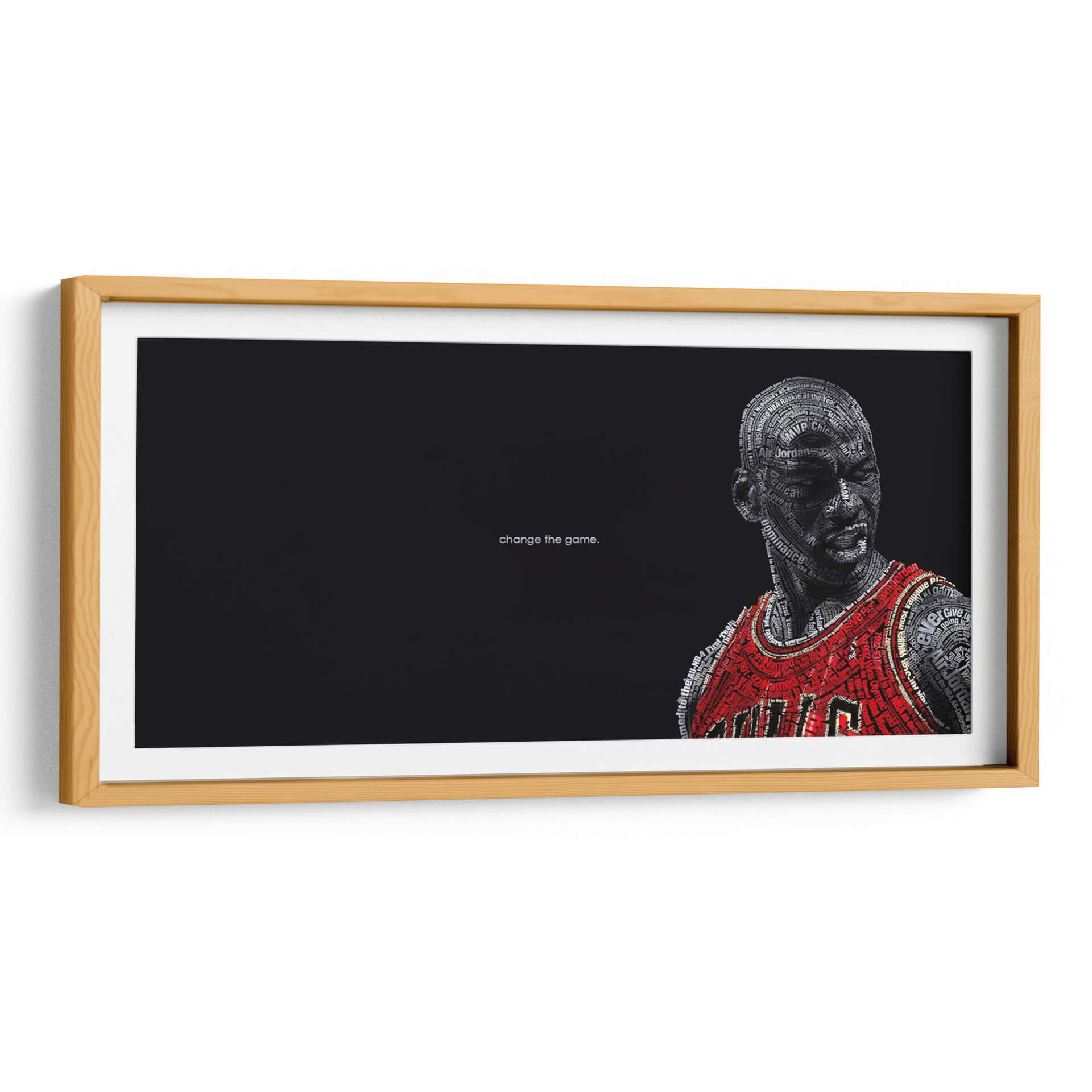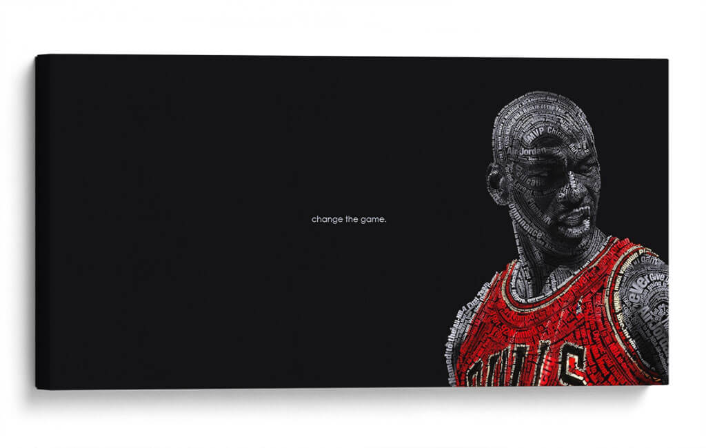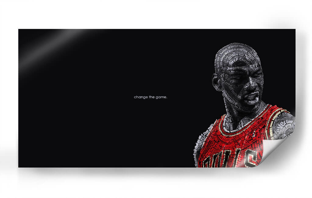 Transforma tu espacio con este impactante cuadro decorativo que rinde homenaje a la leyenda del baloncesto, Michael Jordan, a través de un innovador diseño tipográfico. La obra, titulada 'Change the game', presenta una detallada composición donde el rostro y la icónica camiseta de los Chicago Bulls de Jordan están formados por palabras y frases que evocan su carrera, sus logros y su impacto en el deporte. Los tonos predominantemente grises y negros del rostro contrastan con el vibrante rojo de la camiseta, creando un efecto visual potente y moderno. La frase 'change the game' se presenta sutilmente en el fondo oscuro, reforzando el mensaje de inspiración y superación. Este cuadro es perfecto para añadir un toque de dinamismo y carácter a cualquier sala de estar, oficina o gimnasio. Ideal para aficionados al baloncesto, coleccionistas de arte deportivo o cualquiera que admire la dedicación y el talento. Su estilo de arte digital y tipográfico lo convierte en una pieza única que dialoga con la decoración contemporánea, invitando a la reflexión sobre la excelencia y la perseverancia. Un regalo inolvidable para los amantes del deporte y el arte.