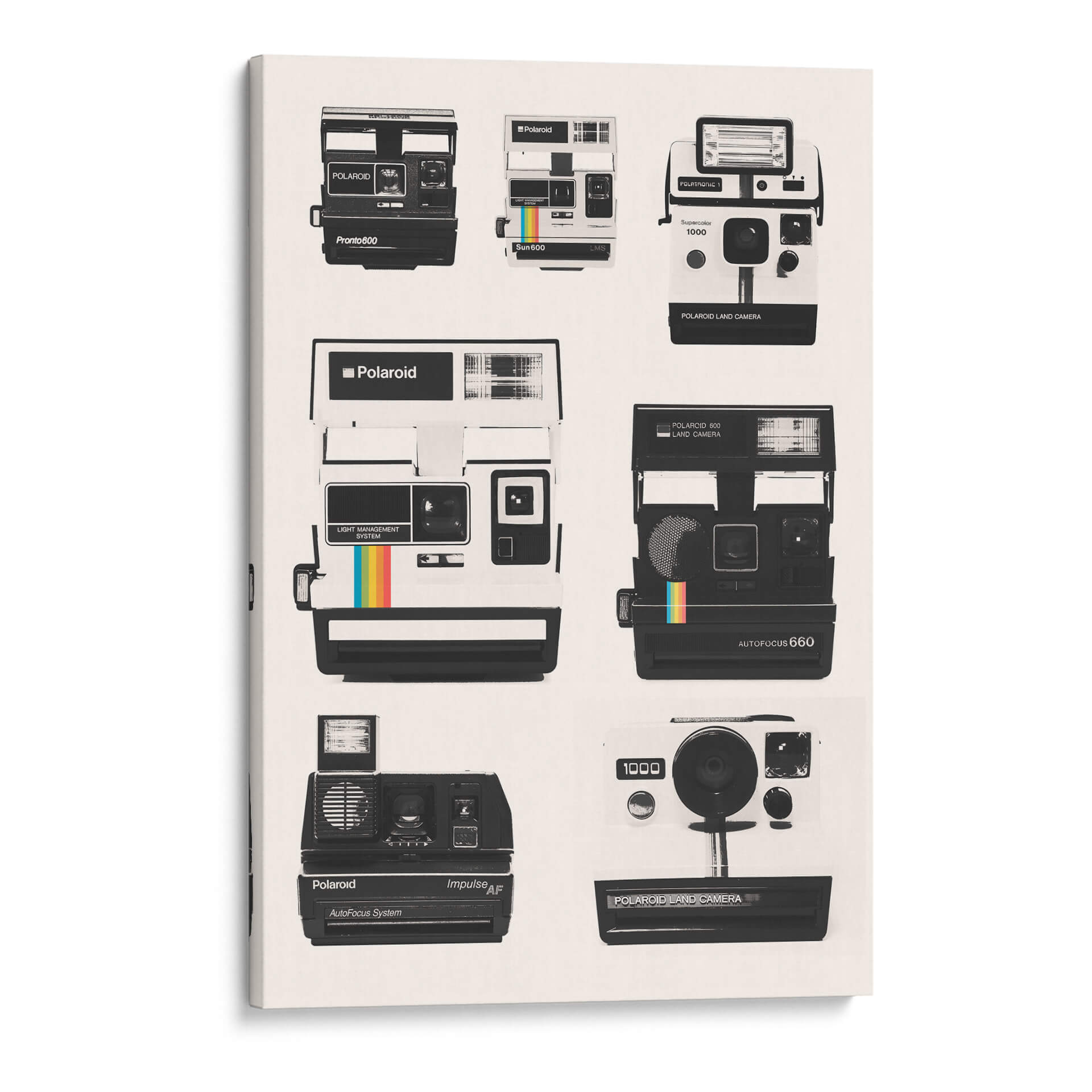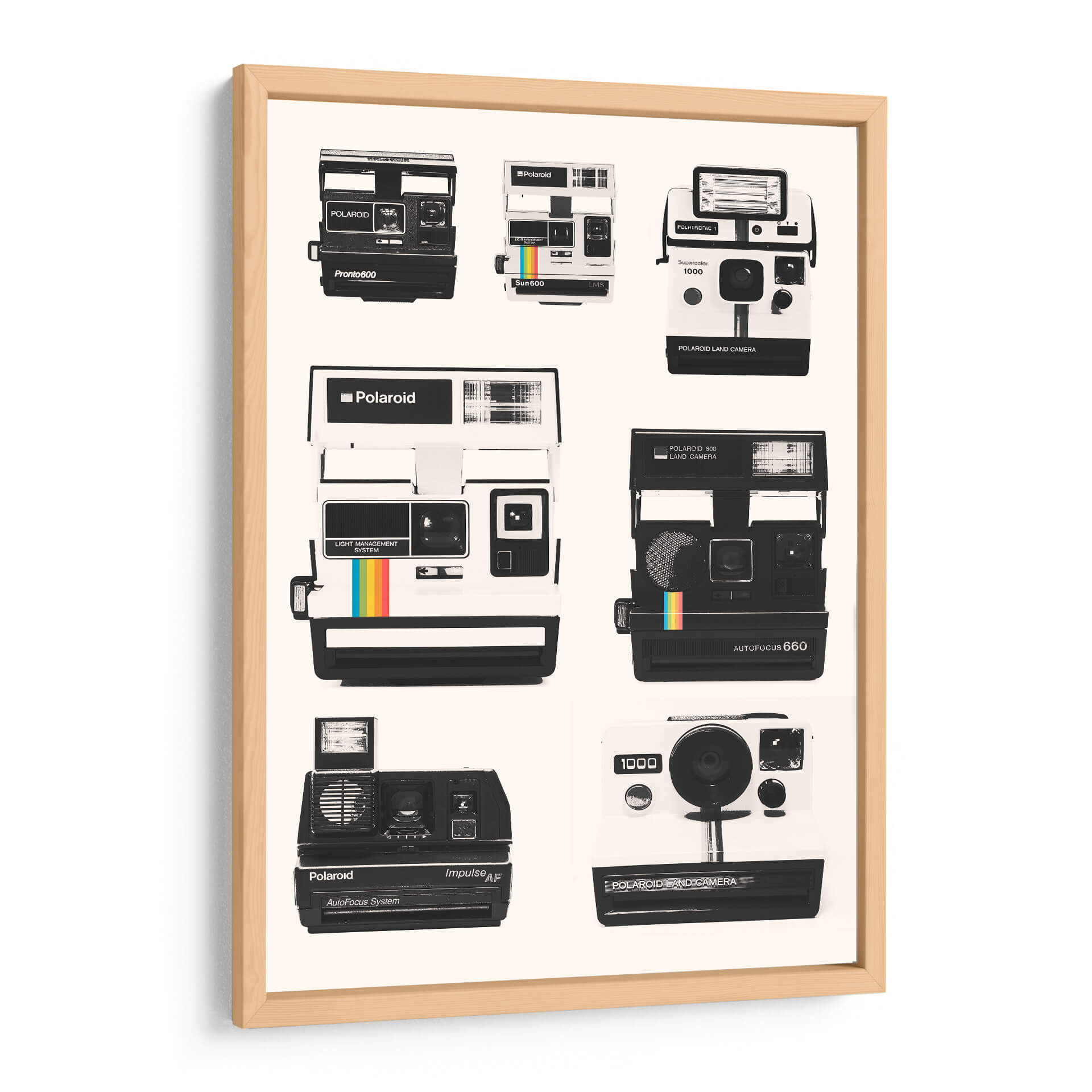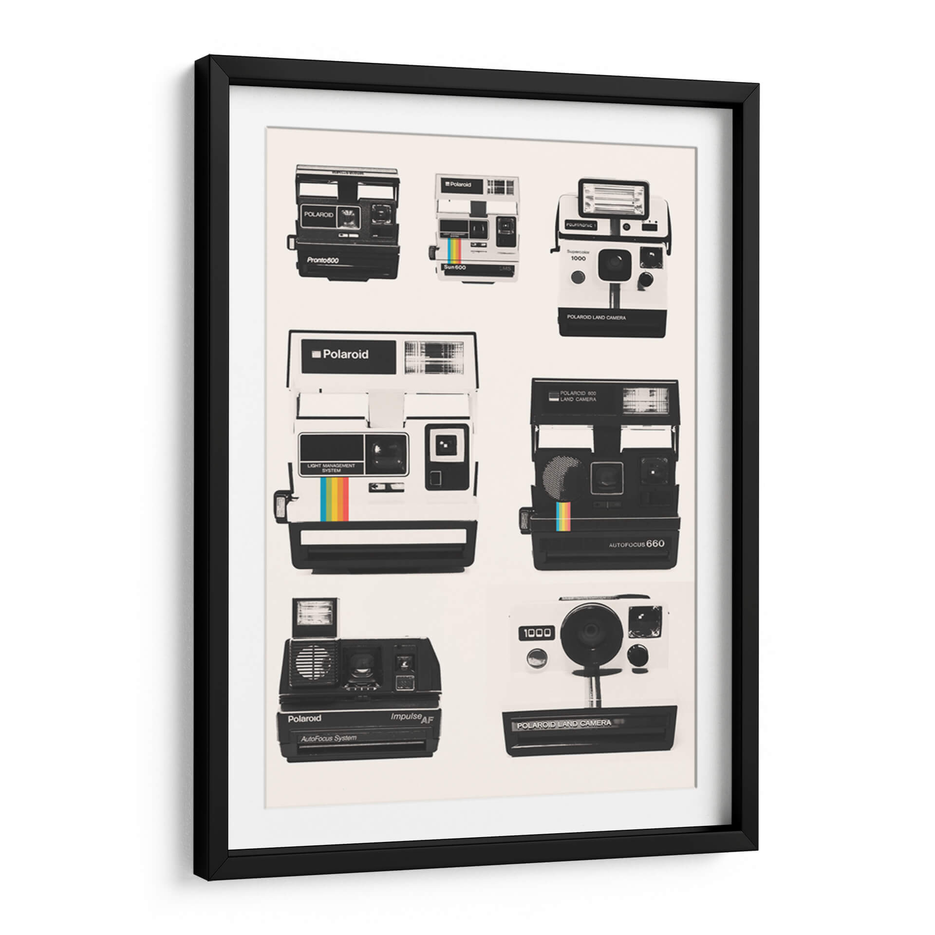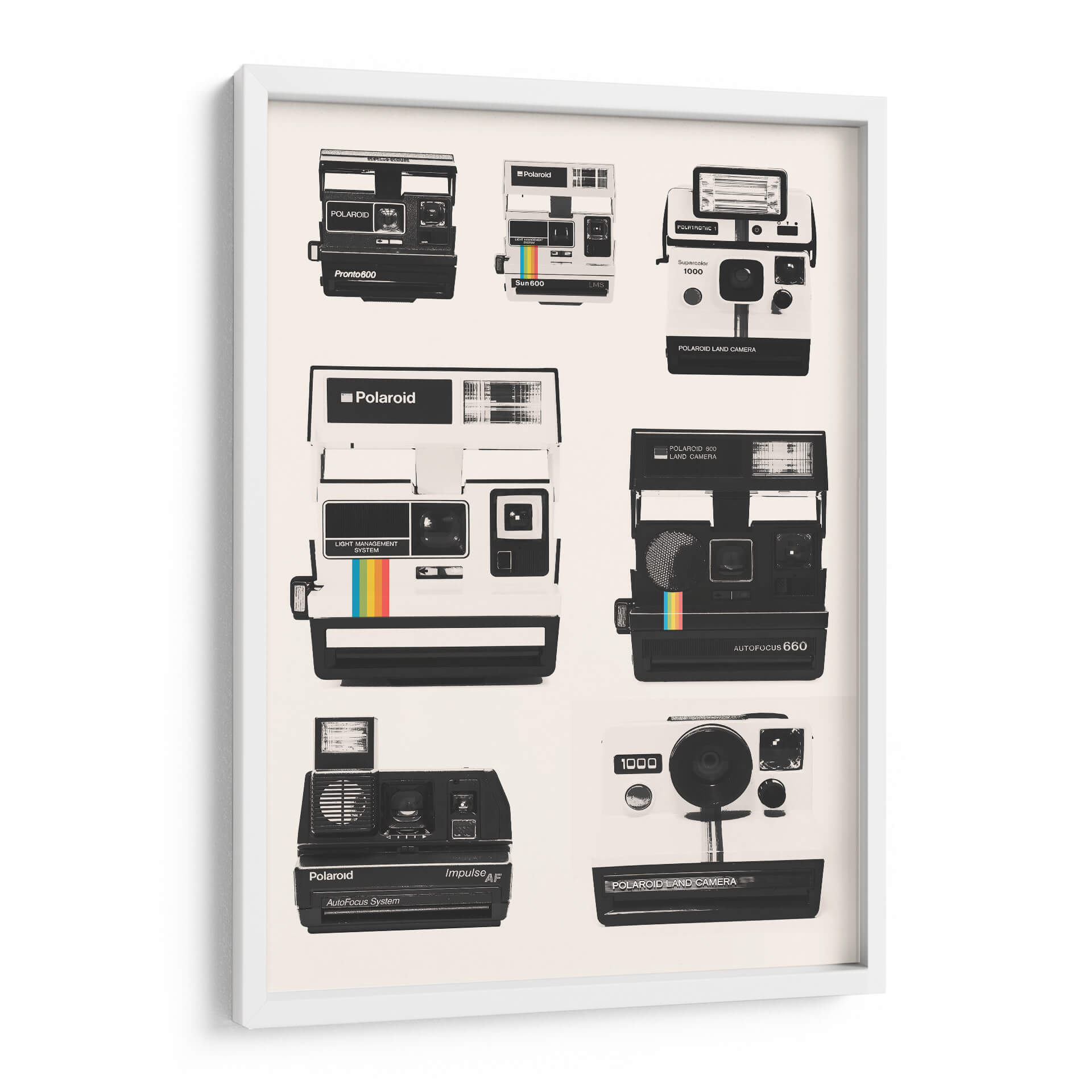 Sumérgete en la nostalgia y la icónica estética de la fotografía instantánea con esta cautivadora obra de arte digital que rinde homenaje a la "Colección de cámaras instantáneas" de Florent Bodart. Cada detalle de estas legendarias cámaras Polaroid, desde el clásico logo hasta los distintivos elementos de diseño, se presenta con una claridad y un estilo gráfico que evoca una era pasada. La composición, organizada de manera limpia y simétrica, presenta una variedad de modelos, cada uno con su propio carácter y época. Predominan los tonos neutros y el contraste entre blanco, negro y los sutiles toques de color, como las icónicas rayas arcoíris, creando una atmósfera retro y sofisticada. Esta pieza es ideal para amantes de la fotografía, diseñadores y cualquiera que aprecie el diseño industrial clásico y la cultura pop. Imagina este cuadro decorativo aportando un toque de historia visual y conversación a tu estudio, oficina o sala de estar. Es una celebración del ingenio y la magia de capturar momentos al instante, perfecta para quienes buscan añadir personalidad y un estilo único a su decoración.