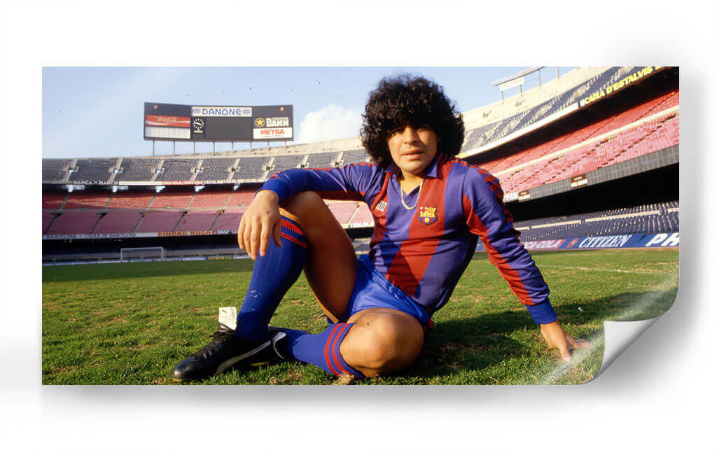 Captura la esencia de un momento icónico con este cuadro decorativo que inmortaliza a Diego Maradona en su juventud, posando en el césped del Camp Nou. La obra, titulada "Diego a los 23 en el Barça", transmite una energía vibrante y un carisma innegable, características que definieron la leyenda del fútbol. Los colores característicos del FC Barcelona, el azulgrana, dominan la vestimenta del jugador, creando un contraste dinámico con el verde del campo y las gradas del estadio que se vislumbran al fondo. La fotografía, con un tratamiento que realza la atmósfera nostálgica y deportiva, es perfecta para cualquier aficionado al fútbol o coleccionista de memorabilia deportiva. Ideal para ubicar en salas de estar, estudios u oficinas, este cuadro decorativo aporta un toque de historia, pasión y estilo a cualquier espacio. Su composición centrada en la figura del astro argentino invita a la contemplación de su talento y su impacto en el deporte rey. Añade una pieza de conversación y un símbolo de grandeza a tu decoración con esta impactante representación visual. Este cuadro decorativo es más que una imagen; es un tributo a uno de los futbolistas más grandes de todos los tiempos en una etapa crucial de su carrera.