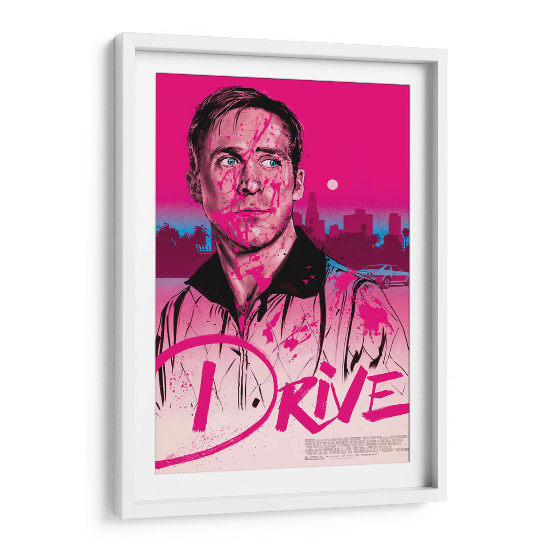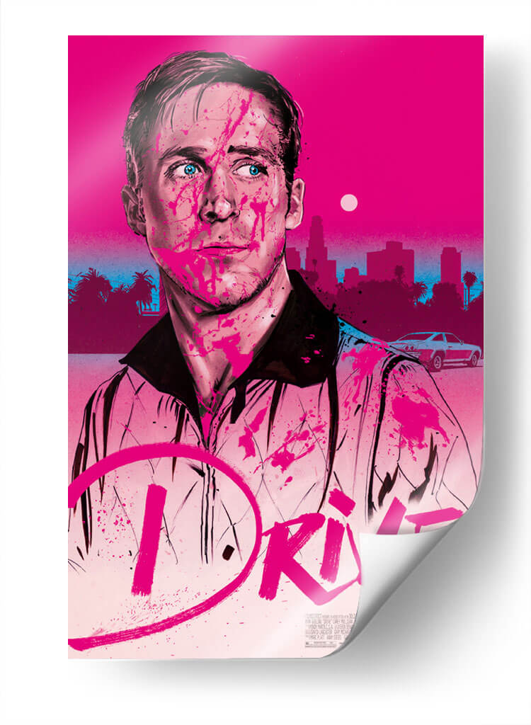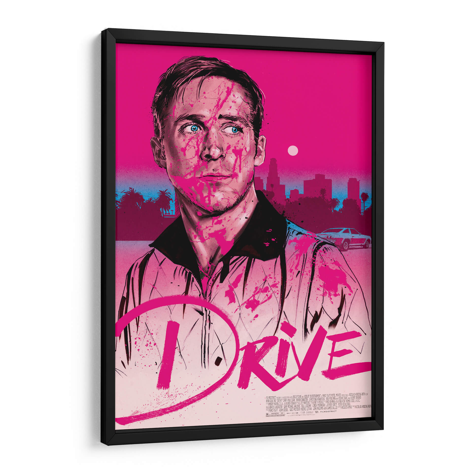 Sumérgete en la intensidad y el estilo cinematográfico con esta impactante obra de arte titulada "Drive". Esta pieza visualmente cautivadora presenta un retrato dramático de un hombre con una paleta de colores vibrantes y audaces, dominada por intensos rosas y azules eléctricos, contrastando con detalles en blanco y negro. La composición, con salpicaduras de pintura rosa que añaden un toque de cruda energía, evoca una atmósfera de misterio, velocidad y un aire de rebeldía moderna. Detrás del sujeto, se vislumbra una silueta urbana de Los Ángeles al anochecer, con palmeras y la silueta de un coche clásico, transportándote directamente a las icónicas escenas de la película. El estilo artístico, que combina elementos de retrato fotorrealista con toques expresionistas y un diseño gráfico audaz, la convierte en una pieza de conversación ideal. Perfecta para los amantes del cine, la cultura pop y aquellos que buscan añadir un toque de sofisticación y dramatismo a su hogar u oficina. Esta lámina decorativa en lienzo es ideal para salas de estar modernas, estudios o incluso como un punto focal en un espacio más industrial, aportando una dosis de color y carácter inconfundible.