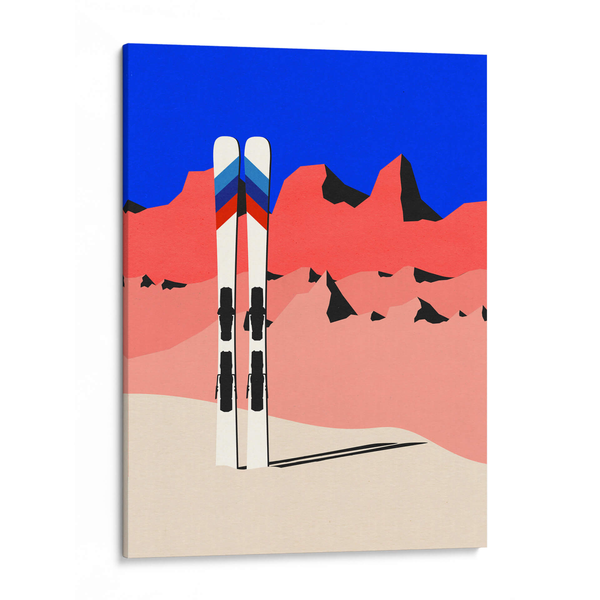 Captura la esencia de la aventura y la serenidad de la montaña con "Esquí Alpino", una obra de arte contemporáneo que evoca la majestuosidad de los picos nevados y la emoción del deporte invernal. Esta pieza se caracteriza por su audaz paleta de colores, donde vibrantes tonos de coral y un profundo azul celeste contrastan con las siluetas nítidas de las montañas y el primer plano en un cálido tono beige. Los esquís, presentados de manera estilizada y casi icónica, son el punto focal, sugiriendo movimiento y la promesa de descensos vertiginosos. El estilo gráfico y minimalista de Rosi Feist, con sus formas geométricas y planos de color definidos, otorga a esta obra una modernidad que encaja perfectamente en ambientes contemporáneos, ya sean salones, estudios u oficinas. "Esquí Alpino" no es solo una representación de un paisaje, sino una invitación a sentir la energía del invierno y la libertad de la naturaleza. Ideal para amantes de los deportes de invierno y para quienes buscan añadir un toque de color y dinamismo a su decoración, este cuadro decorativo es un recordatorio visual de la belleza escénica y la aventura que nos espera al aire libre. Su diseño único y su atmósfera evocadora lo convierten en una adición inspiradora a cualquier espacio que busque carácter y estilo.