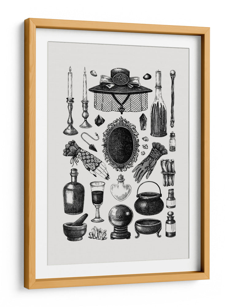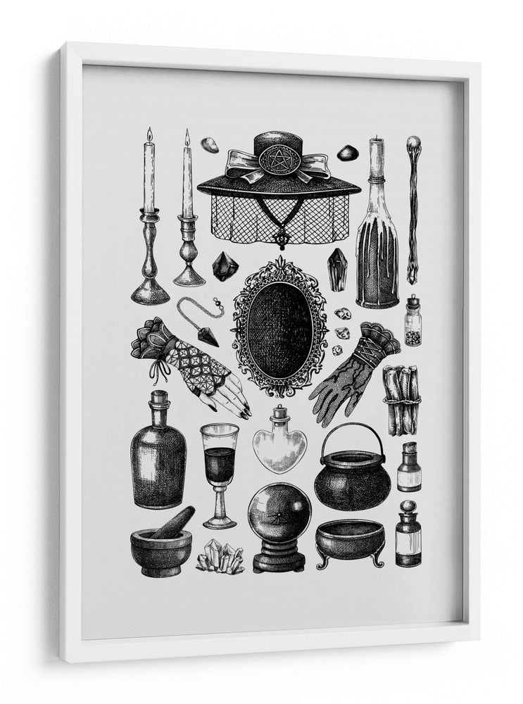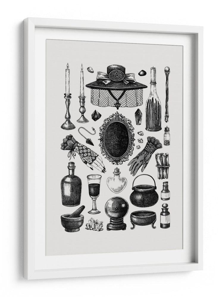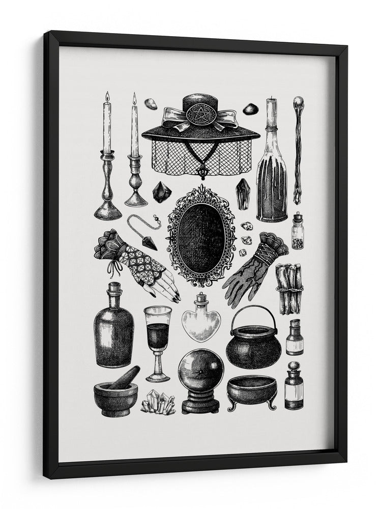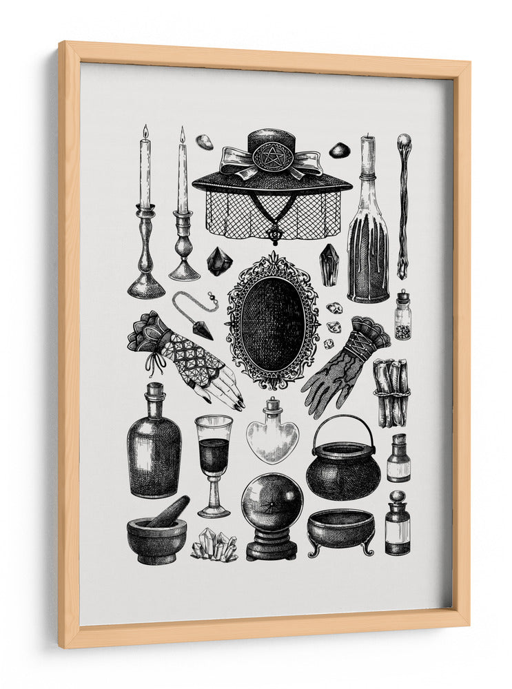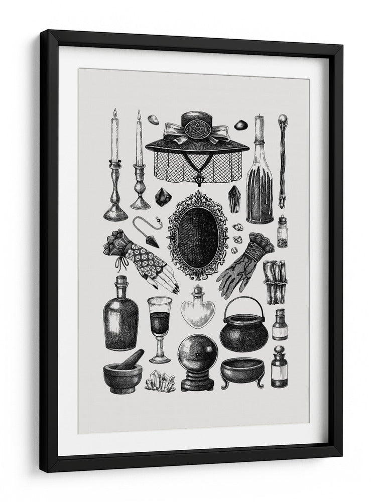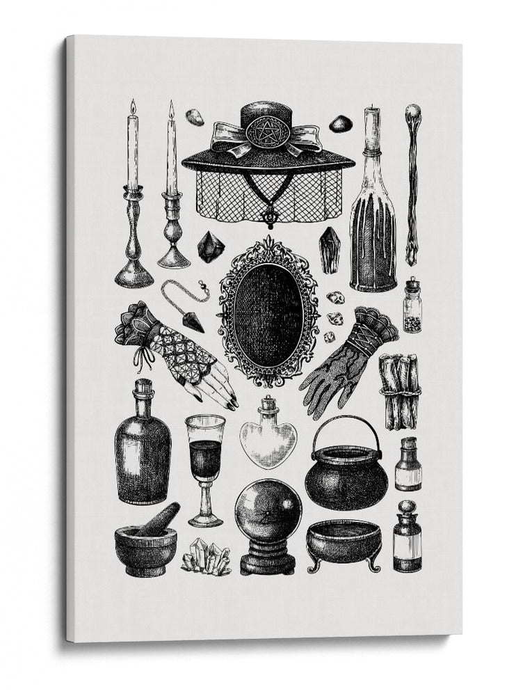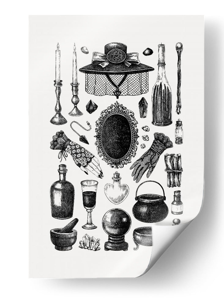 Sumérgete en un mundo de misterio y encanto con este cautivador cuadro decorativo inspirado en gráficos retro de brujas. La obra de Yevheniia Lytvynovych presenta una detallada y evocadora composición de elementos esotéricos y herramientas de hechicería, ejecutada con un estilo de grabado clásico que evoca una sensación de nostalgia y magia antigua. La paleta monocromática en blanco y negro, con sutiles matices de gris, resalta la intrincada linealidad y el sombreado de cada elemento, desde las velas parpadeantes y los cristales místicos hasta las calderas humeantes y los frascos de pociones. Cada objeto está dibujado con un nivel de detalle excepcional, creando una atmósfera de intriga y sabiduría oculta. Este cuadro decorativo es perfecto para añadir un toque de misticismo a cualquier espacio, ya sea una sala de estar, un estudio o un rincón dedicado a la meditación. Su diseño versátil y su temática única lo convierten en una pieza de conversación ideal para aquellos que aprecian lo oculto y la estética vintage. Una adición fascinante a tu colección de arte de pared que invita a la contemplación y despierta la imaginación.