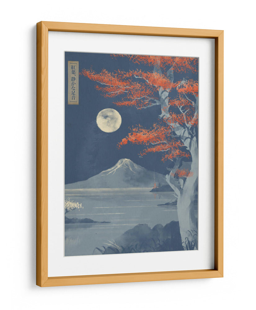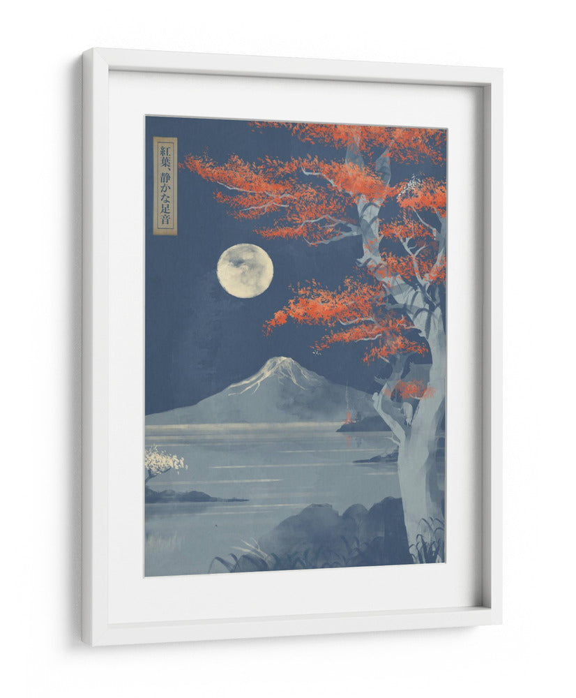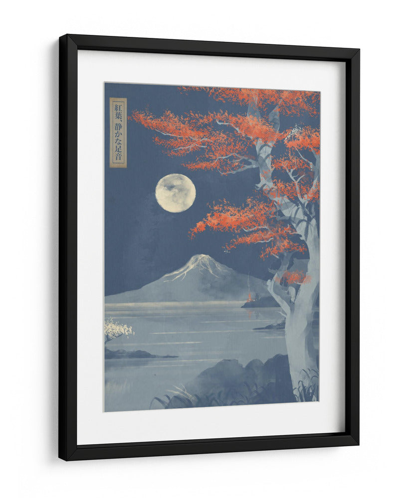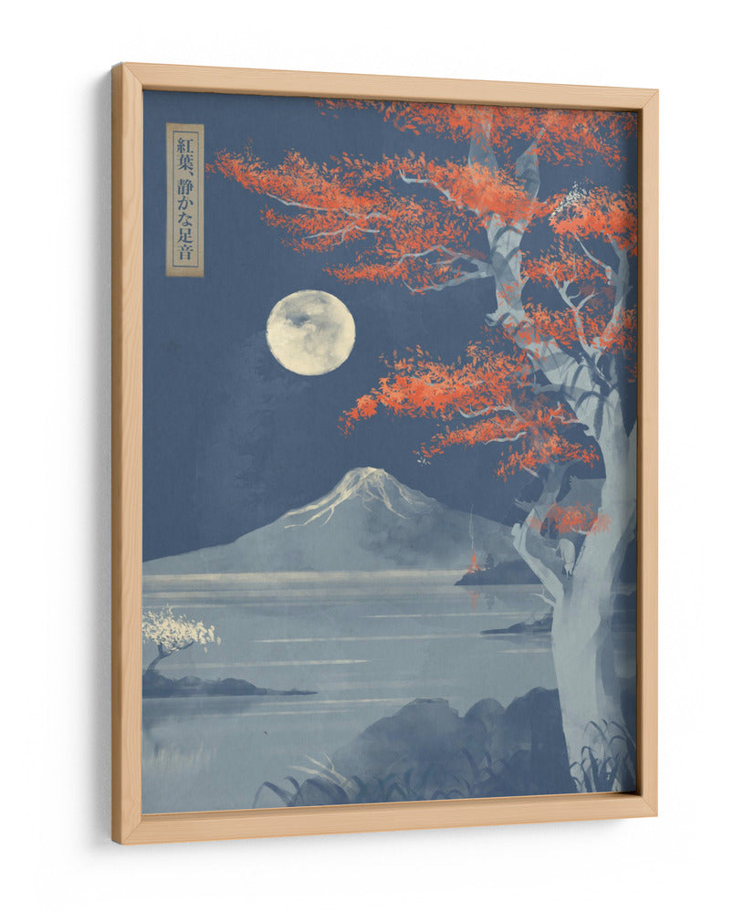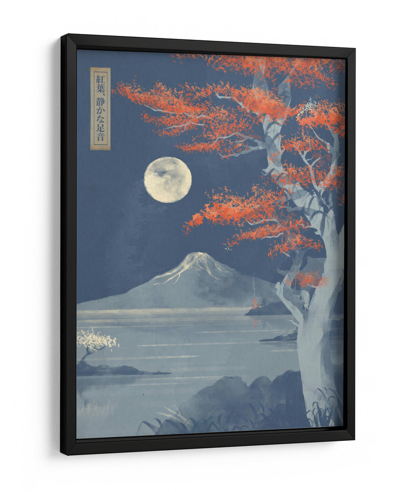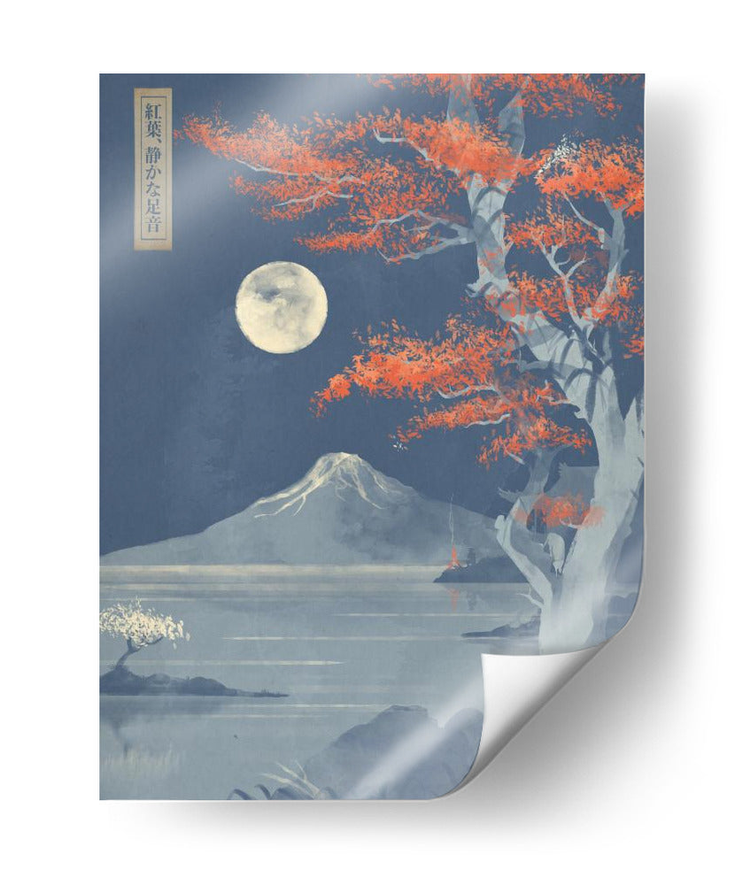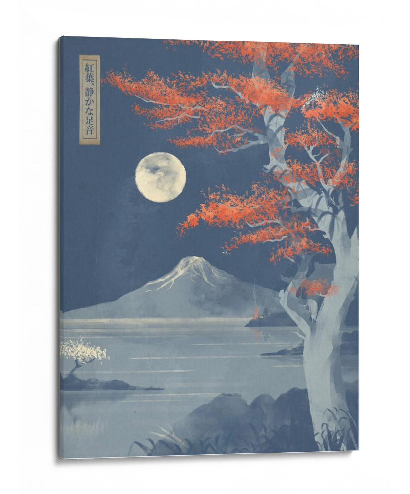 Sumérgete en la serenidad de "Hojas Carmesí, Pasos Silenciosos", una obra de arte digital que evoca la mística de un paisaje nocturno japonés bajo la luz de la luna llena. El cuadro decorativo presenta un imponente árbol con vibrantes hojas carmesí que contrastan con el cielo estrellado y profundo azul, creando un punto focal de intensa belleza. A lo lejos, la silueta majestuosa de una montaña nevada se alza sobre un lago tranquilo, cuyas aguas reflejan la pálida luz lunar. El estilo, inspirado en el arte ukiyo-e pero con un toque contemporáneo, combina trazos delicados con una paleta de colores audaz pero armónica. La composición cuidadosa guía la mirada a través de la escena, invitando a la contemplación y la paz interior. "Hojas Carmesí, Pasos Silenciosos" es una pieza evocadora que transformará cualquier espacio, aportando un toque de misterio, calma y elegancia atemporal. Ideal para salones modernos, dormitorios que buscan un santuario de tranquilidad o estudios que anhelan inspiración. Añade esta pieza única a tu colección y deja que su atmósfera cautivadora enriquezca tu hogar.