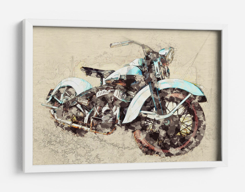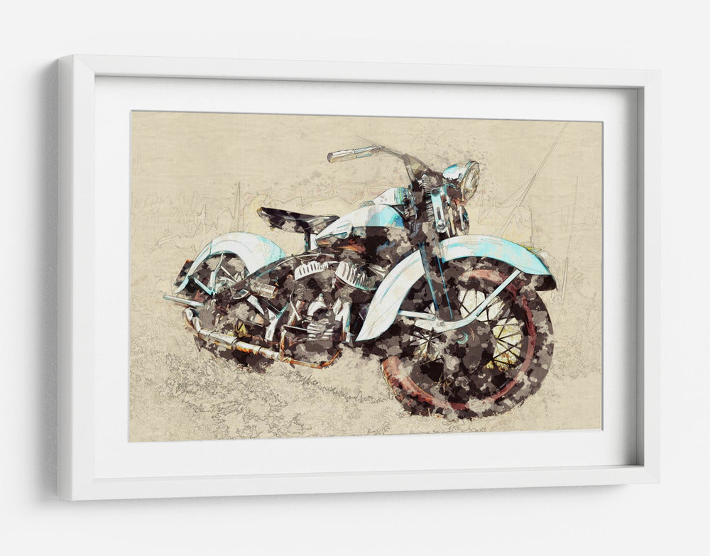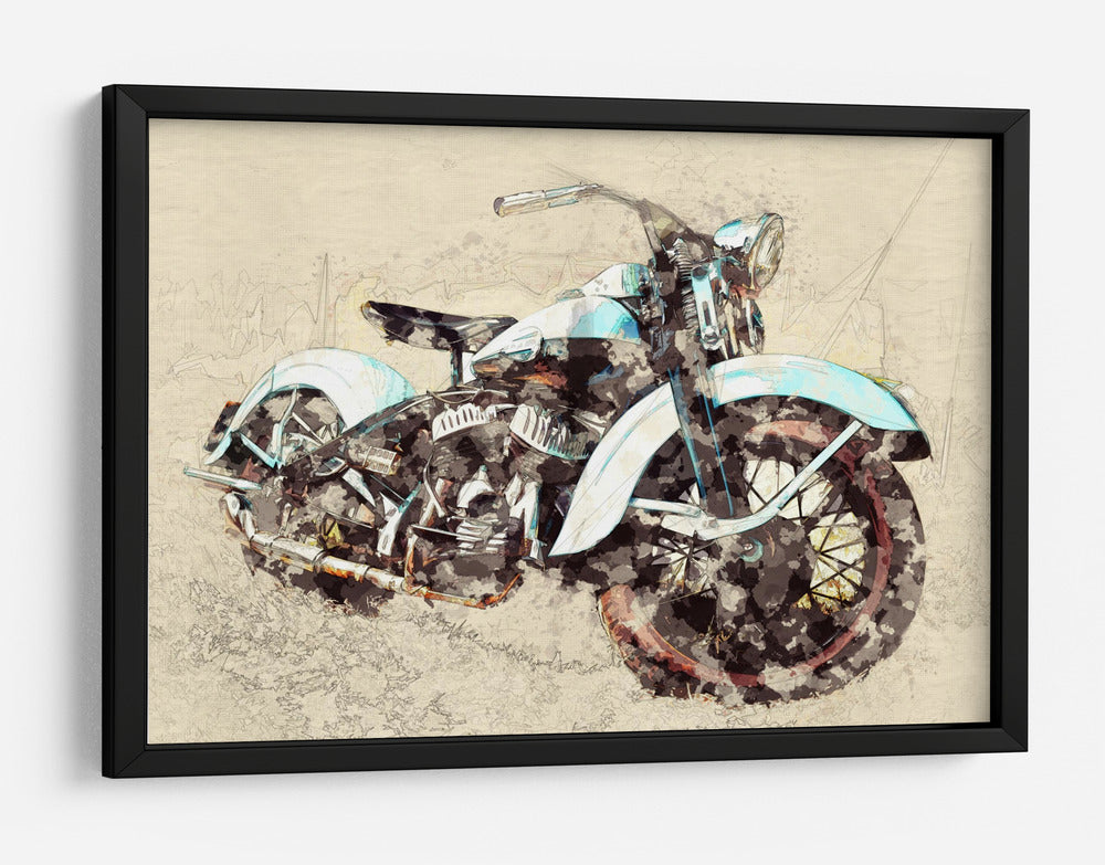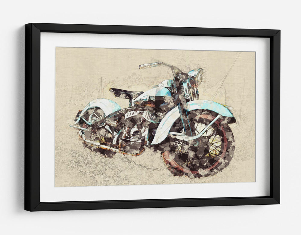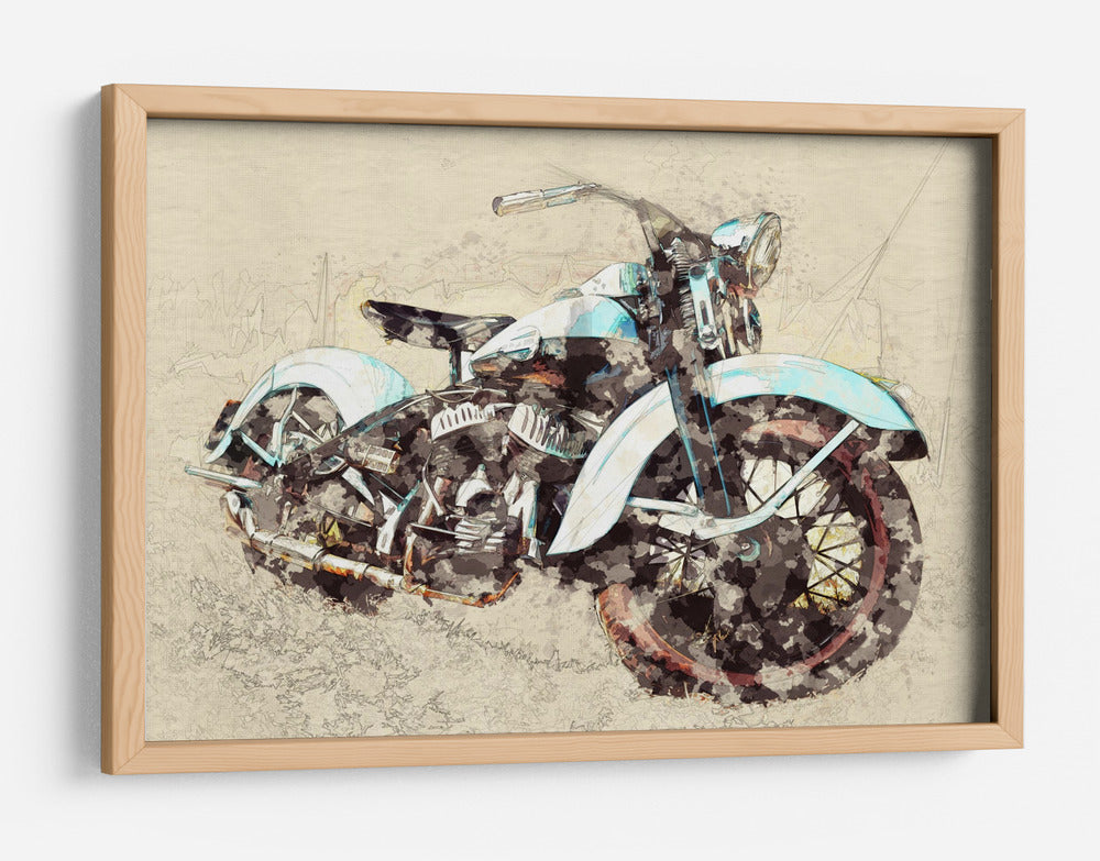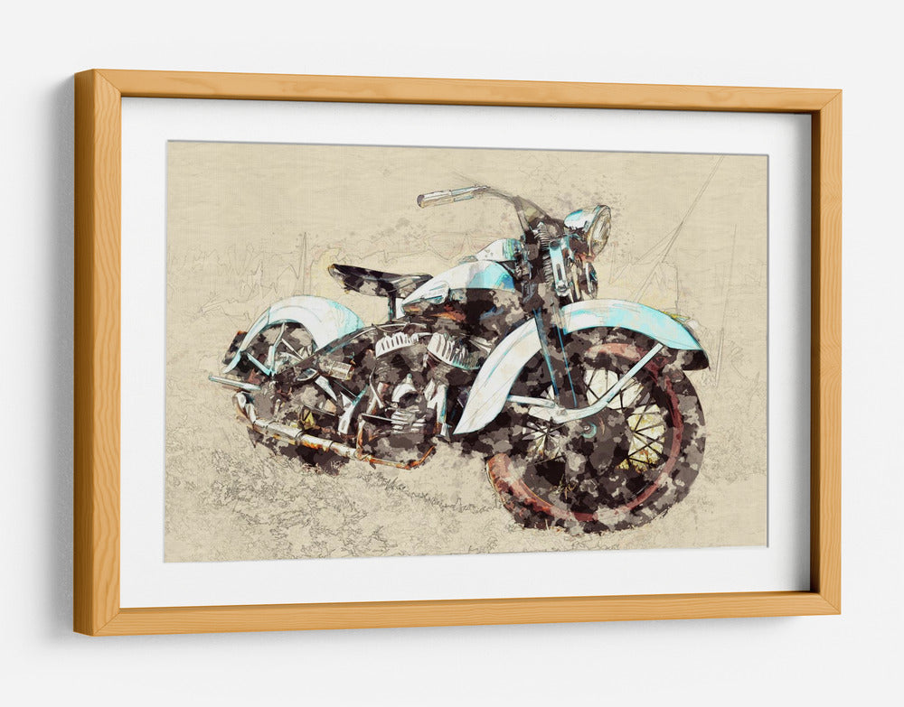 Sumérgete en la nostalgia y el encanto de una era pasada con nuestro cuadro decorativo 'Motocicleta Antigua'. Esta obra de arte captura la esencia de una motocicleta clásica con un estilo que fusiona la delicadeza del boceto a lápiz con toques audaces de pintura. Los colores neutros y terrosos del fondo, junto con los acentos azul claro y los tonos oscuros del motor, crean una atmósfera nostálgica y robusta a la vez. La composición centrada en la motocicleta, con un detalle exquisito en sus ruedas y manillar, invita a admirar su diseño icónico y la ingeniería de antaño. Es una pieza ideal para los amantes de los vehículos vintage, o para aquellos que buscan añadir un toque de carácter y personalidad a espacios como un garaje, un estudio, una oficina o una sala de estar con un estilo industrial o rústico. Este cuadro decorativo no solo embellece tu pared, sino que también evoca historias de libertad, aventura y la estética atemporal del diseño mecánico. Un punto focal que atraerá miradas y generará conversación, perfecto para quienes aprecian el arte con alma y un guiño a la historia del motociclismo.