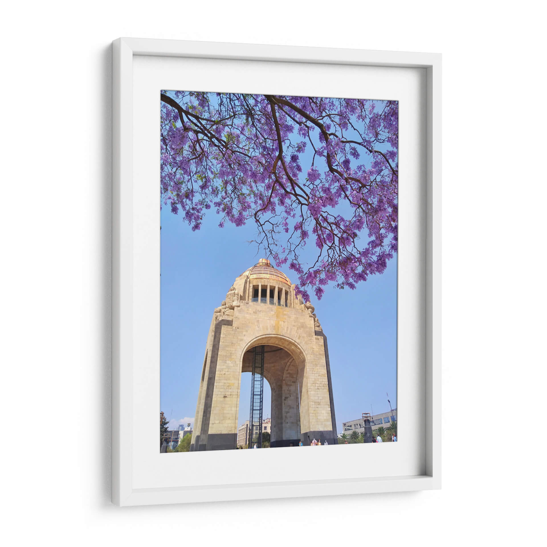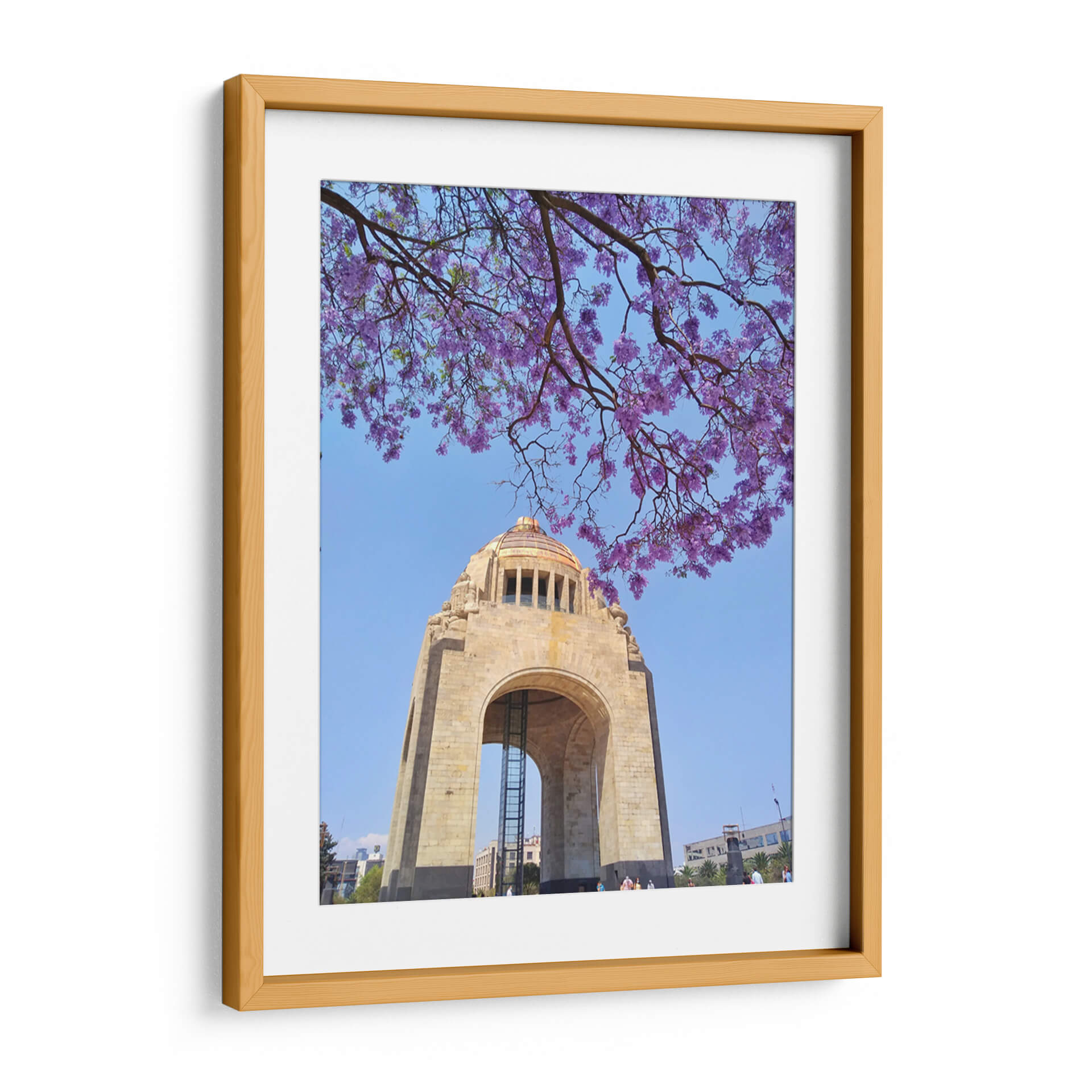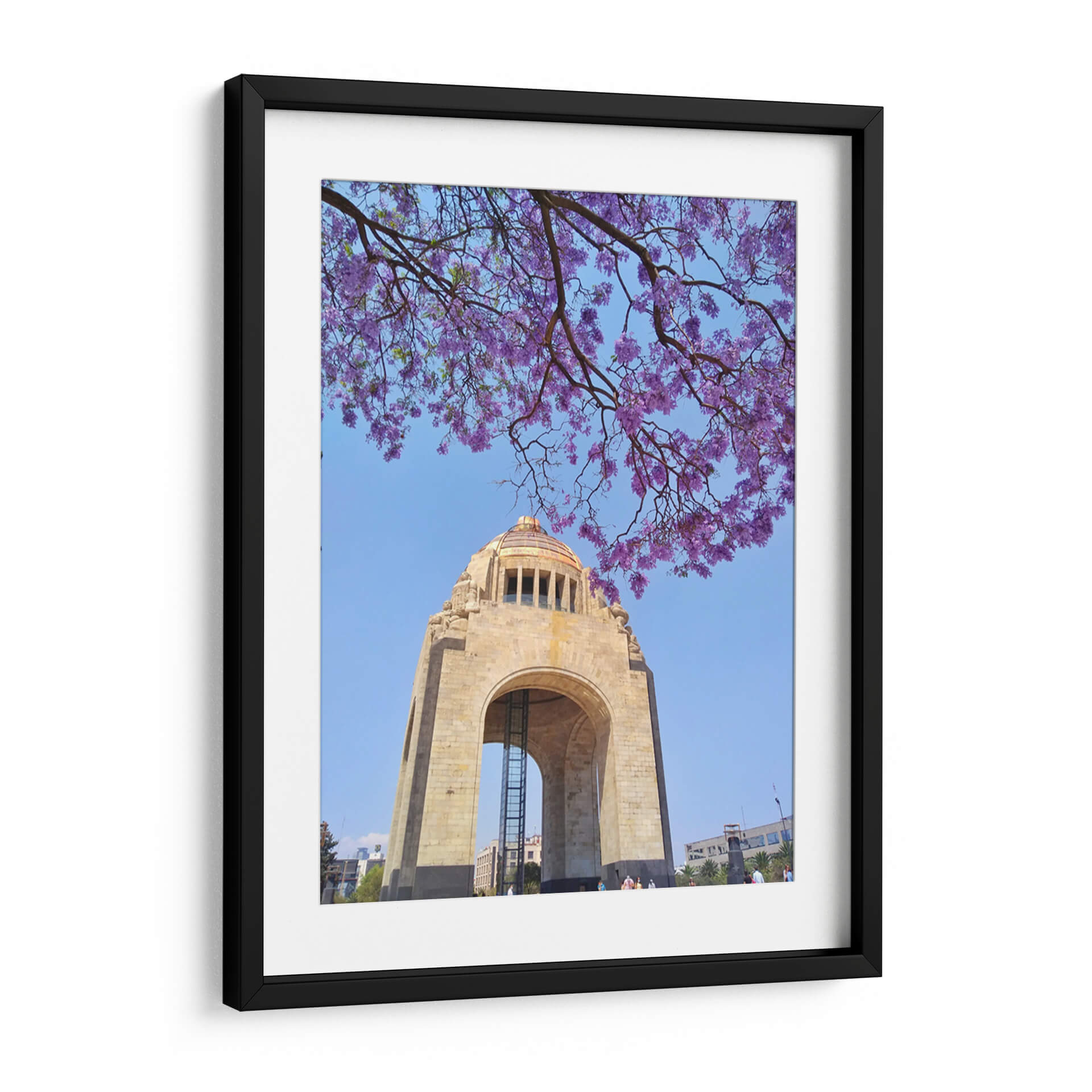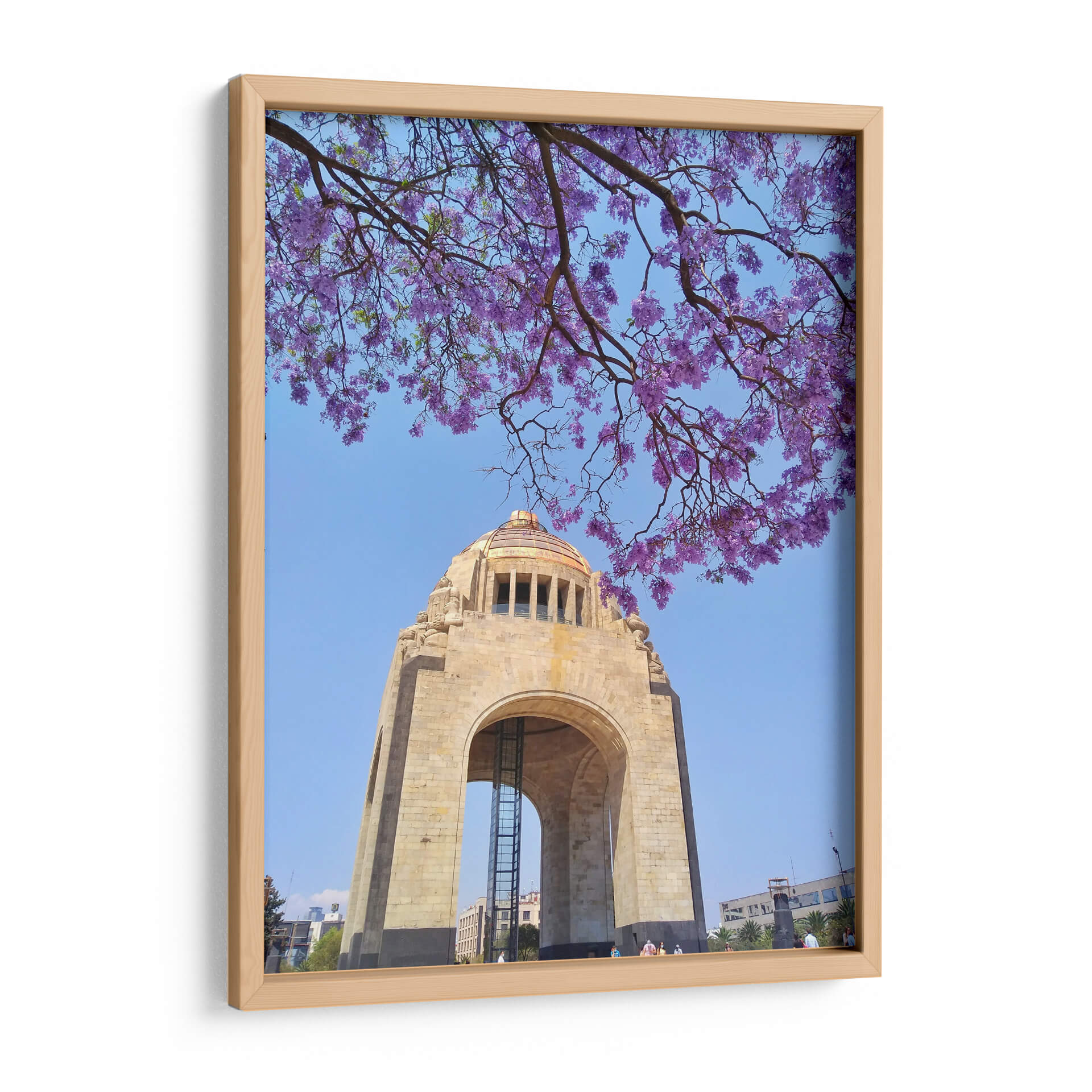 Captura la esencia de la primavera y la monumentalidad arquitectónica con este evocador cuadro decorativo titulado 'Púrpura', obra del artista Hugo Segura. La pieza presenta una imponente estructura de piedra, reminiscentes de un arco triunfal o monumento histórico, bajo un cielo azul despejado y vibrante. Dramáticamente, ramas de jacaranda cargadas de flores púrpura intensa se extienden desde la parte superior, creando un contraste cautivador entre la solidez de la arquitectura y la delicadeza efímera de la naturaleza en flor. Los tonos cálidos de la piedra se complementan con el azul profundo del cielo y la explosión de color púrpura, generando una atmósfera de serenidad y belleza primaveral. Este cuadro decorativo es ideal para añadir un toque de color y sofisticación a cualquier espacio. Su composición equilibrada entre la arquitectura clásica y la exuberancia floral lo convierte en una pieza focal perfecta para salones modernos, estudios o recibidores, invitando a la contemplación y al disfrute de la belleza en su máxima expresión, y evocando la sensación de un momento capturado en el tiempo.