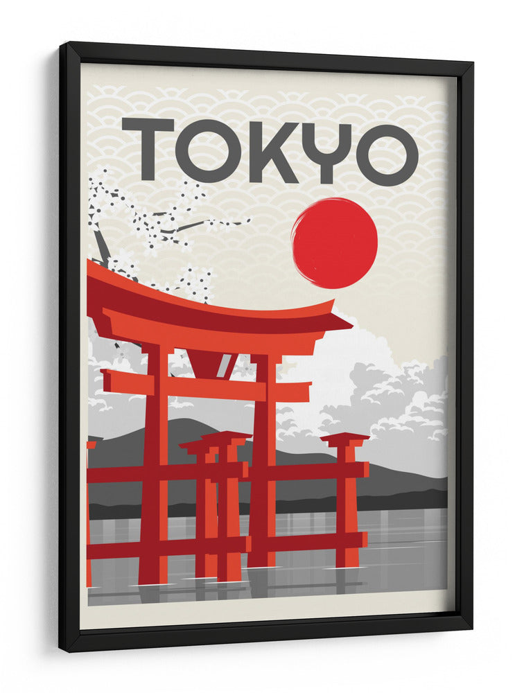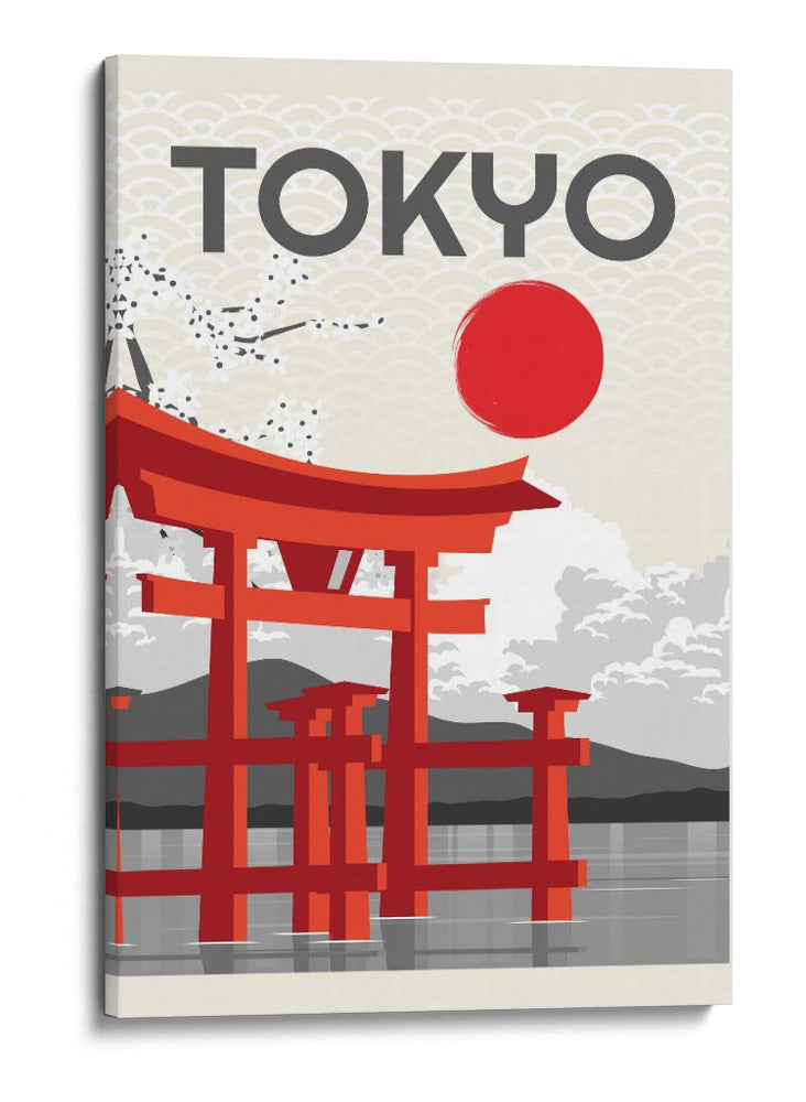 Sumérgete en la vibrante esencia de la capital japonesa con nuestro cuadro decorativo "Sol de Tokio", una obra que captura la icónica belleza de un torii rojo brillante emergiendo de aguas tranquilas. El sol naciente, representado por un círculo rojo intenso, ilumina un cielo sutilmente texturizado con patrones de ondas, evocando la rica tradición artística de Japón. La silueta de montañas en el horizonte y las delicadas ramas de cerezo en flor añaden una capa de serenidad y delicadeza a la composición. Este cuadro minimalista y estilizado, con su fuerte contraste de colores entre el rojo audaz, los grises neutros y los tonos tierra suaves, es perfecto para infundir energía y un toque de sofisticación oriental a cualquier espacio. Ideal para salas de estar modernas, oficinas o como pieza central en un comedor, "Sol de Tokio" invita a la contemplación y al aprecio por la cultura japonesa. Añade un toque de viaje y descubrimiento a tu decoración con esta pieza inspiradora que trasciende el tiempo y la tendencia, convirtiéndose en un punto focal que cautivará a todos tus invitados.