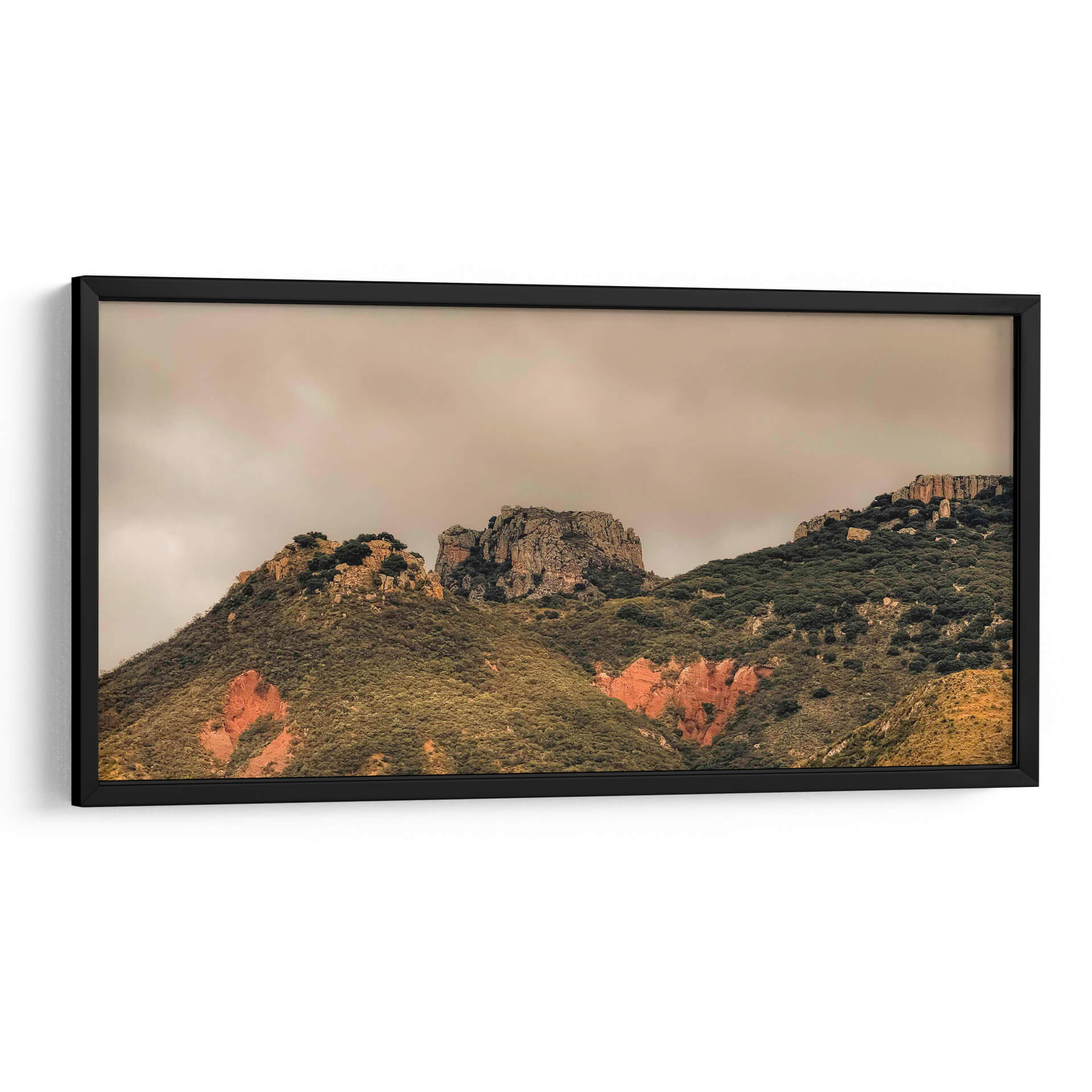 Sumérgete en la majestuosidad de "Tepoztlán", una obra de arte que captura la esencia cruda y poderosa de un paisaje montañoso imponente. La pieza te transporta a las faldas de montañas cubiertas de vegetación exuberante, donde las formaciones rocosas emergen con una fuerza ancestral. Los colores, dominados por verdes profundos y ocres vibrantes, se ven contrastados por las marcadas tonalidades rojizas de la tierra expuesta, creando una paleta rica y terrosa que evoca una sensación de conexión con la naturaleza. La atmósfera general es de calma y contemplación, invitando a la reflexión sobre la inmensidad y la belleza salvaje del mundo natural. El estilo, que podríamos catalogar como fotografía paisajista realista con un toque artístico, se centra en la textura y la luz, destacando las formas esculturales de las montañas bajo un cielo nublado que añade dramatismo y profundidad. "Tepoztlán" es ideal para aquellos que buscan infundir sus espacios con una energía serena pero impactante, siendo una adición perfecta para salones, estudios o cualquier rincón que necesite un recordatorio de la fuerza y la tranquilidad que ofrece la naturaleza.