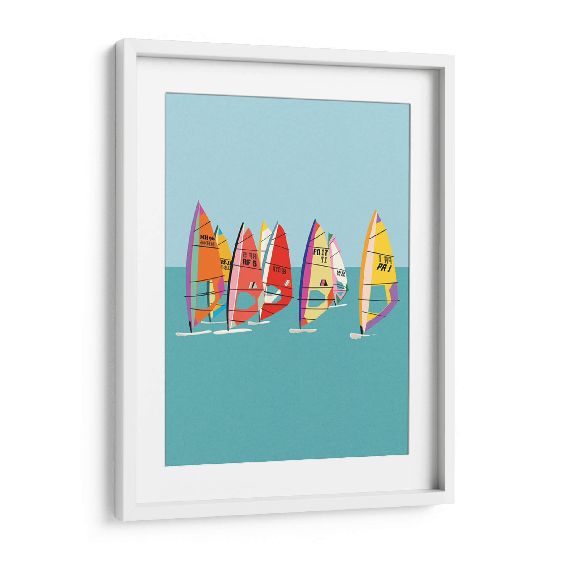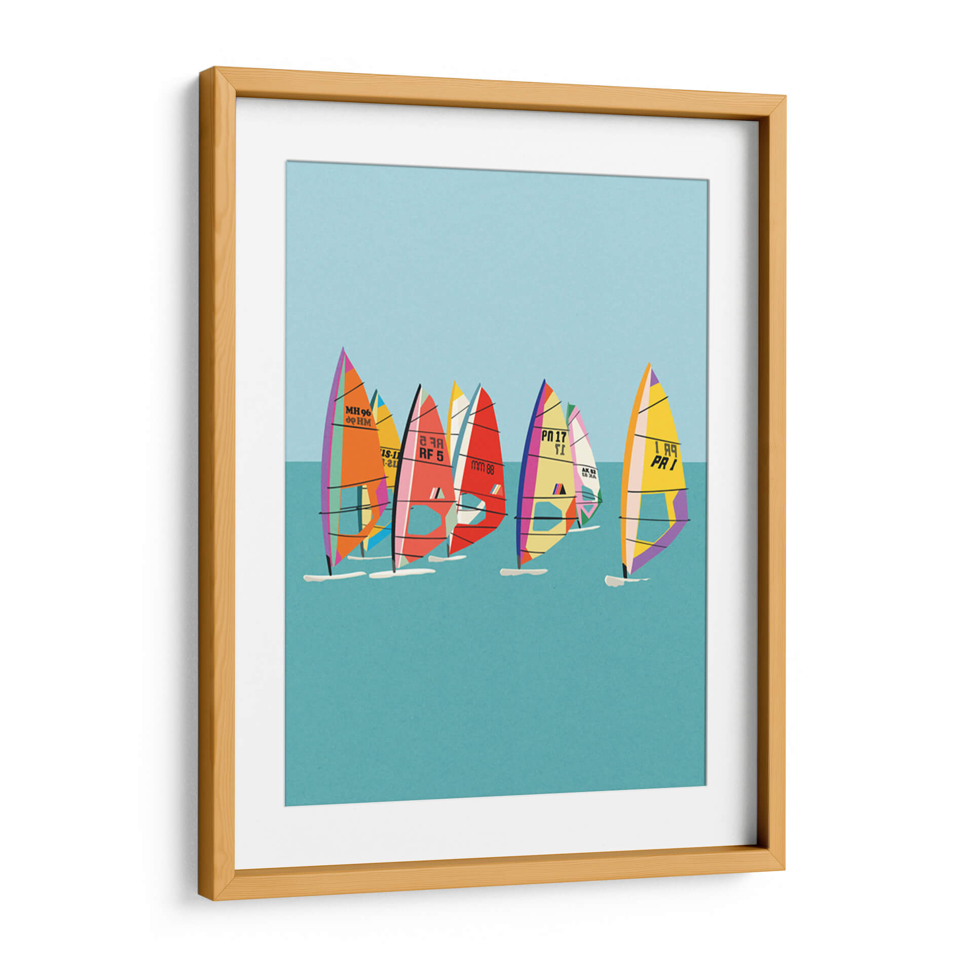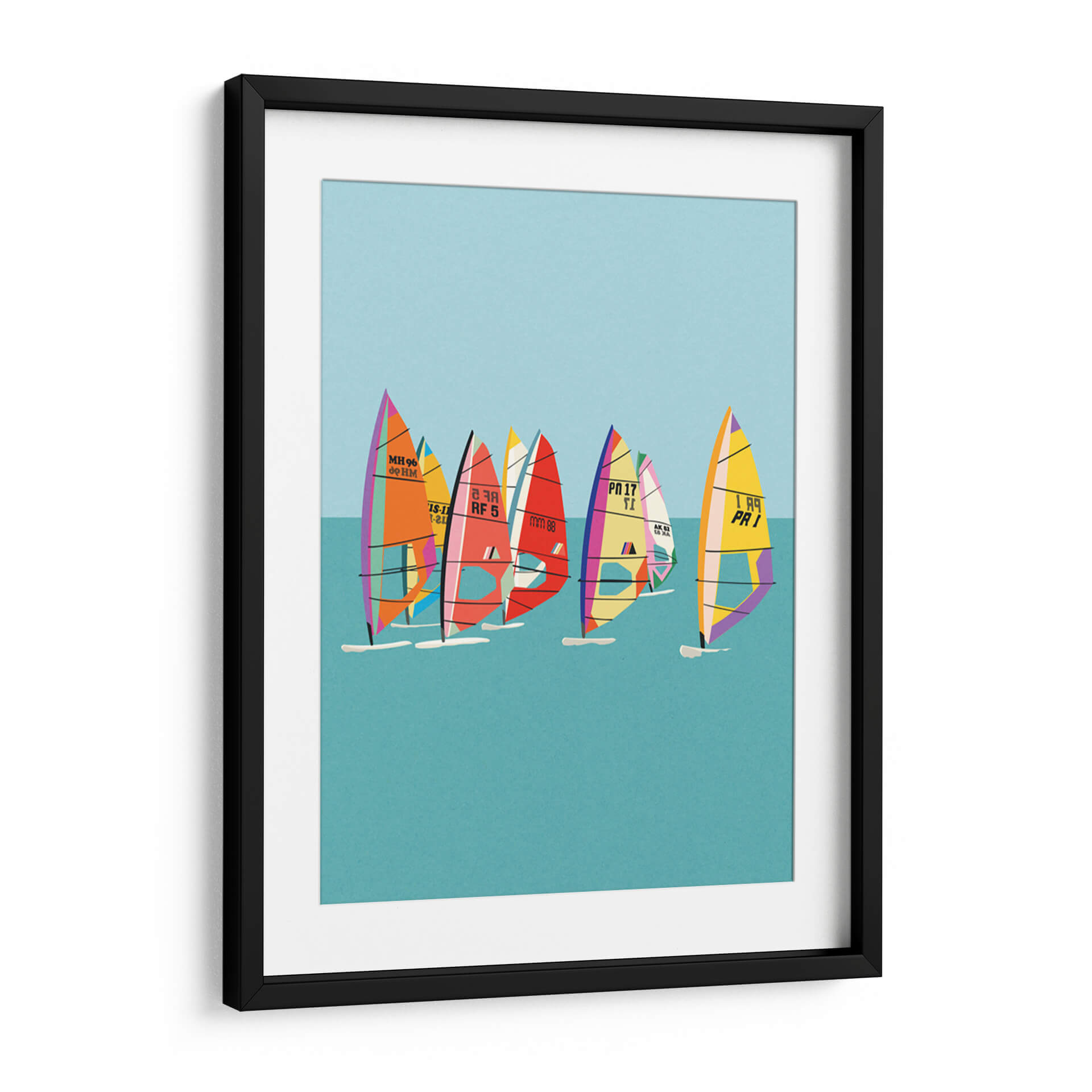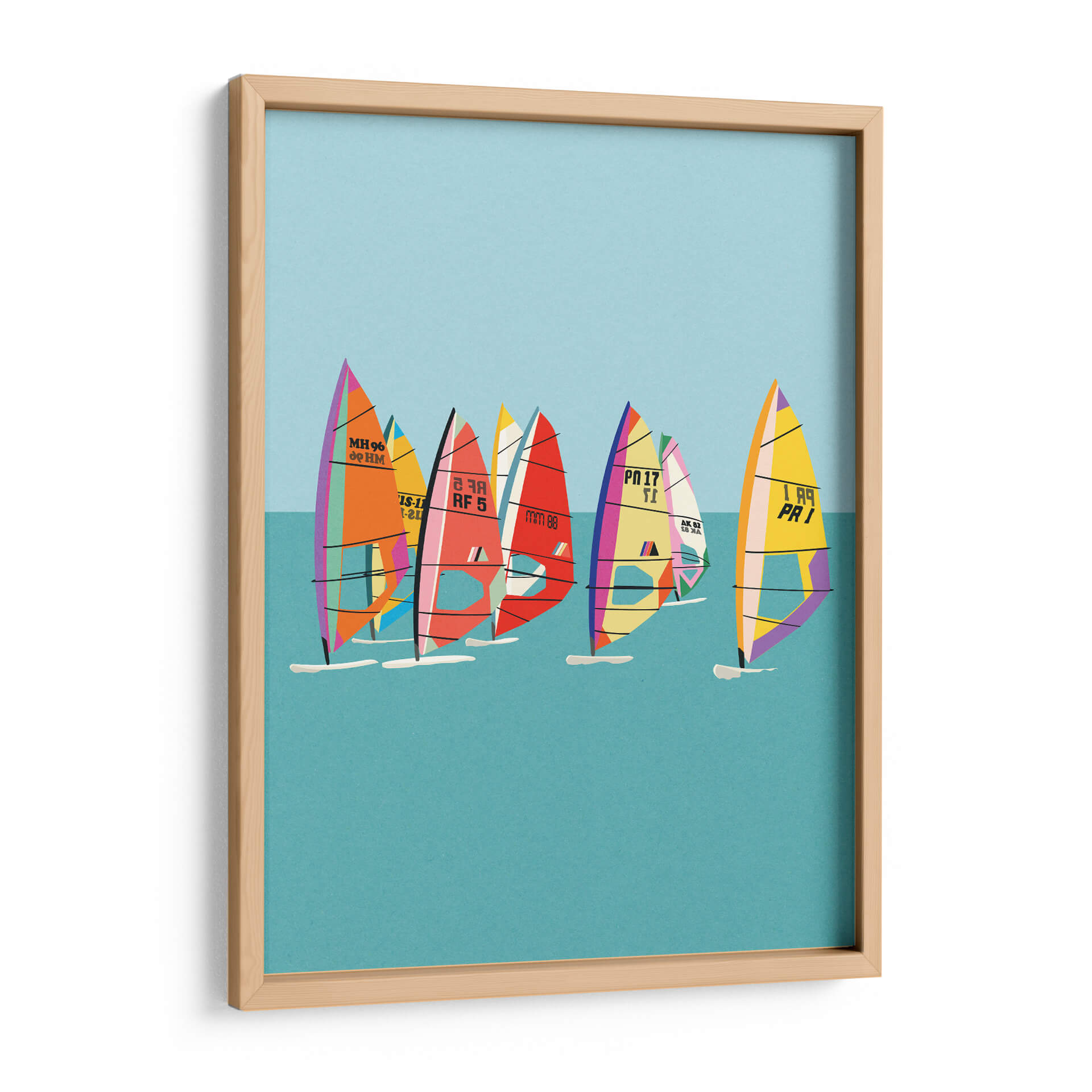 Sumérgete en la energía vibrante y la serenidad del mar con este cautivador cuadro decorativo, 'Windsurf en el Mar Báltico' de Rosi Feist. La obra presenta una composición dinámica de veleros de windsurf, cada uno con velas de colores vivos que contrastan armoniosamente con el sereno fondo azul turquesa del agua y el cielo. El estilo gráfico y audaz, con líneas limpias y formas geométricas, evoca una sensación de movimiento y libertad. Los colores primarios y secundarios, como el naranja, el amarillo, el rojo y el púrpura, aportan una vitalidad juvenil y alegre a la pieza, mientras que el azul predominante transmite una atmósfera de calma y expansión. Cada velero, con sus distintivos números y letras, añade un toque de realismo estilizado a esta escena marítima contemporánea. Este cuadro decorativo es perfecto para añadir un toque de color y vitalidad a cualquier sala de estar, dormitorio o espacio de oficina, inspirando aventuras y tranquilidad. Su diseño moderno y su temática náutica lo convierten en una pieza de conversación ideal para amantes del mar y el arte.