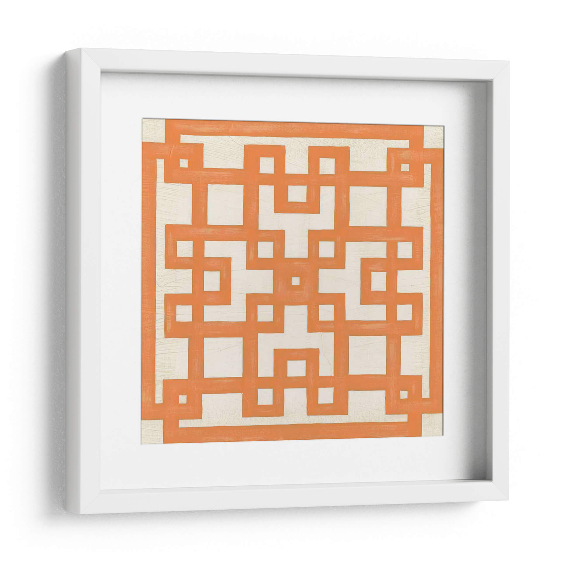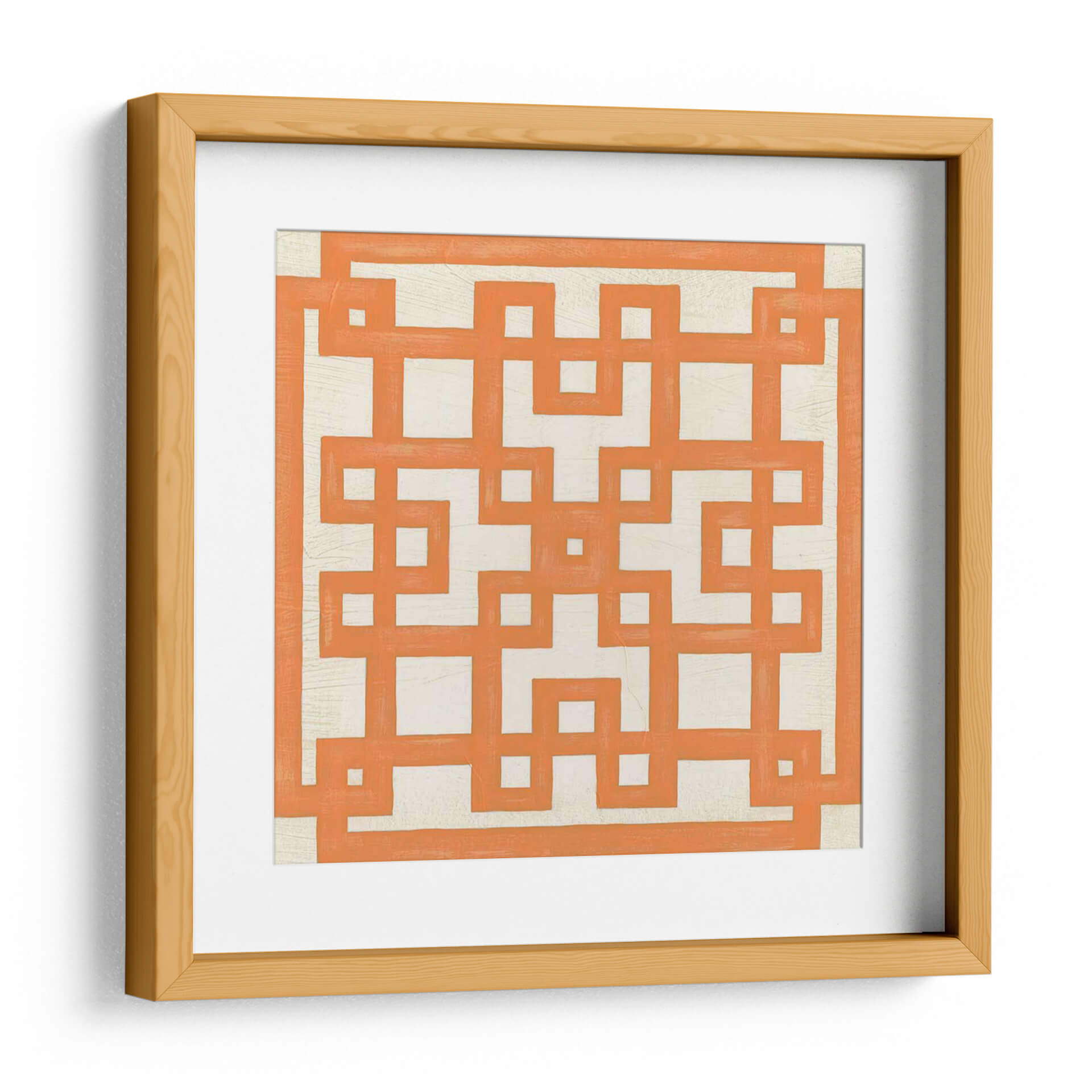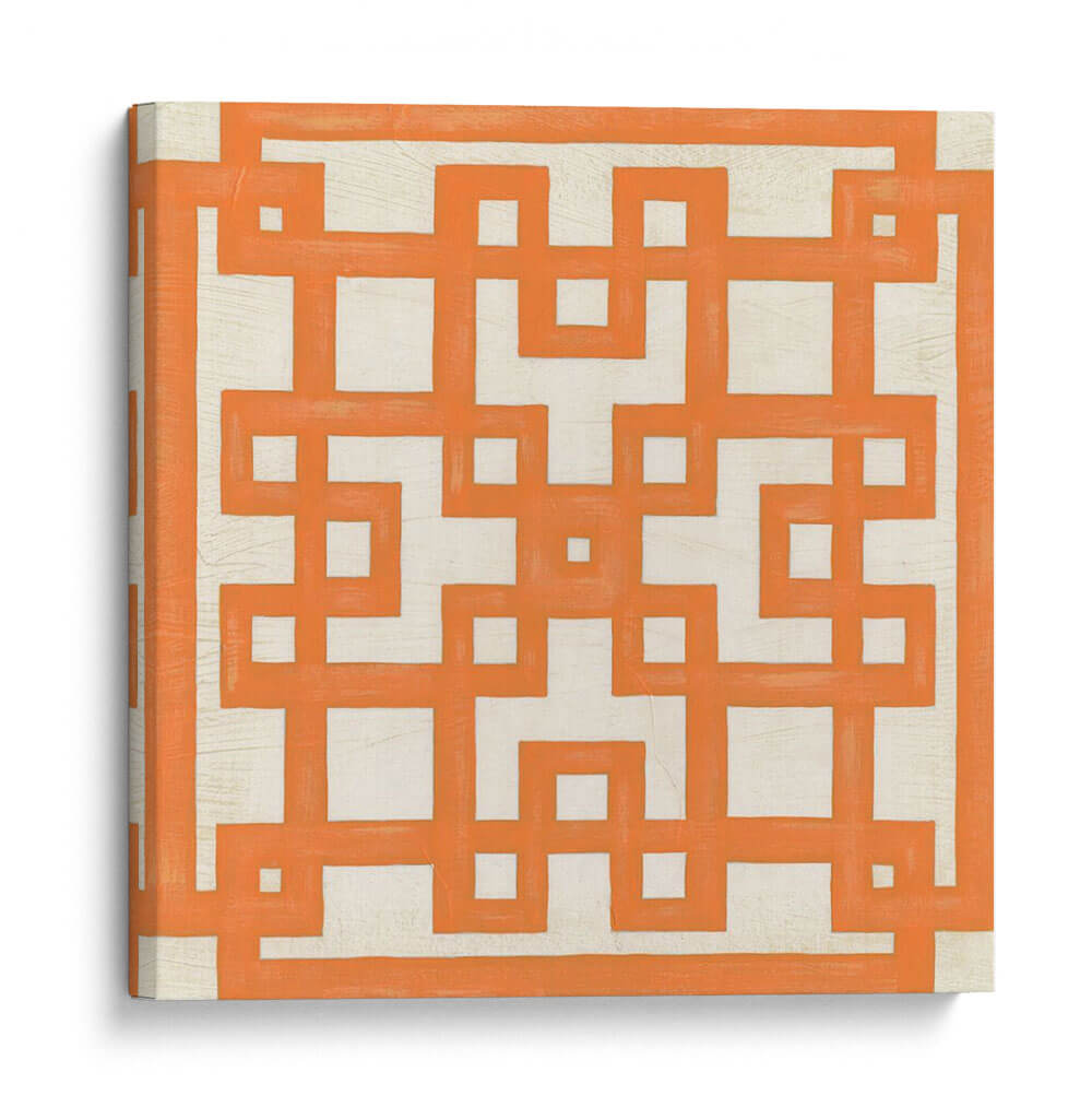 Sumérgete en la cautivadora simplicidad geométrica de "Maze Maze I", una obra de arte contemporáneo que evoca orden y dinamismo. Este cuadro decorativo presenta un intrincado patrón de líneas naranjas brillantes entrelazadas sobre un fondo texturizado de color crema claro. La composición, inspirada en laberintos y celosías, juega con la repetición de formas cuadradas y rectangulares, creando una sensación de profundidad y movimiento visual. La paleta de colores, dominada por el vibrante naranja y el neutro crema, aporta una energía optimista y a la vez serena a cualquier espacio. Ideal para quienes buscan un toque moderno y sofisticado, "Maze Maze I" funciona como un punto focal audaz en salas de estar, estudios u oficinas, añadiendo personalidad y un aire de diseño inteligente. Su diseño abstracto lo convierte en una pieza versátil, capaz de complementar tanto decoraciones minimalistas como eclécticas, invitando a la contemplación y añadiendo un toque de arte contemporáneo a tu hogar.