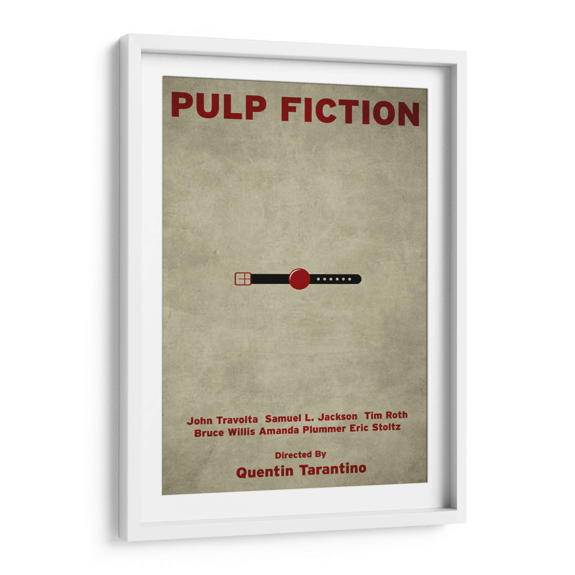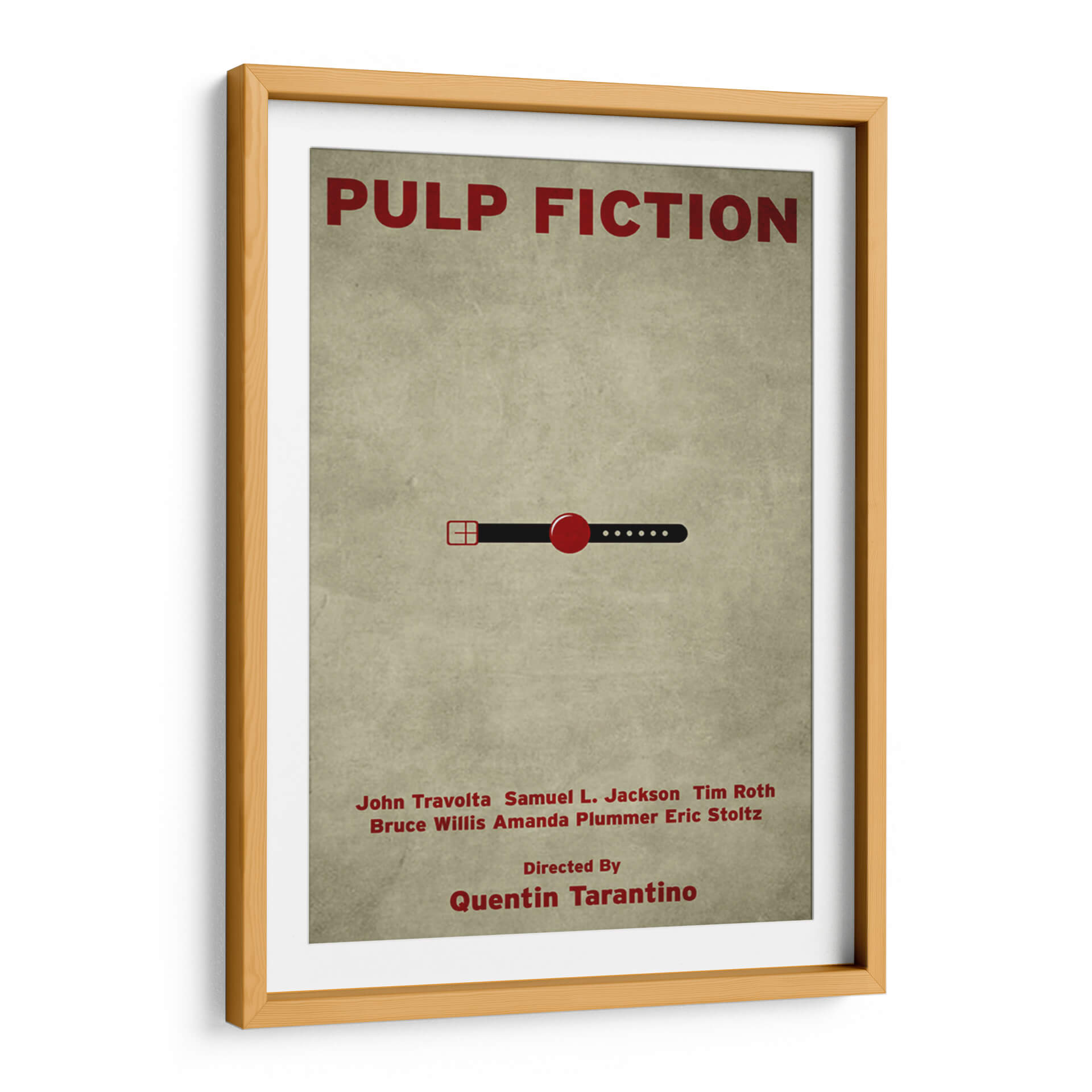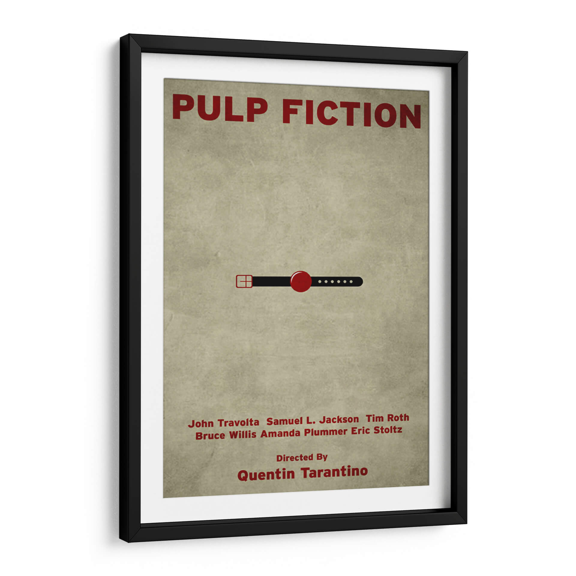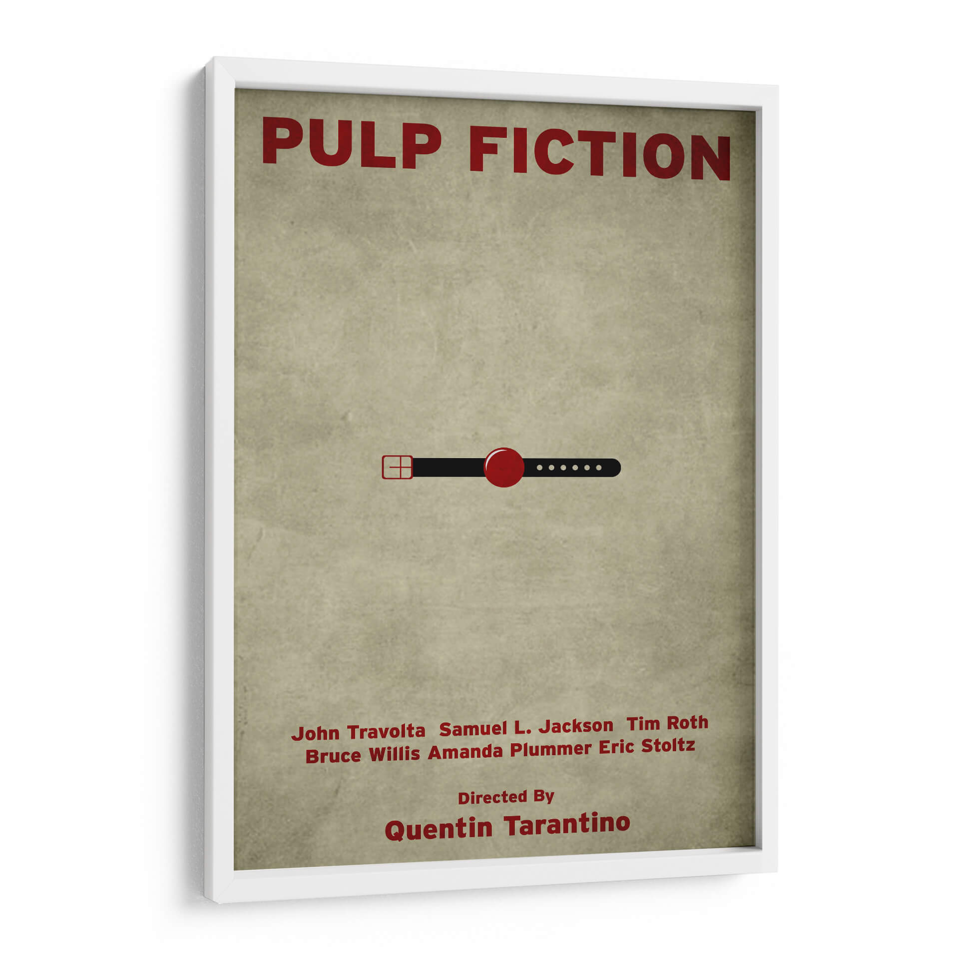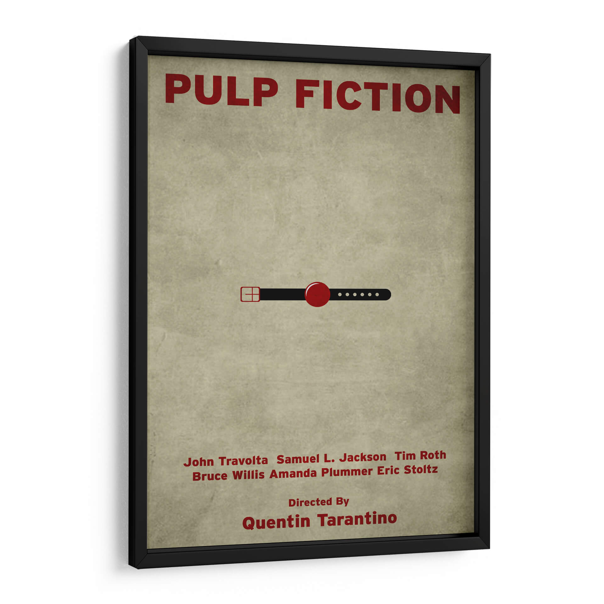 Revive la icónica cultura pop con este cautivador cuadro decorativo inspirado en "Pulp Fiction". La obra presenta un diseño minimalista pero impactante, con el título de la película y una sutil referencia visual que evoca la esencia del cine de culto. Los colores predominantes, un fondo texturizado en tonos tierra y el rojo vibrante de los elementos gráficos, crean una atmósfera nostálgica y sofisticada. Este cuadro es perfecto para los amantes del cine y para aquellos que buscan añadir un toque de carácter y conversación a su hogar u oficina. Su diseño limpio y moderno lo convierte en una pieza versátil, ideal para salas de estar, estudios, o incluso espacios de entretenimiento. Imagina este arte como un punto focal que evoca recuerdos de escenas memorables y diálogos inolvidables, aportando una dosis de estilo retro y contemporáneo a tu decoración. Añade esta pieza única a tu colección y celebra el legado de una de las películas más influyentes de todos los tiempos. Es una elección excelente para quienes aprecian el arte con referencias cinematográficas y un diseño gráfico audaz y elegante.