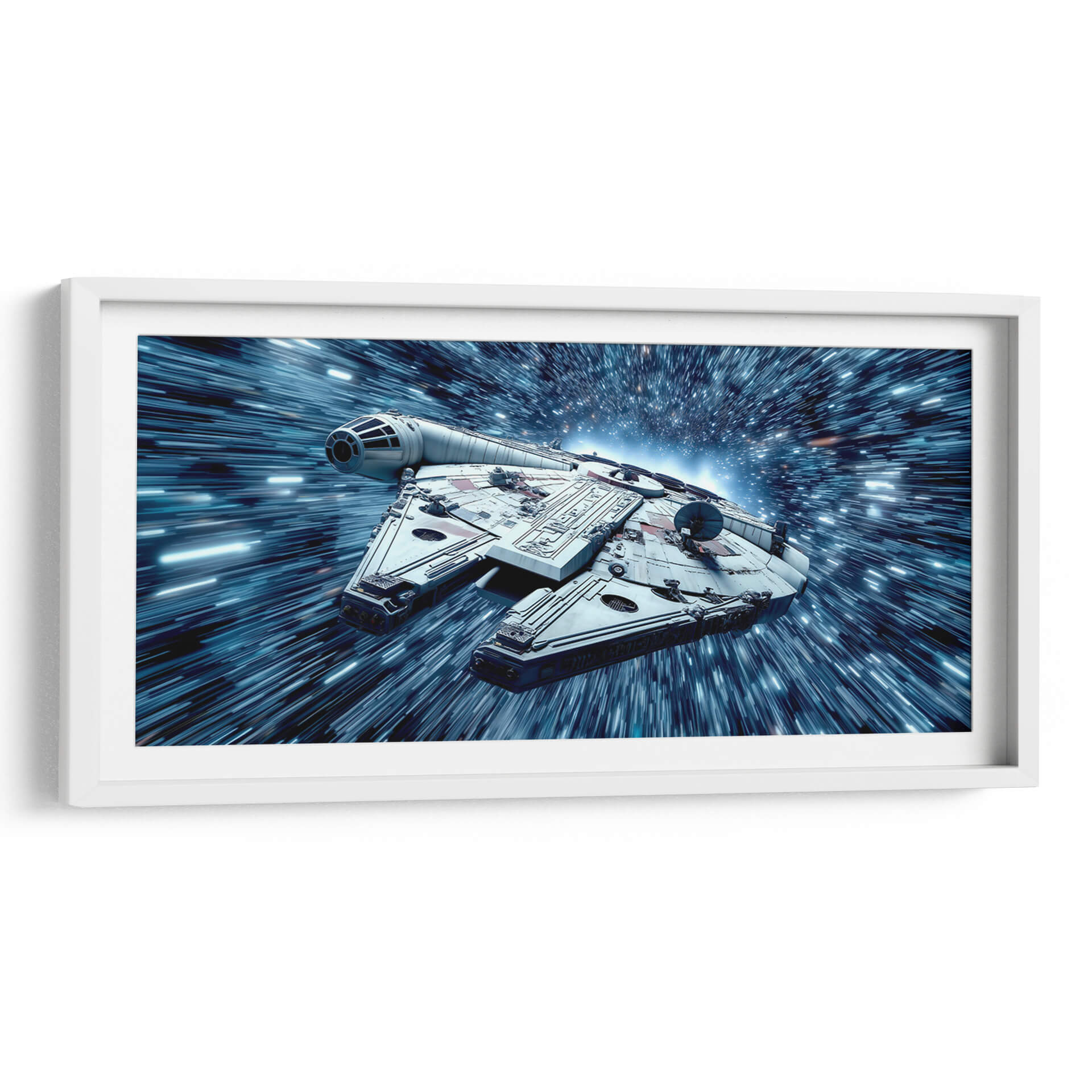 Embárcate en un viaje visual a través del cosmos con este impresionante cuadro decorativo "Millenium Falcon" de DeLaVegaGaming. La obra captura la icónica nave espacial en pleno salto hiperespacial, envuelta en un torbellino de luces azules y blancas que simulan el rápido desplazamiento a través del universo. Los detalles intrincados de la nave, con sus característicos paneles y estructura, se destacan contra el fondo dinámico y abstracto, creando una sensación de movimiento y aventura. La paleta de colores, dominada por profundos azules y vibrantes destellos de luz, evoca la inmensidad del espacio y la emoción de la exploración. Este cuadro es ideal para los amantes de la ciencia ficción y la cultura pop, añadiendo un toque de fantasía y energía a cualquier sala de estar, estudio u oficina. Su estilo digital y su temática épica lo convierten en una pieza de conversación, perfecta para espacios modernos que buscan un acento audaz y nostálgico. Transforma tu hogar en un portal a otra galaxia con esta representación artística única que celebra uno de los vehículos más legendarios de la historia del cine. Una adición imprescindible para coleccionistas y entusiastas que desean proyectar una pasión por lo interestelar en su decoración.