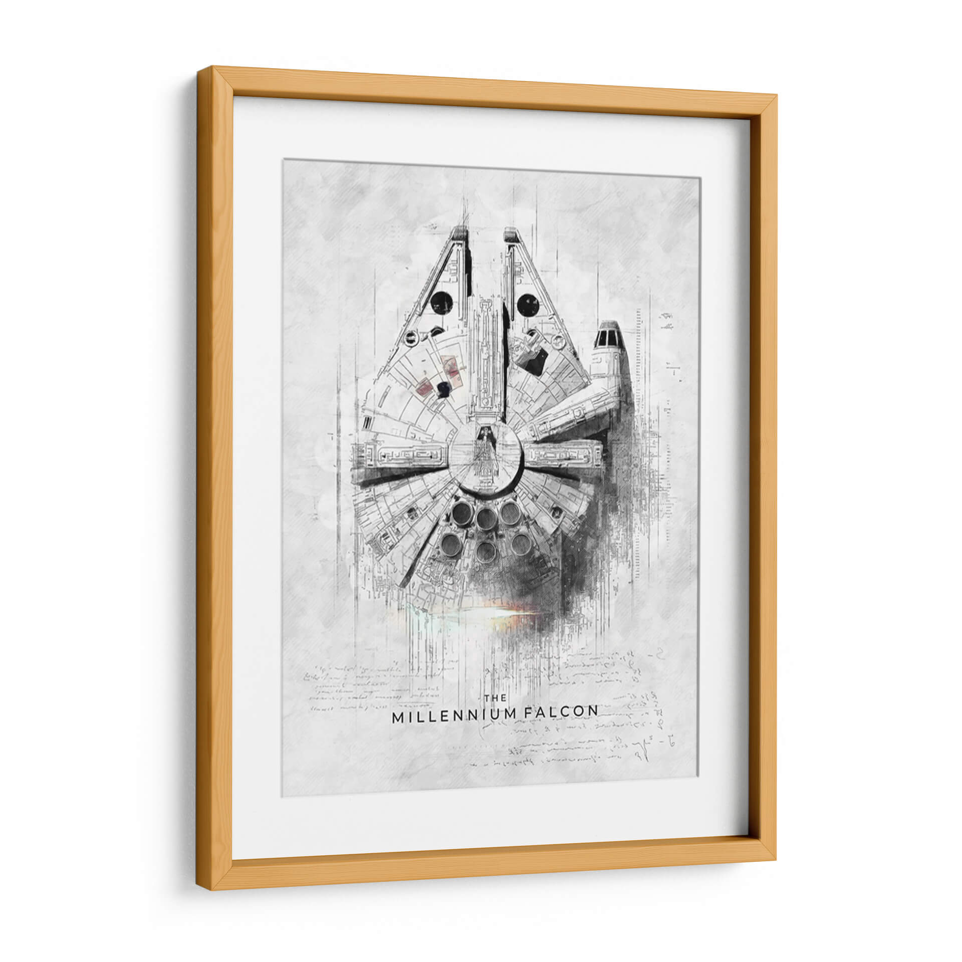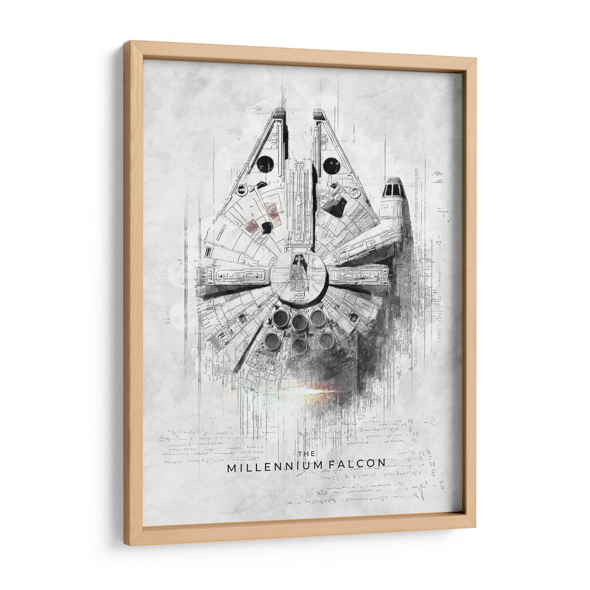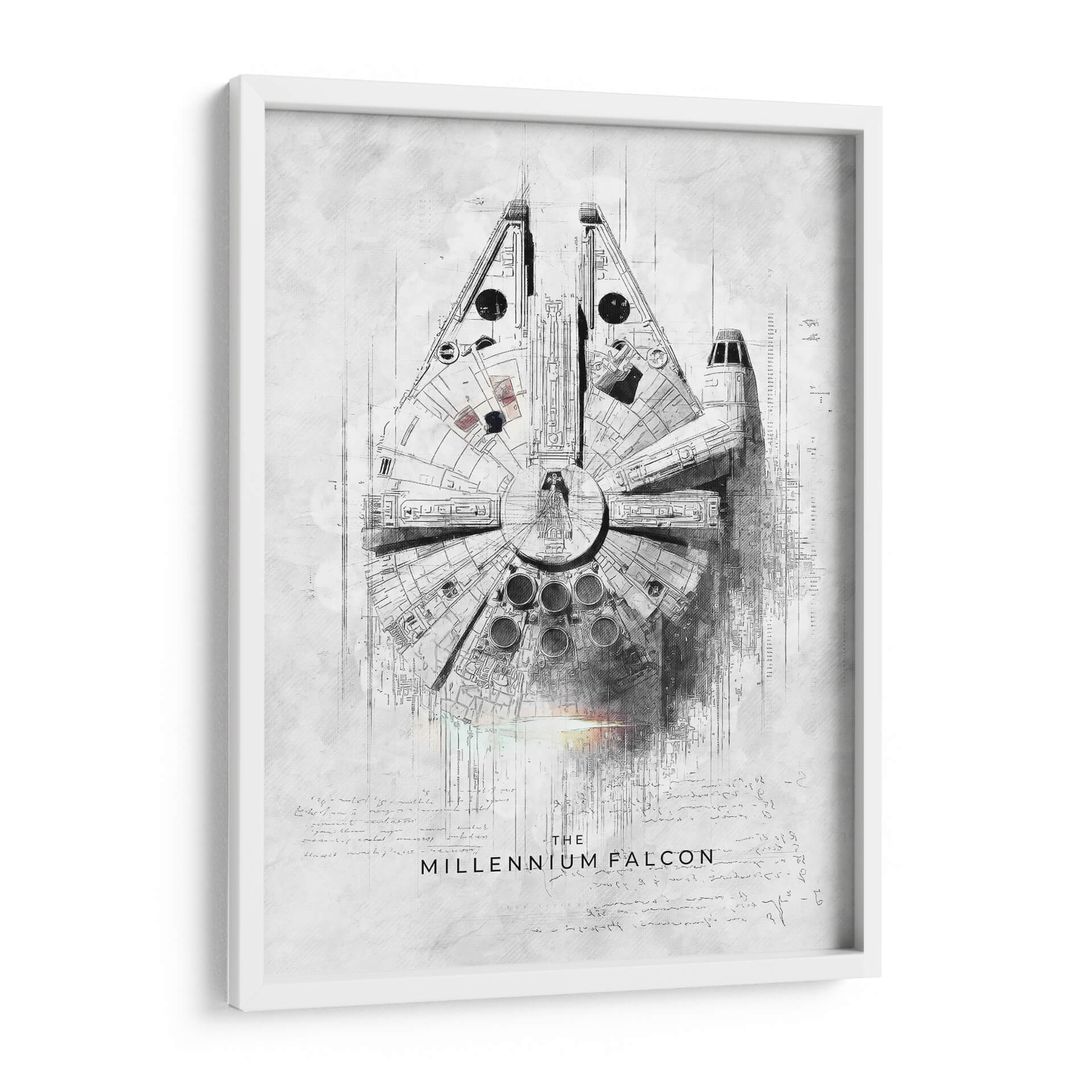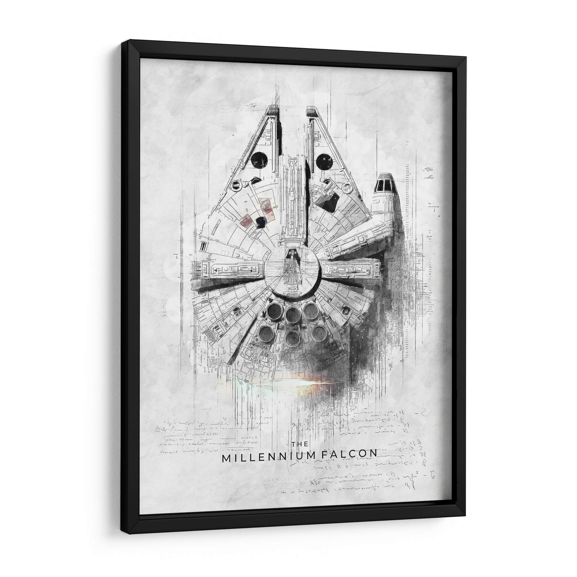 Sumérgete en la galaxia muy, muy lejana con este impresionante cuadro decorativo que rinde homenaje a una de las naves espaciales más icónicas de la ciencia ficción: el Halcón Milenario. La obra, creada por el artista Raúl Bermúdez, captura la esencia de esta legendaria nave con un estilo artístico único que fusiona el detalle de un plano técnico con la expresividad de un boceto a lápiz. La paleta de colores se centra en tonos grises y blancos, con sutiles toques de luz que añaden profundidad y dramatismo, evocando una sensación de aventura y audacia. Los intrincados detalles de la nave, junto con el texto y las anotaciones que la rodean, invitan a una contemplación profunda, transportando al espectador a un universo de exploración espacial y rebelión. Este cuadro es perfecto para cualquier aficionado a la saga o para quienes buscan una pieza de arte contemporáneo con un toque nostálgico y vanguardista. Ideal para salones, estudios o cualquier espacio que desee un elemento de conversación distintivo y lleno de carácter. Añade un toque de la fuerza a tu decoración.
