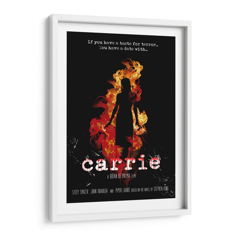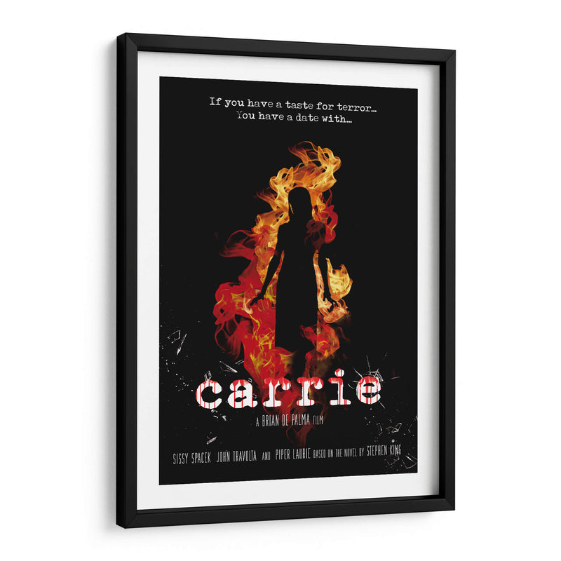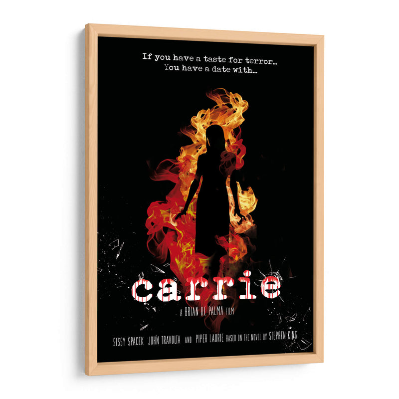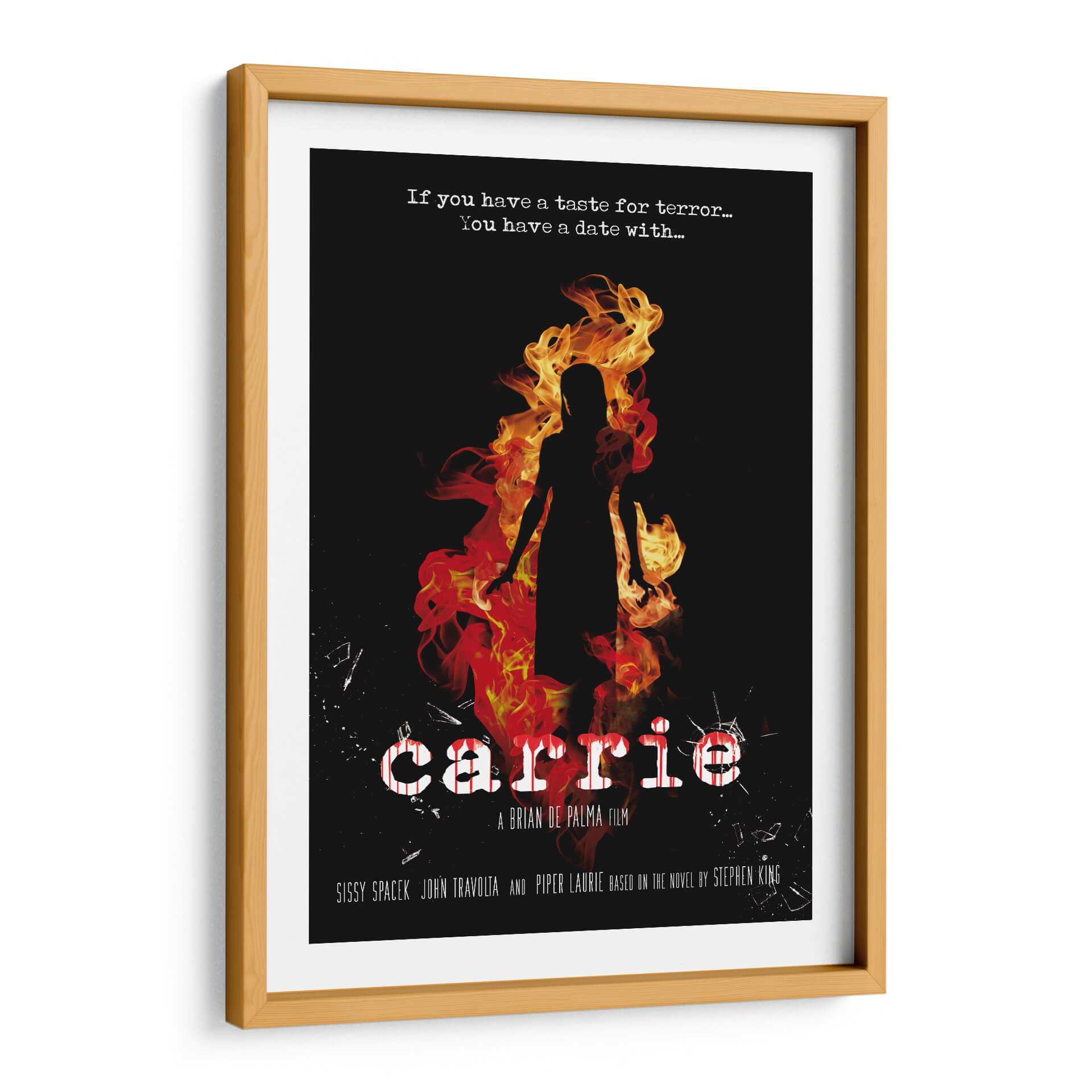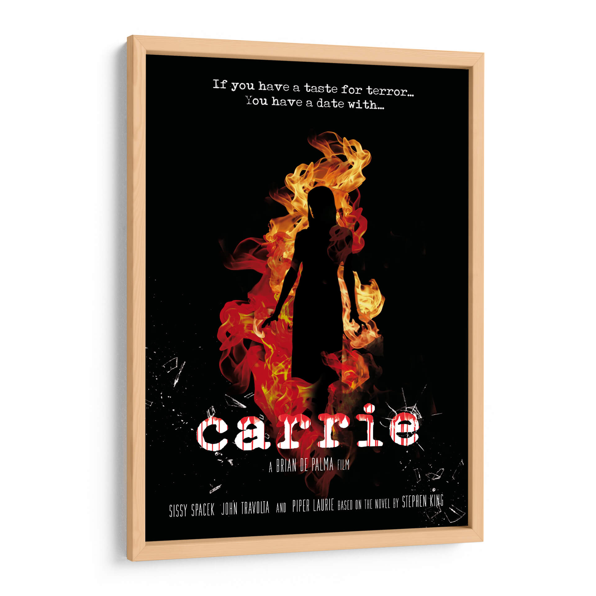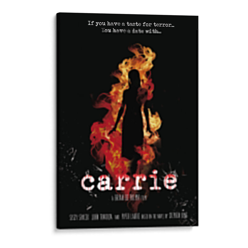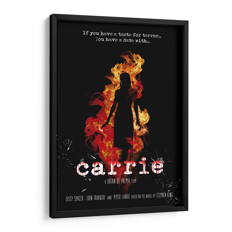 Inunda tu espacio con la intensidad y el drama de este impactante cuadro decorativo inspirado en la icónica película 'Carrie'. La obra presenta una silueta femenina enigmática, envuelta en llamas vibrantes que van desde naranjas intensos hasta rojos profundos, creando un contraste dramático sobre un fondo negro profundo. Pequeños fragmentos de vidrio roto salpican la composición, añadiendo una capa de tensión y fragilidad a la escena. El estilo gráfico y la paleta de colores limitada, dominada por el fuego y la oscuridad, evocan una atmósfera de poder contenido y transformación. Este cuadro decorativo es perfecto para aquellos que aprecian el cine de culto, el arte con un toque de misterio o que buscan una pieza que irradie fuerza y emoción. Ideal para salones modernos, estudios o cualquier rincón que necesite un punto focal audaz y lleno de carácter. Transforma tu hogar en una galería personal con esta pieza que captura la esencia del suspense y la potencia visual.