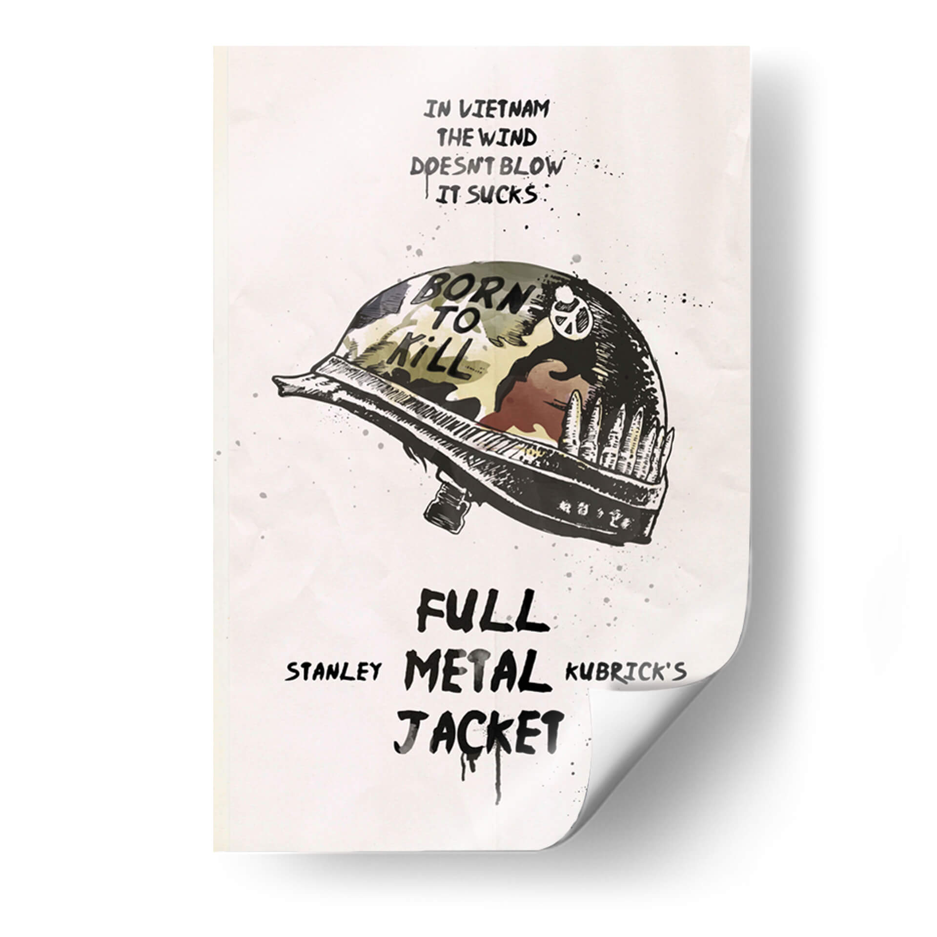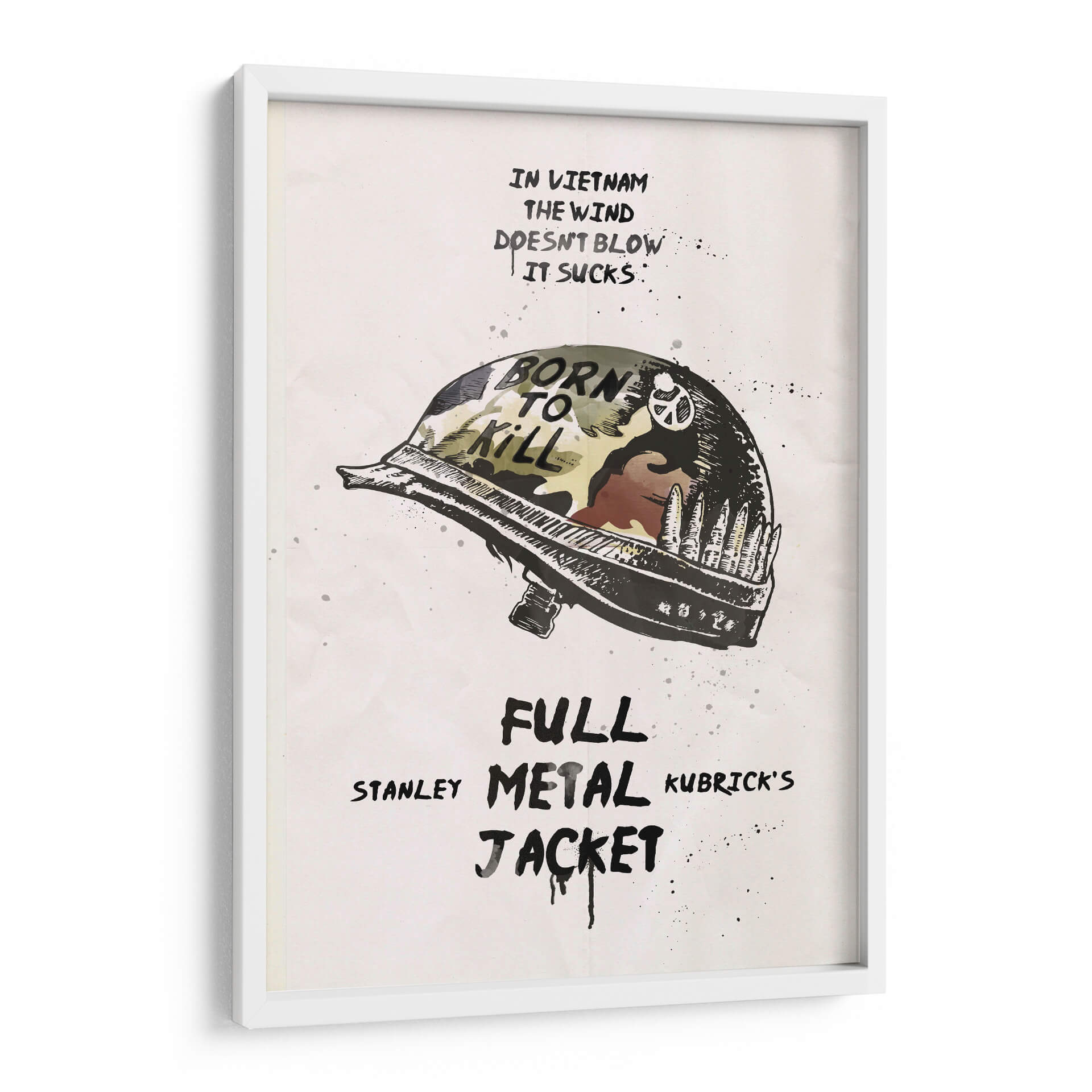 Sumérgete en la cruda y potente narrativa de "Full Metal Jacket" con este cuadro decorativo que evoca la intensidad de la icónica película de Stanley Kubrick. La obra presenta un casco militar intervenido con el lema "Born to Kill" y un diseño de camuflaje desgastado, rodeado de un halo de balas y salpicaduras que simulan el caos y la crudeza de la guerra. La paleta de colores, dominada por tonos tierra, verdes militares, negro y salpicaduras de gris, crea una atmósfera sombría pero impactante. El estilo gráfico, con trazos enérgicos y una composición centrada en el casco como símbolo de conflicto y destino, es ideal para espacios que buscan un toque de carácter audaz y reflexivo. Este cuadro decorativo es perfecto para añadir un punto focal dramático a una sala de estar moderna, un estudio personal o una oficina, invitando a la reflexión sobre la dualidad del destino humano y las consecuencias de la guerra. Añade esta pieza única a tu colección de arte de pared y haz una declaración audaz en tu decoración.