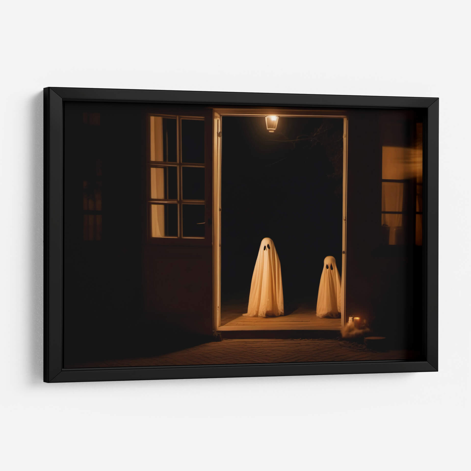 Sumérgete en la atmósfera intrigante de "All Hallows Eve", una obra de arte que captura la esencia de la noche de brujas con una visión contemporánea y sutil. Dos figuras etéreas, reminiscentes de fantasmas, se presentan en la penumbra de una puerta abierta, bañadas por una luz cálida que contrasta con la oscuridad circundante. La composición, con su juego de luces y sombras, crea una sensación de misterio y anticipación, invitando a la contemplación sobre lo desconocido. Los tonos ocres y sombras profundas otorgan a esta pieza una calidez inesperada, a pesar de su temática. "All Hallows Eve" es ideal para añadir un toque de carácter y conversación a tu sala de estar, estudio o incluso un espacio comercial que busque destacar. Su estilo único y evocador la convierte en una pieza central que atraerá miradas y generará diálogos, perfecta para aquellos que aprecian el arte que juega con la imaginación y evoca emociones complejas. Transforma tu hogar con este cuadro decorativo que combina lo clásico con lo moderno, añadiendo un aire de encanto misterioso y sofisticado a cualquier ambiente.
