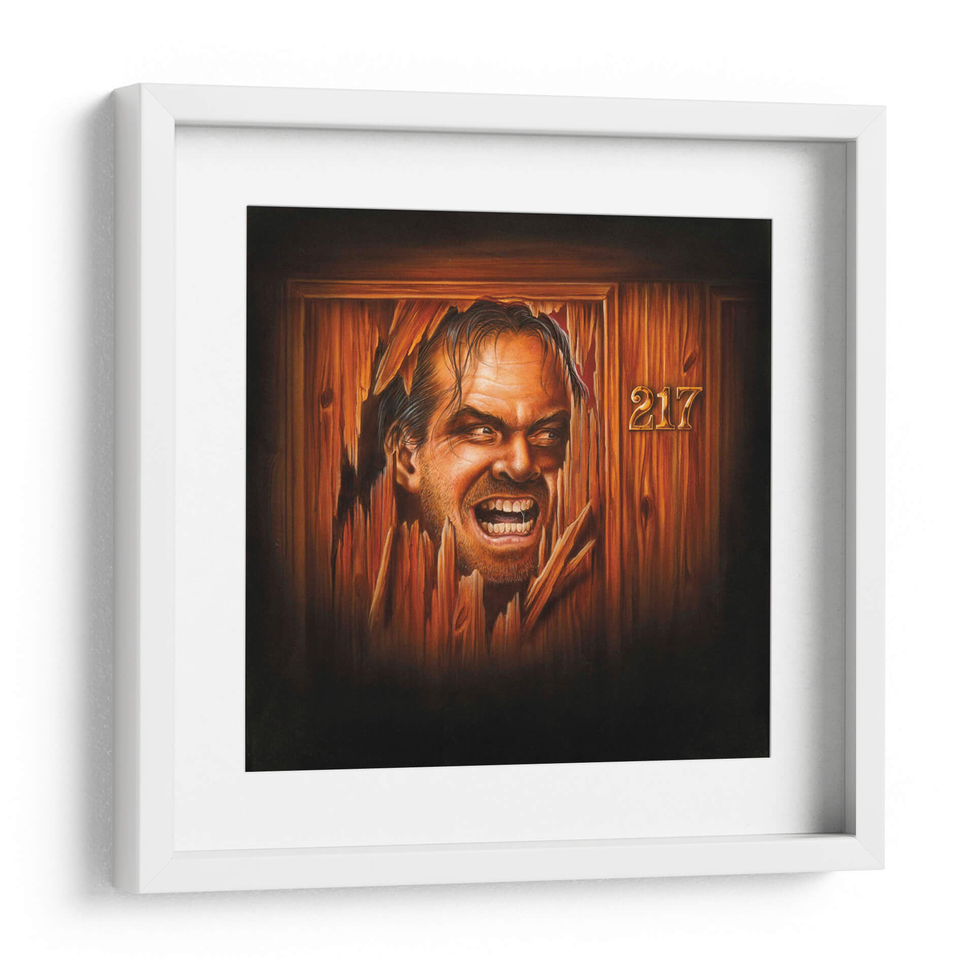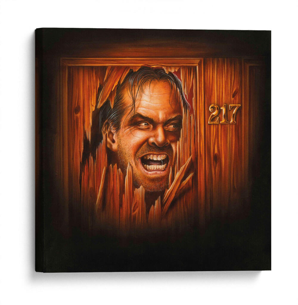 Sumérgete en el icónico mundo del cine de terror con este impactante cuadro decorativo inspirado en la legendaria escena de 'El Resplandor'. La obra captura la intensidad del momento en que Jack Torrance irrumpe a través de la puerta del cuarto 217, con una expresión de locura y desesperación que ha quedado grabada en la memoria colectiva del cine. Los vibrantes tonos madera, rasgados y expuestos, crean un contraste dramático con el rostro perturbador del personaje, evocando una atmósfera de tensión y suspense. Cada pincelada detallada resalta la textura de la madera y la expresión facial, invitando al espectador a revivir la angustia y el terror de la película. Este cuadro decorativo es una pieza imprescindible para los amantes del cine de culto, el arte de terror o para aquellos que buscan añadir un toque audaz y provocador a su decoración. Ideal para salas de cine en casa, estudios o cualquier espacio que busque un punto de conversación intrigante y lleno de carácter. Transforma tu pared en un portal a una de las escenas más memorables de la historia del cine.