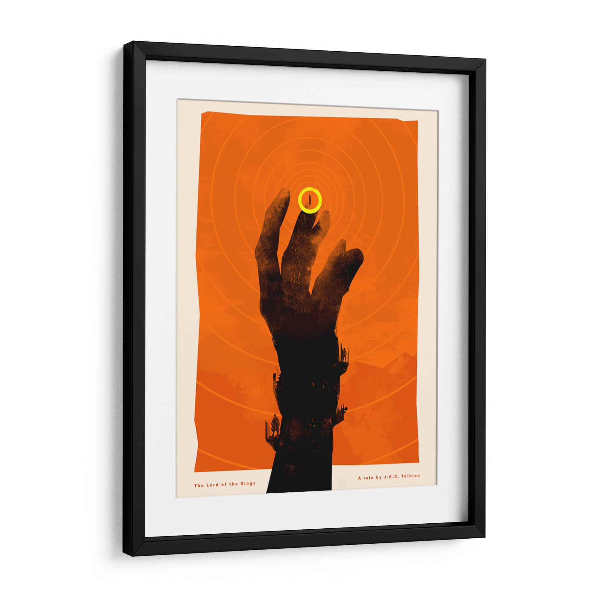Sumérgete en el mundo épico de la Tierra Media con este cuadro decorativo minimalista inspirado en "El Señor de los Anillos". La obra presenta una paleta de colores dominada por el naranja intenso y contrastes de sombra, evocando la atmósfera de peligro y aventura característica de la saga. Una silueta oscura y estilizada de una mano gigante se alza hacia un ojo amarillo brillante, un símbolo icónico de poder y vigilancia. En la base de la mano, pequeñas figuras de personajes se vislumbran, sugiriendo la escala épica de la narrativa y los héroes que luchan contra la oscuridad. El estilo minimalista de la composición permite que la fuerza de los símbolos resalte, convirtiendo esta pieza en un punto focal cautivador para cualquier espacio. Ideal para salas de estar modernas, estudios o dormitorios de fans de la fantasía, este cuadro decorativo añade un toque de misterio y emoción. Su diseño limpio y potente lo hace versátil para integrarse en diversas decoraciones, desde lo contemporáneo hasta lo más temático, ofreciendo una forma sutil y elegante de celebrar una de las historias más queridas de la literatura.