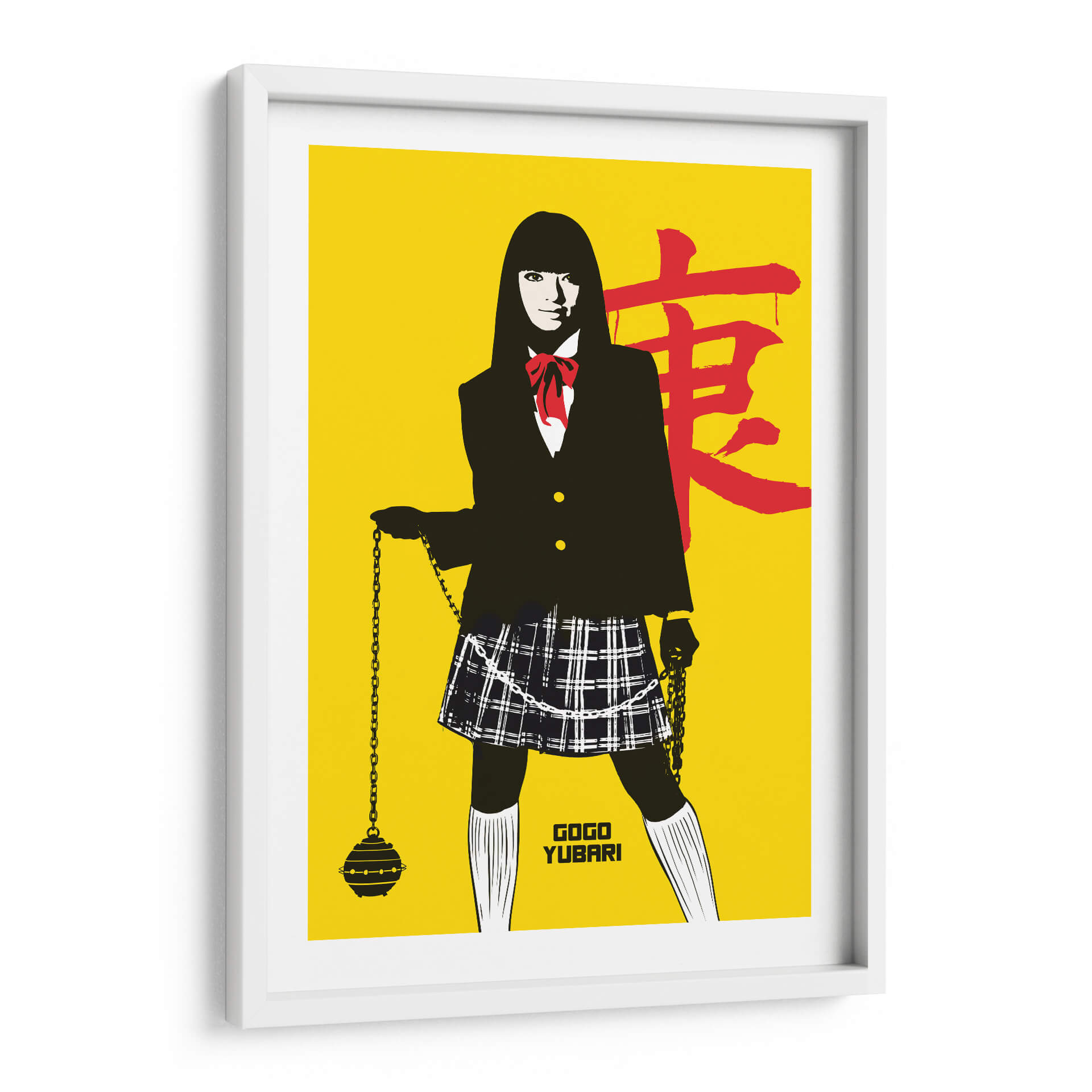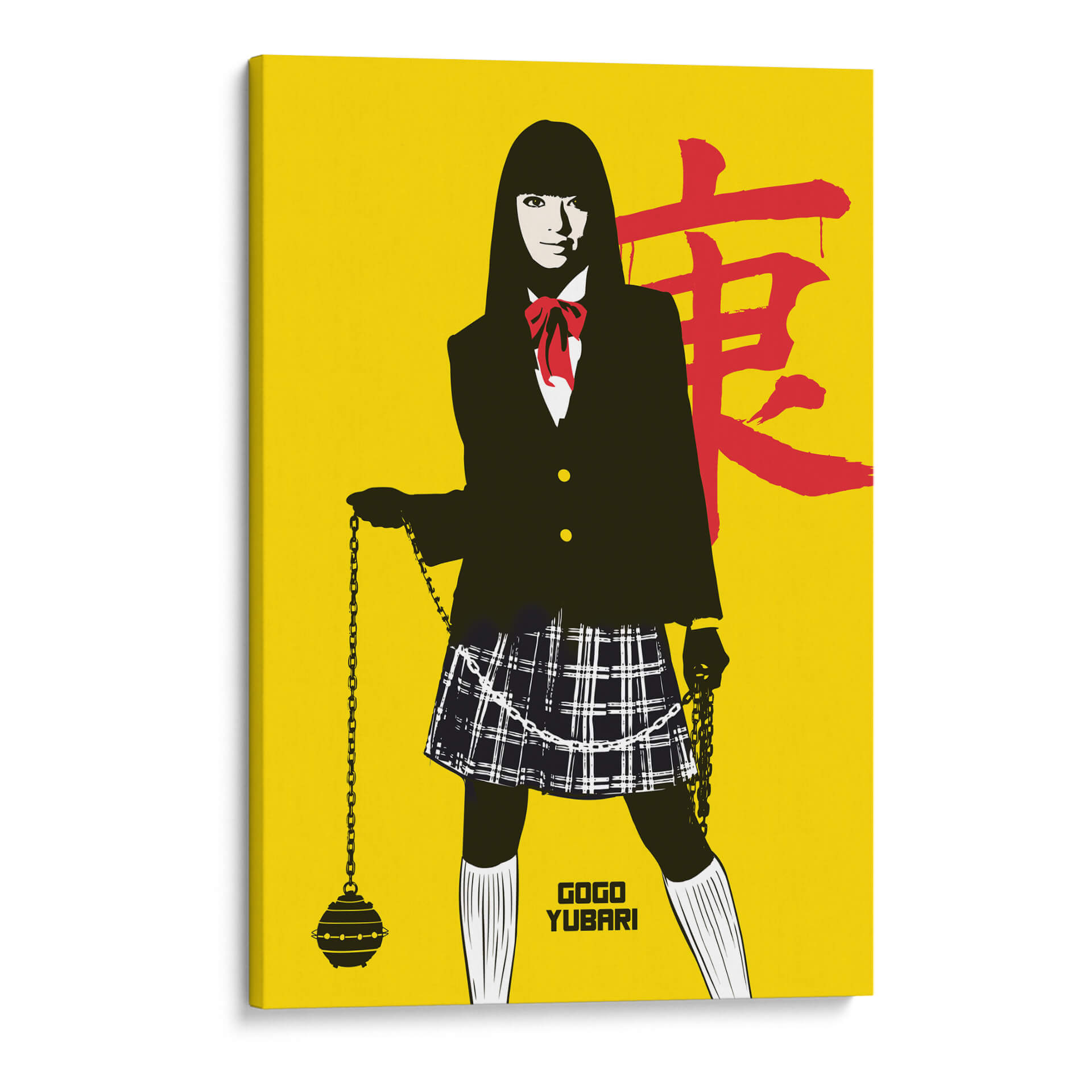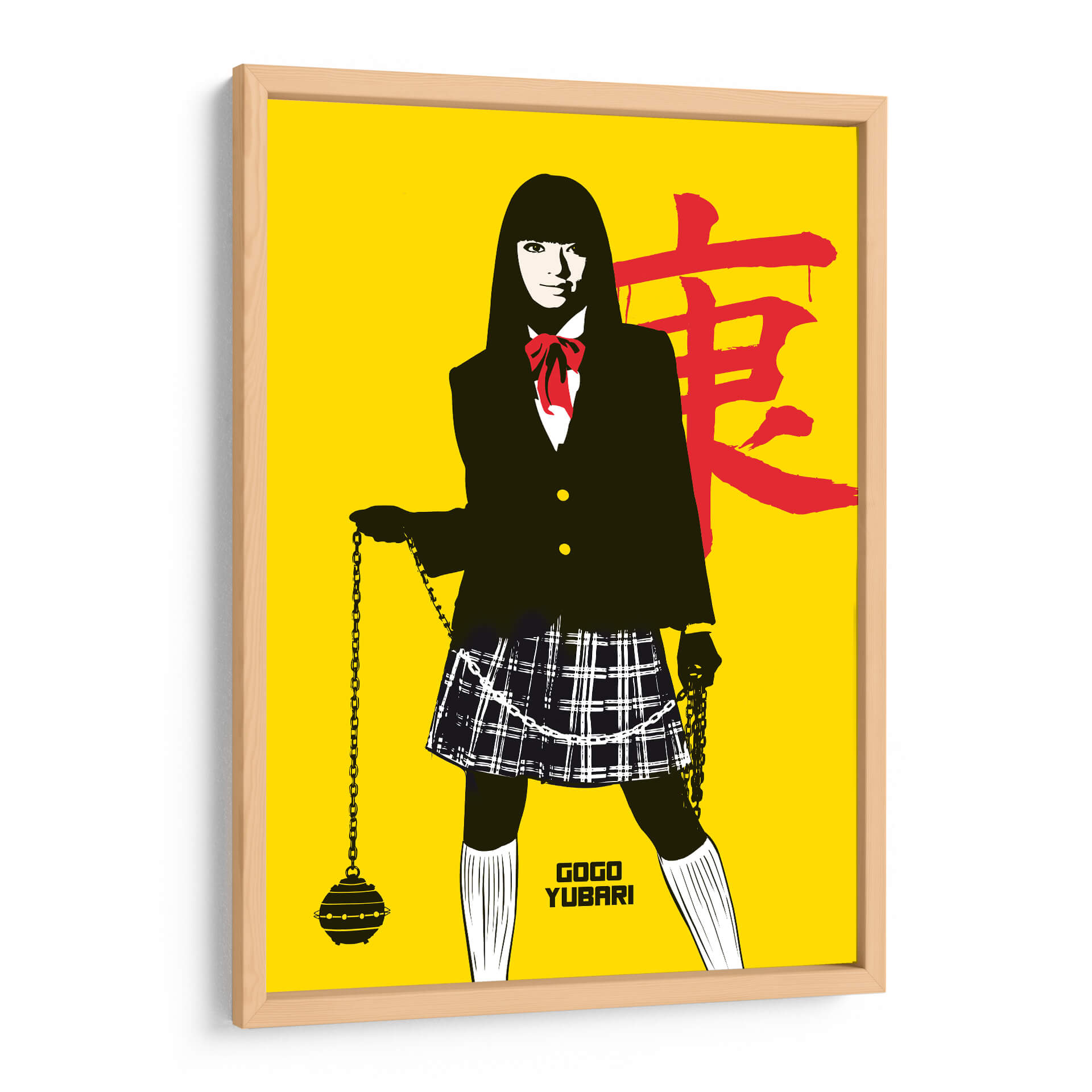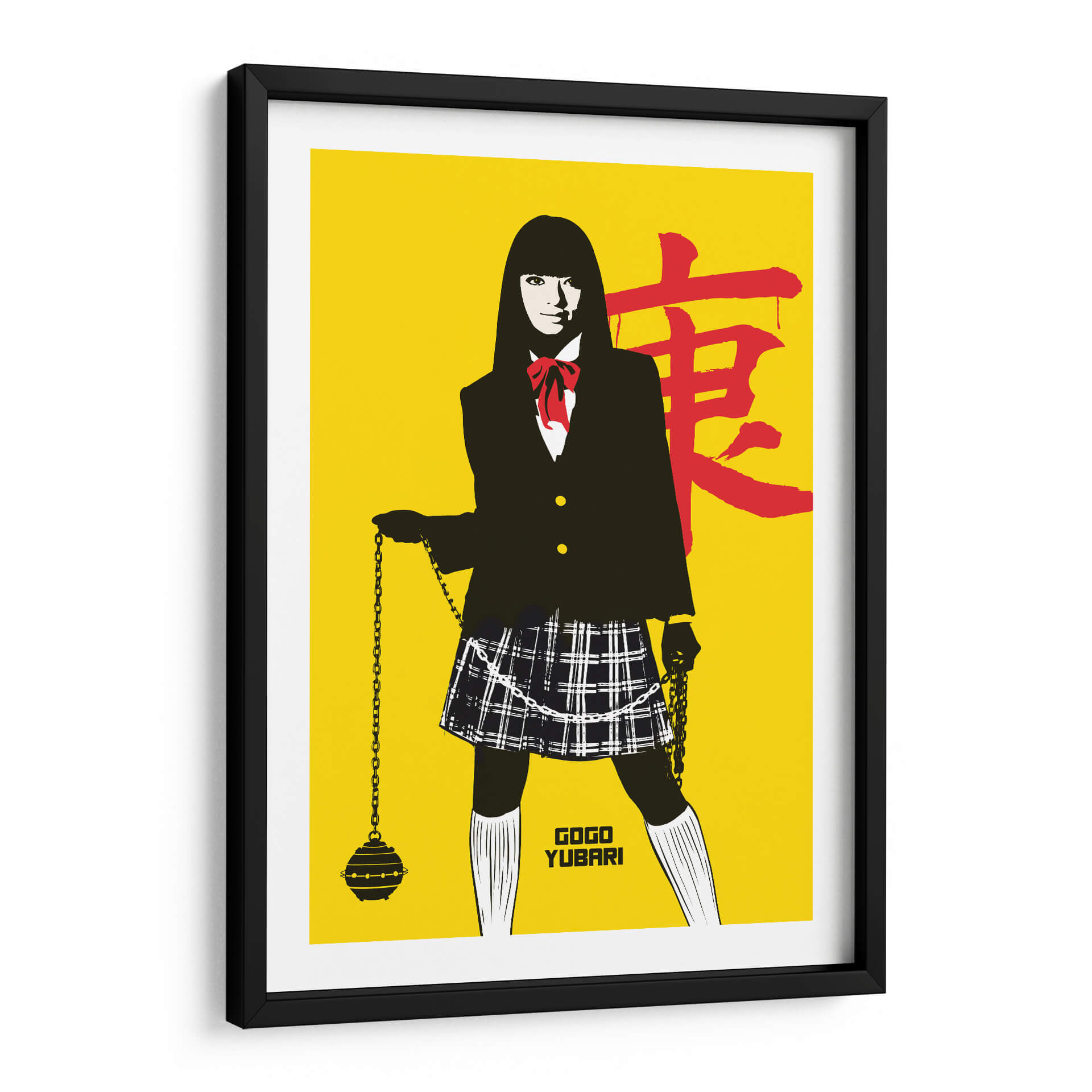 Sumérgete en la audacia y el estilo icónico con este cuadro decorativo inspirado en Gogo Yubari de Kill Bill. La obra presenta una figura femenina estilizada sobre un vibrante fondo amarillo, evocando una energía cinética y una estética pop contemporánea. La composición se centra en el personaje, con un fuerte contraste entre las siluetas oscuras y el llamativo color de fondo, acentuado por un kanji rojo de trazo audaz que añade un toque de misterio y cultura oriental. Los detalles de su uniforme, como la falda a cuadros y el lazo rojo, junto con el arma de cadena, capturan la esencia de un personaje complejo y memorable. Este cuadro decorativo es perfecto para quienes buscan añadir un toque de carácter y una narrativa visual única a sus espacios. Ideal para salones modernos, estudios de cine o cualquier habitación que necesite un punto focal lleno de personalidad y un guiño a la cultura pop cinematográfica. Su estilo gráfico y su paleta de colores limitada pero impactante lo convierten en una pieza versátil que atraerá miradas y generará conversación, transformando cualquier pared en una declaración de estilo audaz y contemporáneo. Es más que una simple imagen; es un tributo a la fuerza y la estética inolvidable del cine.