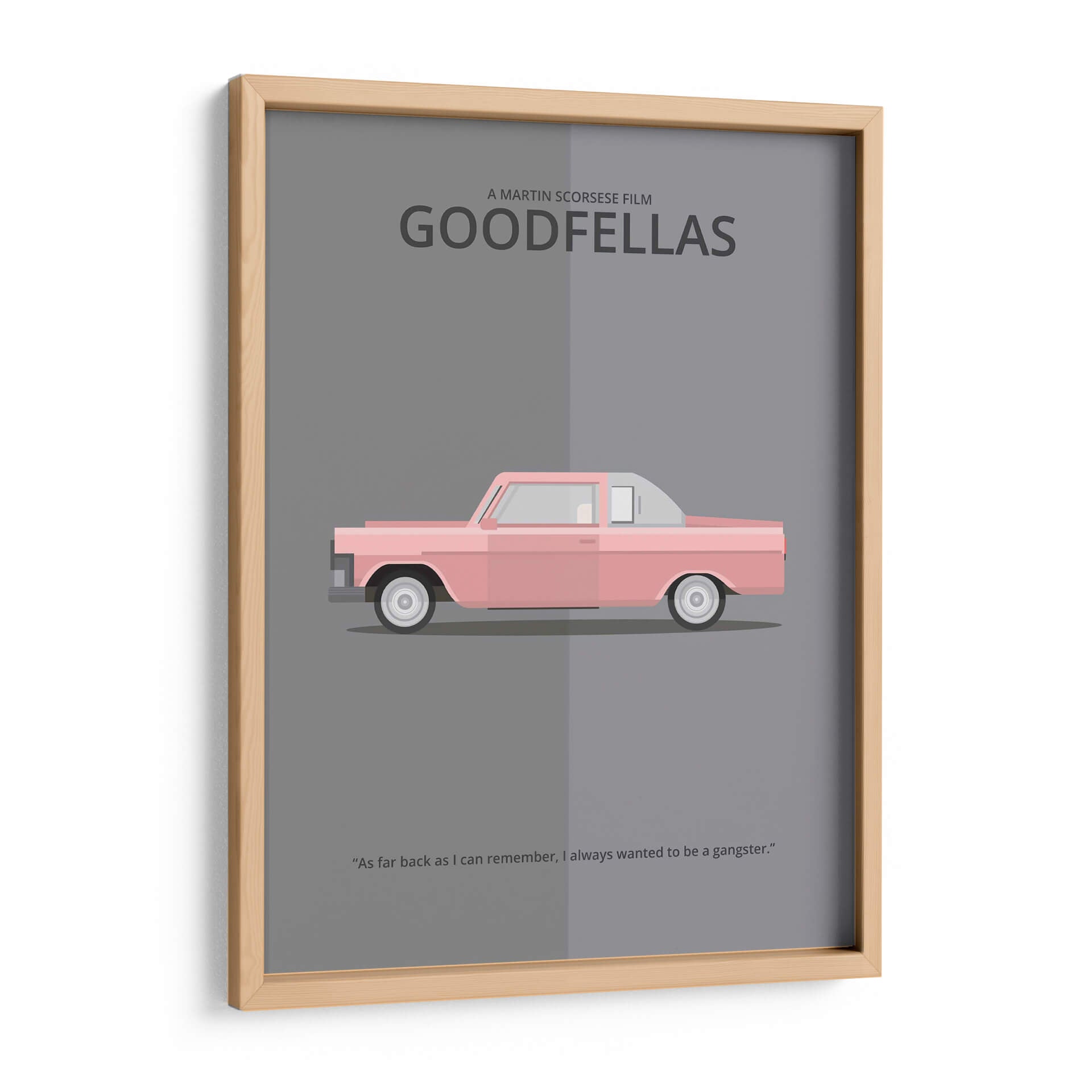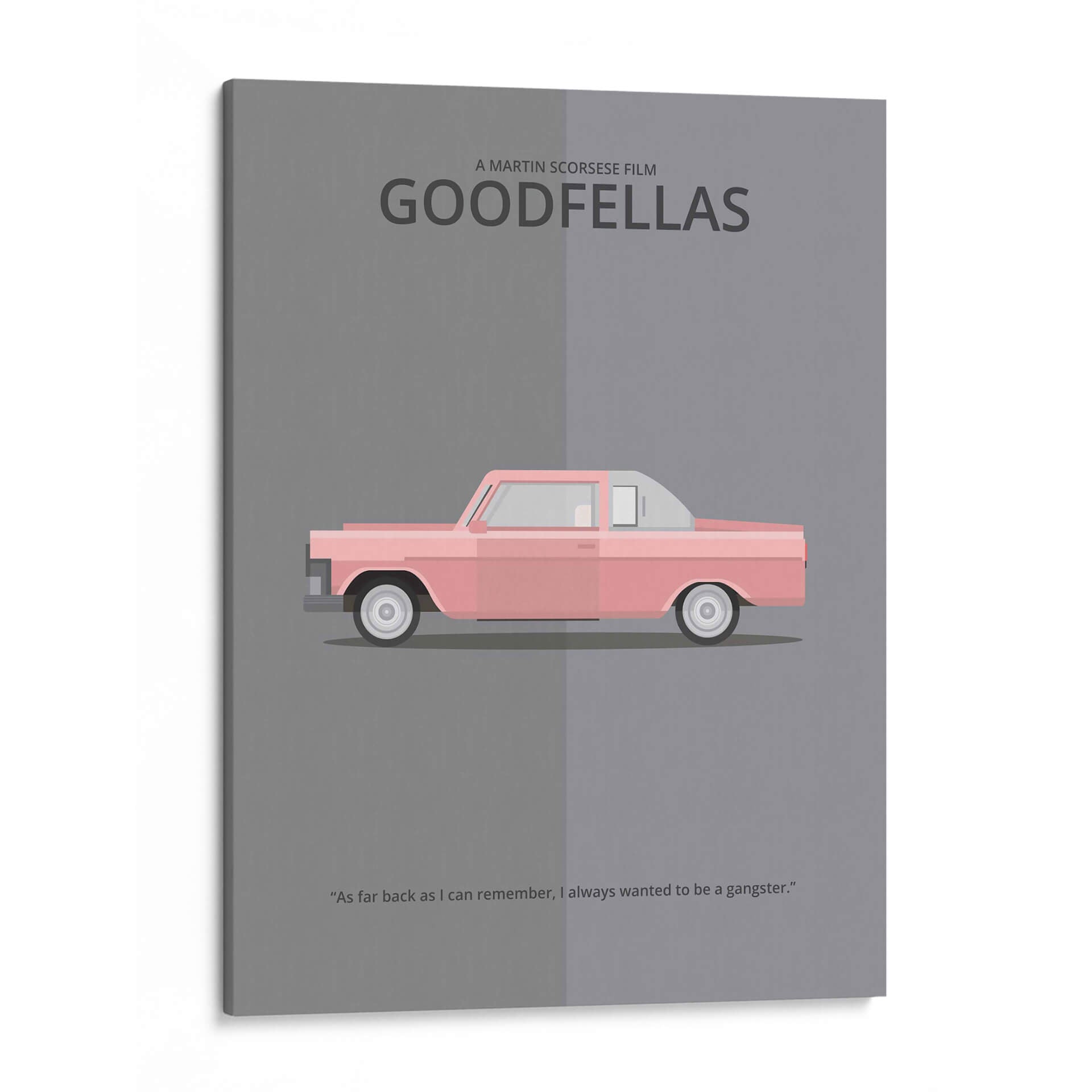 Sumérgete en la icónica estética cinematográfica con esta impresionante obra de arte inspirada en "Goodfellas". La pieza presenta una estilizada ilustración minimalista de un clásico coche rosa pastel, un símbolo evocador de una era pasada y del glamour asociado al mundo del cine. Fondo dividido en dos tonos de gris, creando una profundidad visual sutil pero efectiva, la obra capta la atención de inmediato. Sobre el fondo, el título "GOODFELLAS" y la frase "As far back as I can remember, I always wanted to be a gangster" aparecen discretamente, añadiendo un toque de misterio y narrativa a la composición. Esta obra de arte minimalista, con su paleta de colores suave y diseño limpio, es perfecta para añadir un toque de sofisticación retro y conversación a cualquier espacio. Ideal para salas de estar, estudios o incluso oficinas, este lienzo evoca una sensación de nostalgia y admiración por el cine clásico, ofreciendo un punto focal distintivo que resonará con los amantes del séptimo arte y la estética vintage. Decora tu hogar u oficina con este diseño único que celebra un hito del cine.
