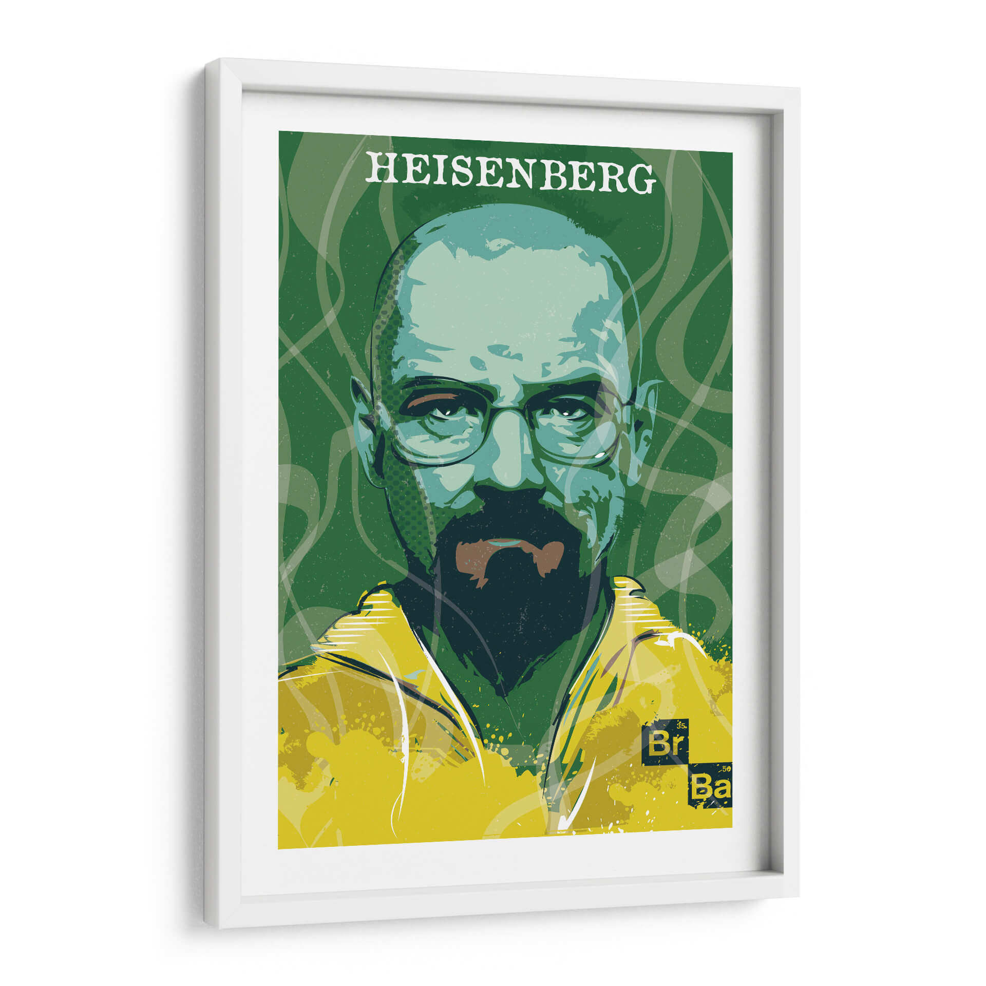 Sumérgete en el universo de "Heisenberg", una obra de arte contemporáneo que captura la intensidad y complejidad de un personaje icónico. Este cuadro decorativo presenta un retrato estilizado con una paleta de colores vibrante y audaz, dominada por verdes profundos y amarillos eléctricos que crean un contraste impactante. La técnica de ilustración digital, con texturas granuladas y trazos dinámicos, evoca una atmósfera de misterio y poder. La figura central, con su mirada penetrante y expresión enigmática, se convierte en el punto focal de la pieza, invitando a la reflexión sobre la dualidad y la transformación. Las sutiles referencias a la tabla periódica añaden un toque intelectual y distintivo. Ideal para espacios que buscan un carácter fuerte y moderno, como estudios, oficinas o salas de estar, este cuadro decorativo es perfecto para los aficionados a la cultura pop y para quienes aprecian el arte con narrativa. Su composición vertical y su estilo gráfico lo hacen versátil para integrarse en diversas decoraciones, aportando un toque de intriga y conversación.