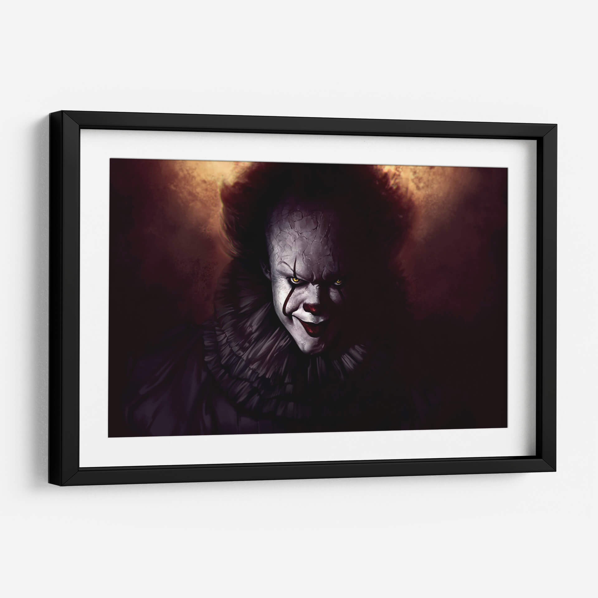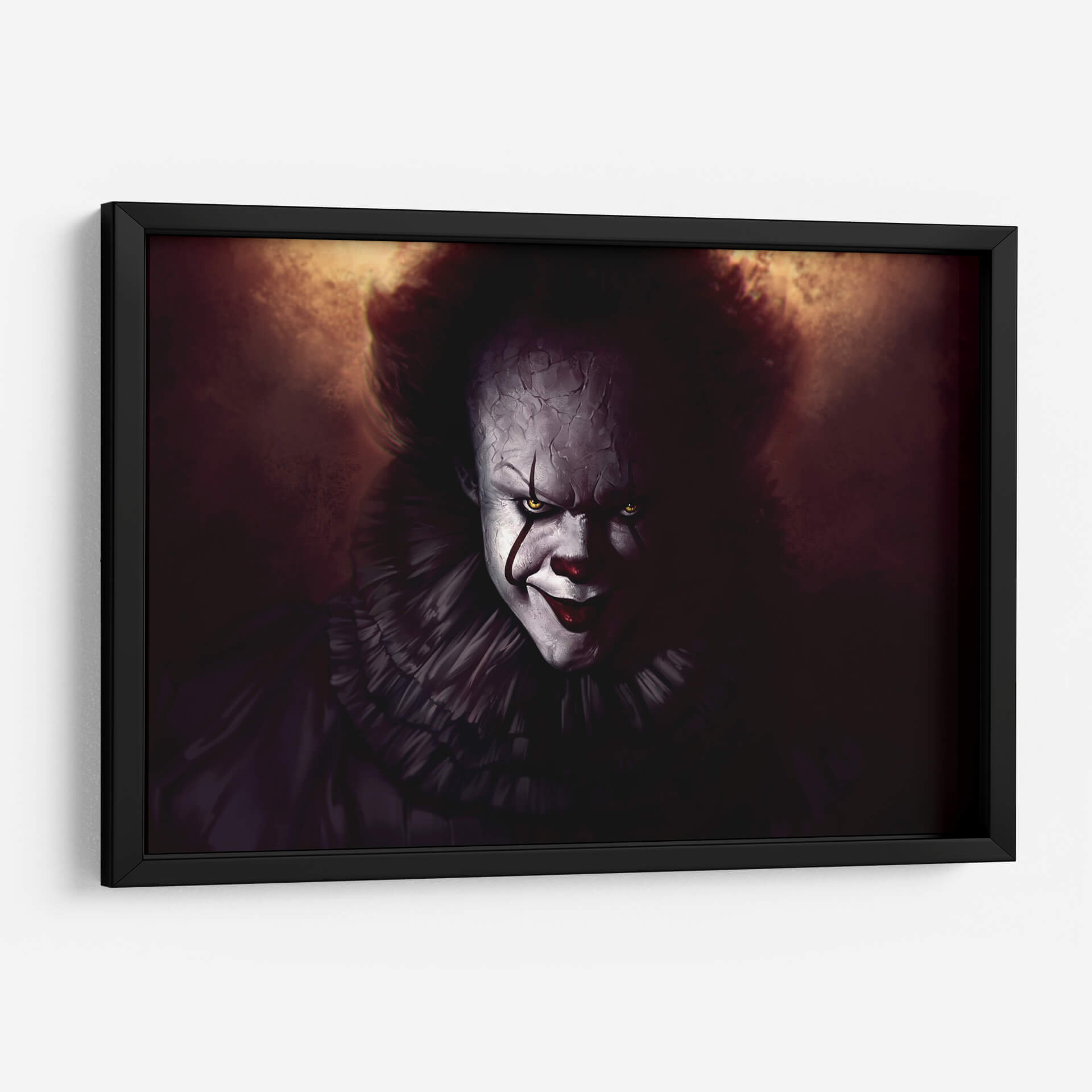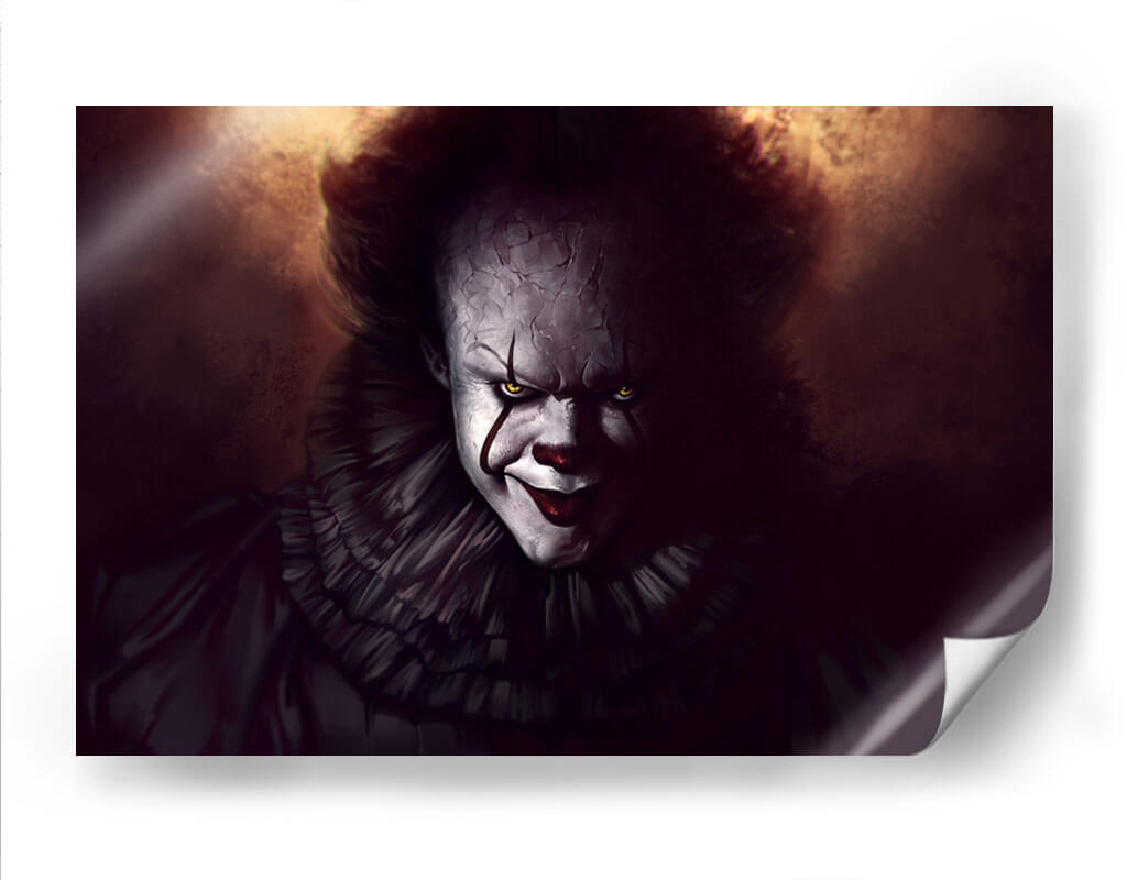 Sumérgete en la inquietante y cautivadora presencia de 'La Mirada de Pennywise', un cuadro decorativo que trasciende lo ordinario para adentrarse en los rincones más profundos de la imaginación. Esta obra de arte digital captura la esencia de un personaje icónico, presentándolo con una intensidad que desafía la normalidad. La paleta de colores oscuros, dominada por tonos tierra, ocres y sombras profundas, crea una atmósfera de misterio y tensión, acentuada por el contraste de la piel pálida del personaje y sus penetrantes ojos amarillos. La composición se centra en el rostro, con detalles minuciosos en las grietas de la piel y la expresión enigmática, invitando al espectador a una confrontación visual. El voluminoso cuello de volantes añade un toque teatral y distintivo, reforzando la dualidad de su apariencia. Este cuadro decorativo es ideal para aquellos que buscan añadir un elemento de intriga y audacia a sus espacios, ya sea una sala de estar moderna, una sala de juegos o un estudio personal. Es una pieza que provoca conversación y evoca una gama de emociones, desde el temor hasta la fascinación. 'La Mirada de Pennywise' no es solo una imagen, es una declaración de estilo para los amantes del arte audaz y con carácter.